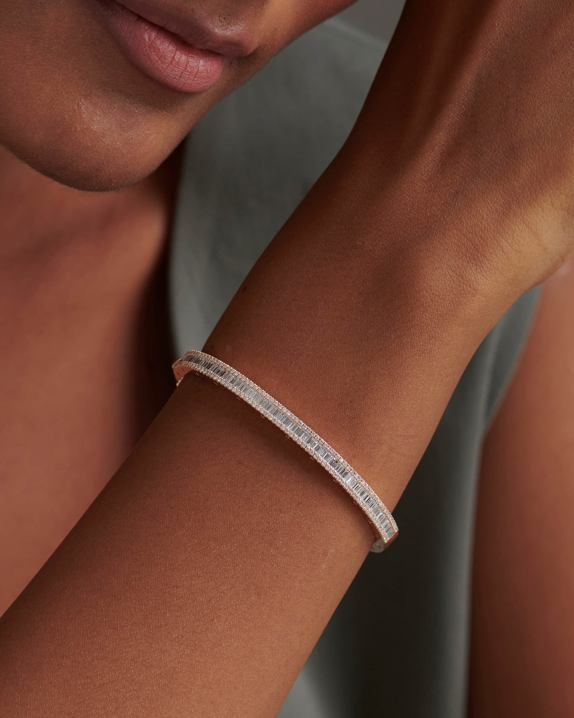 Baguette & Round Diamond Oval Bangle