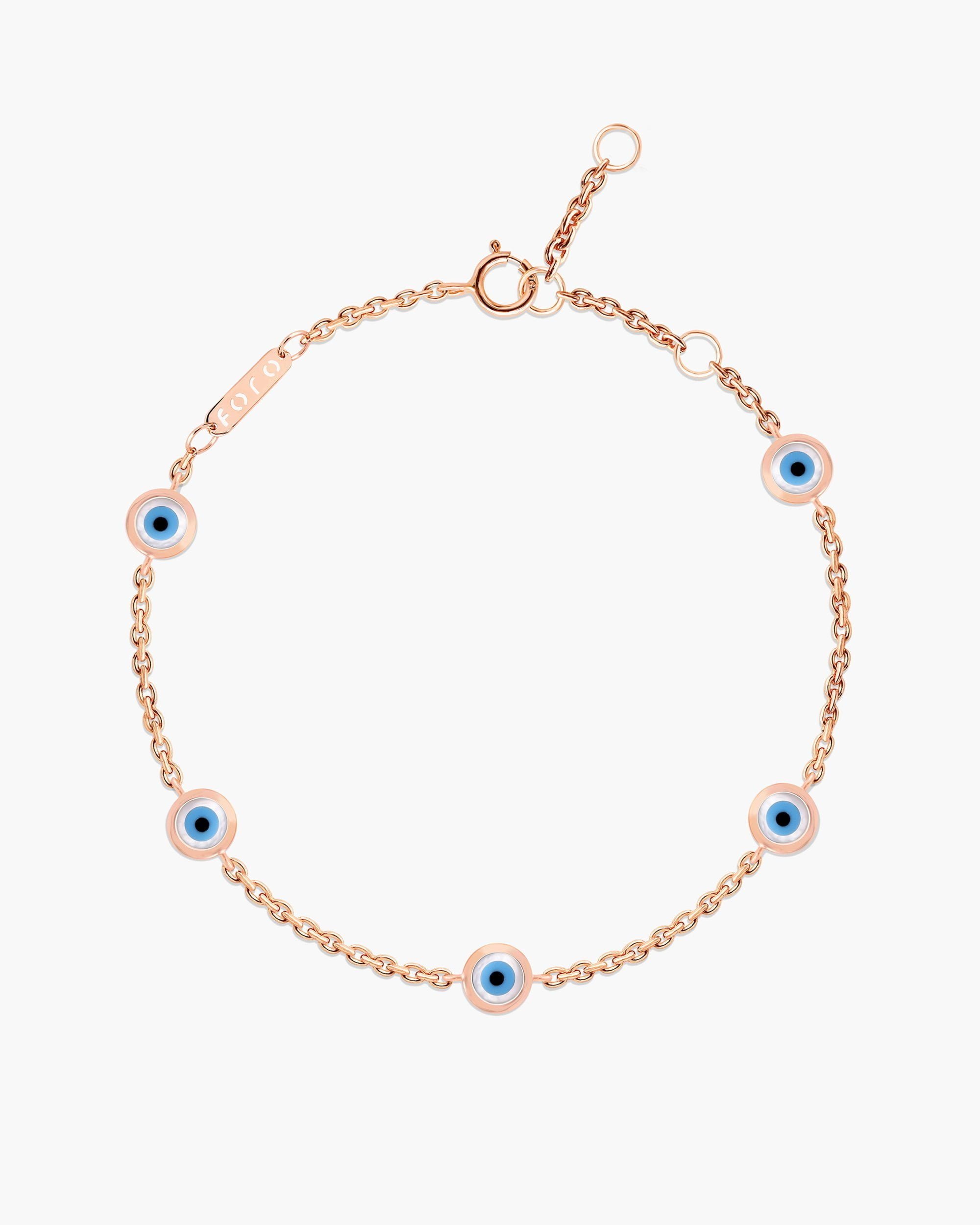 Add a little glamour with our delicate Bezel Evil Eye Station Bracelet which is one of the strongest talisman and symbolises feminine power, protection and good fortune.