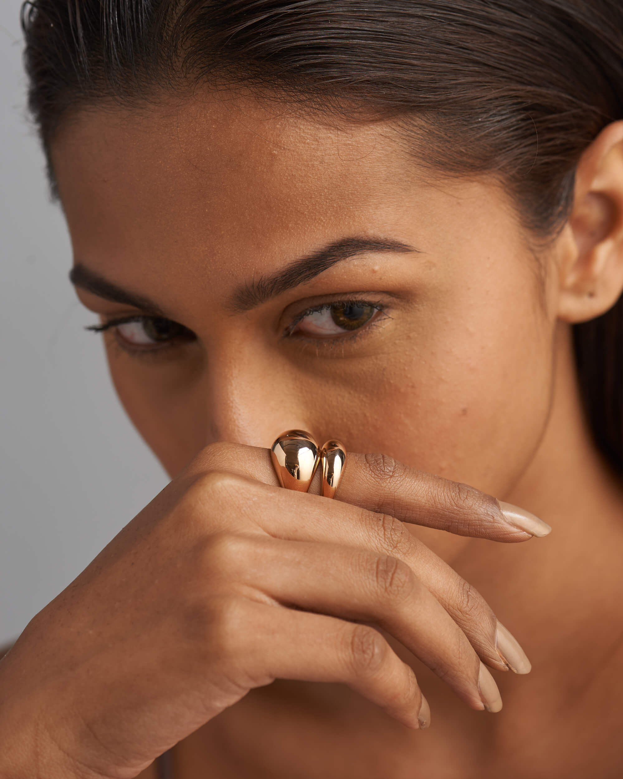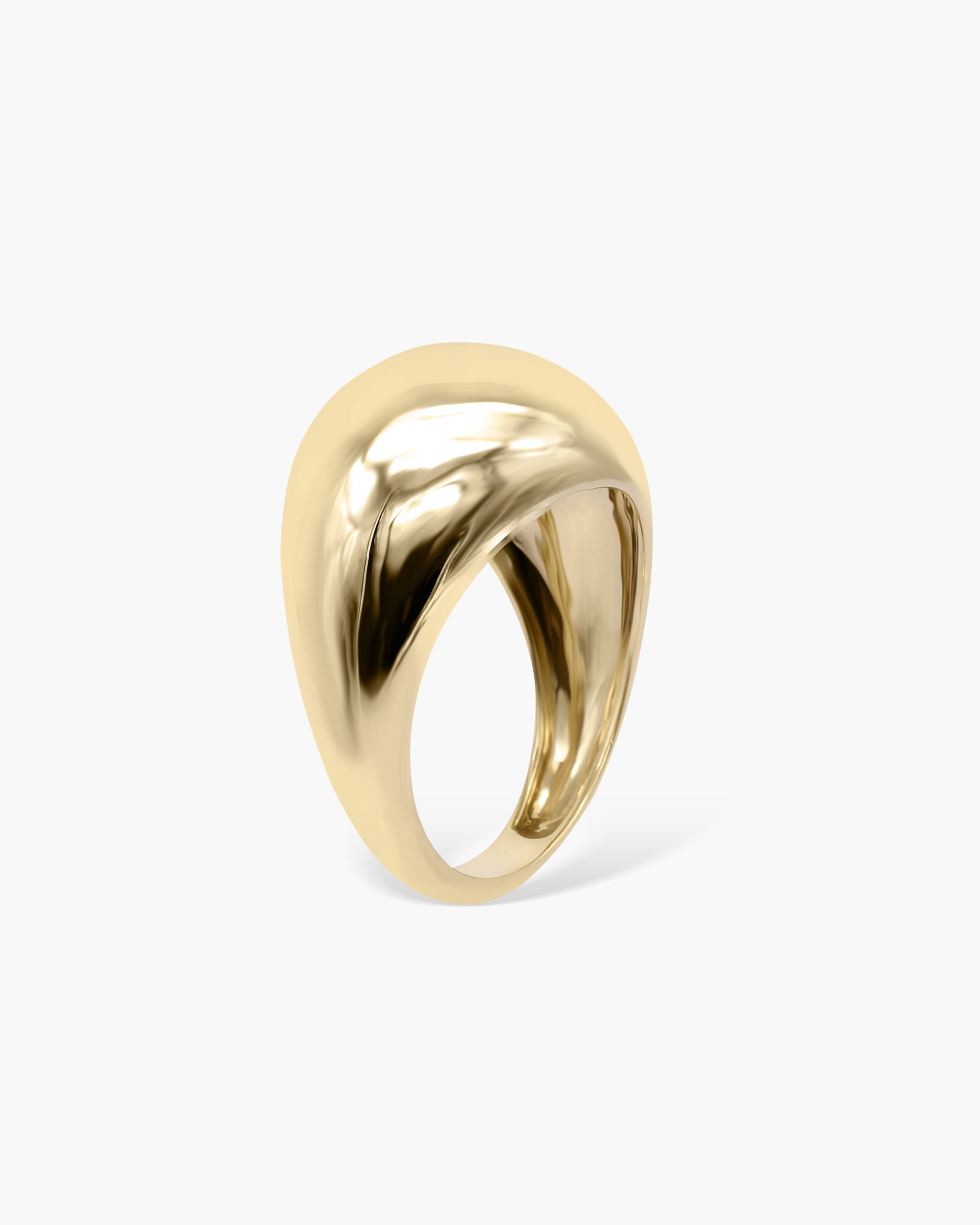 The ultimate Bold Dome Ring is a statement ring which will catch everyones eye. This ring features a solid gold bulbous dome in high polish finish. It is light weight piece and can be combined with other rings for a personal statement.