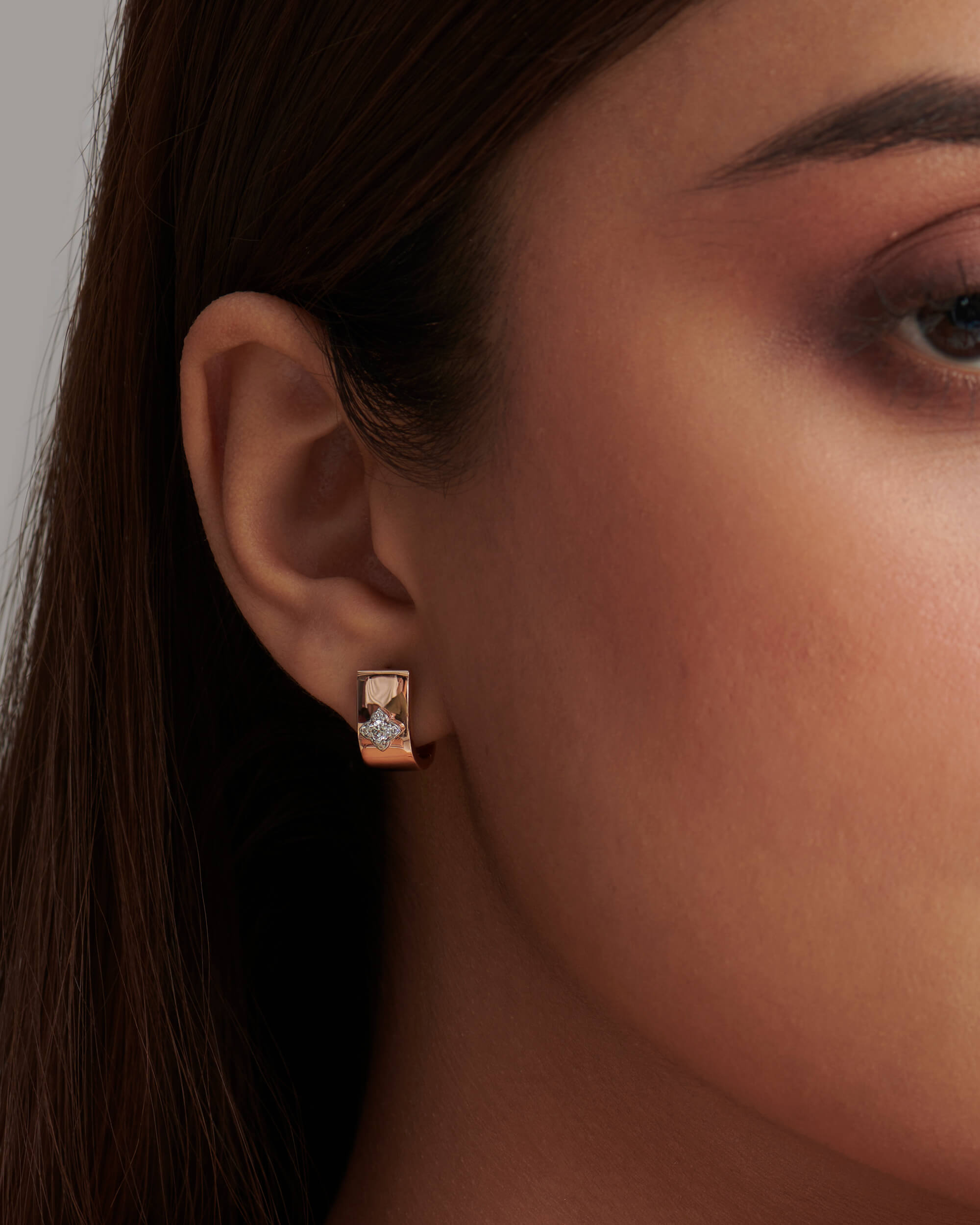 Bunchberry Diamond Accent Bold Huggies is an elegant and contemporary earring for everyday. The 6.8 mm wide high gloss earring is crafted in solid gold and comprises of delicate bunchberry shaped motifs studded with diamonds.