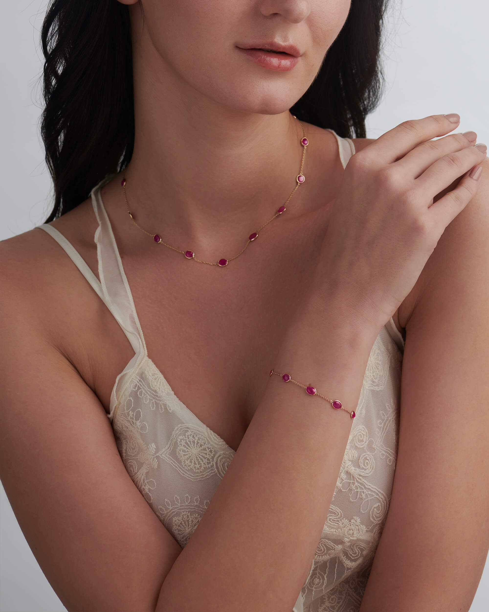 Match with our Cabochon Ruby By The Yard Bracelet to complete your sassy look.