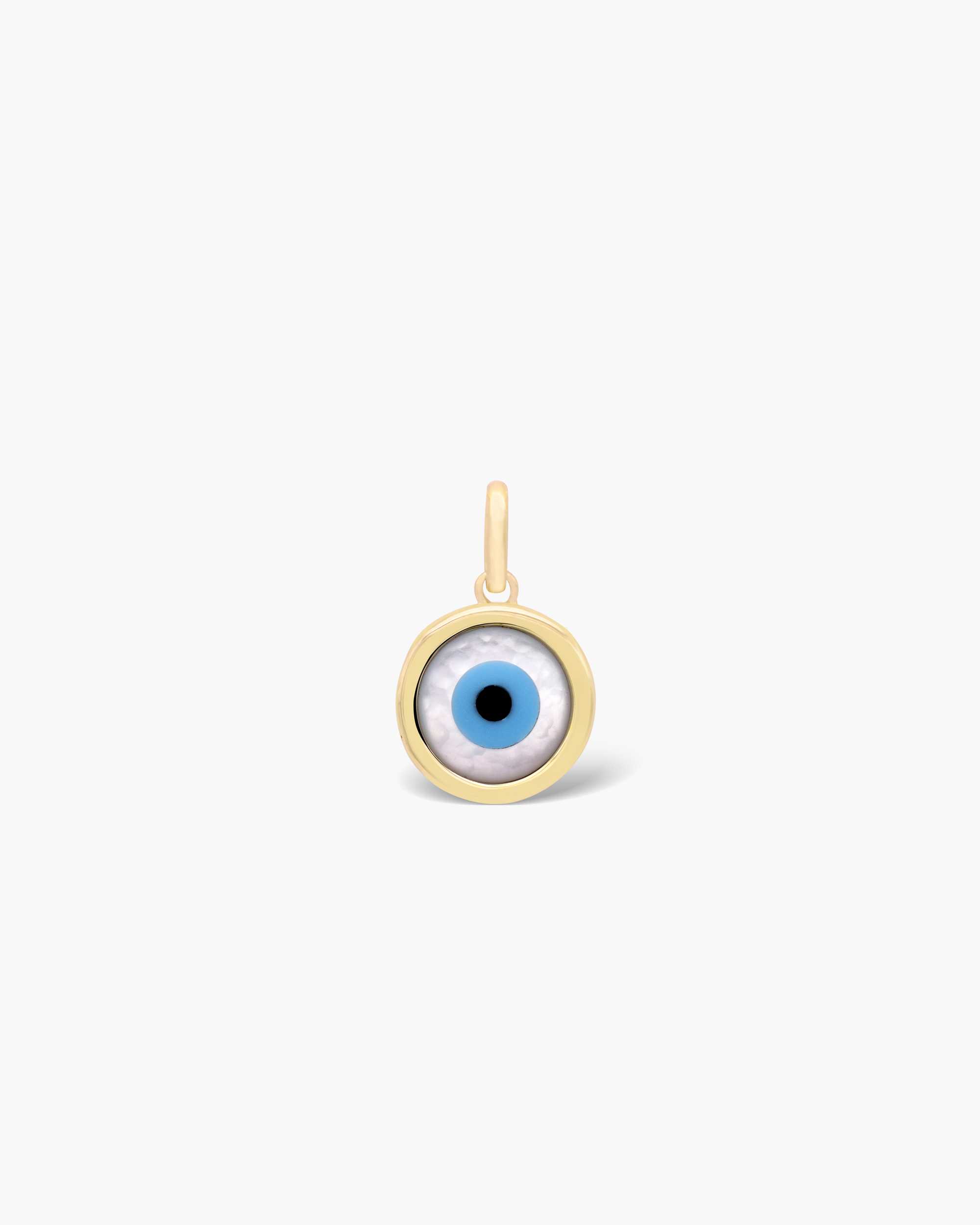 Grab your trendy talisman, an amulet symbolising a protective sign in all faiths. This dainty solid gold Circle Evil Eye Charm / Pendant features an inlay of mother of pearls and turquoise evil eye pupil detail, which is sure to grab everyones attention. Use it as a watch charm or hang it in your bracelet or use it as a pendant, they fit perfectly for any style.