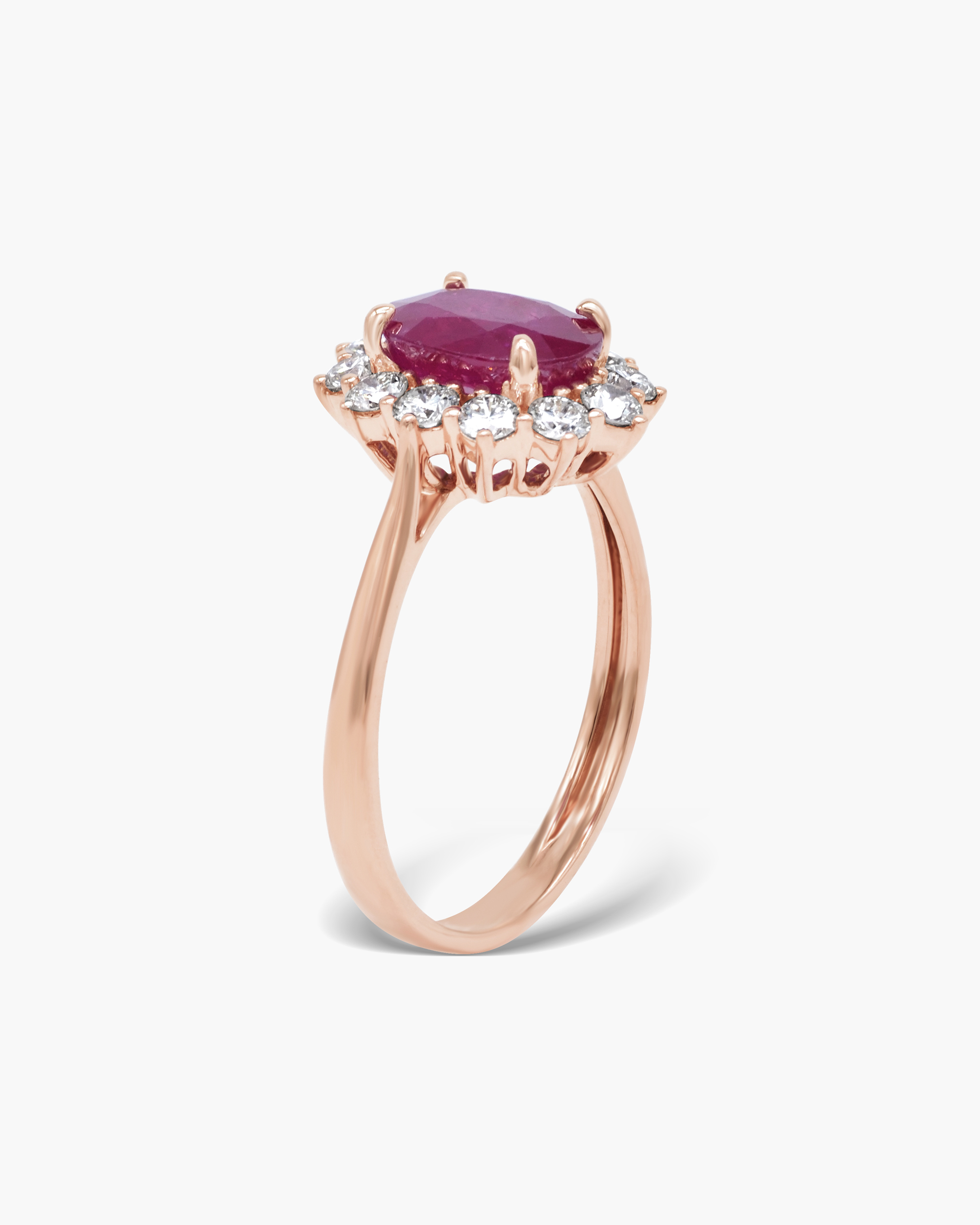 Capturing the elegant sophistication with our Classic Diana Ruby Ring. The centre oval shaped Natural Ruby weighs 1.25 – 1.5 carats and exhibits vibrant red / maroon color. The stone is secured by prongs and it shimmers with its array of 12 round brilliant cut diamonds set in solid gold.