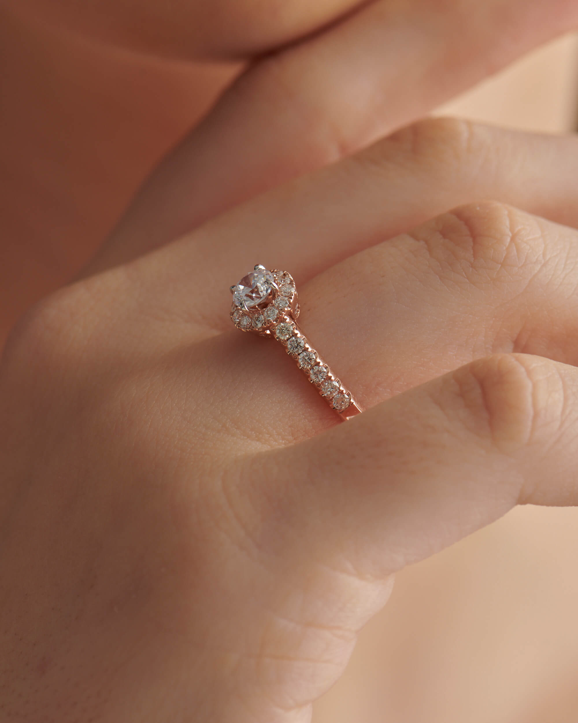 Classic Halo, Diamond Shank, Round Solitaire Ring