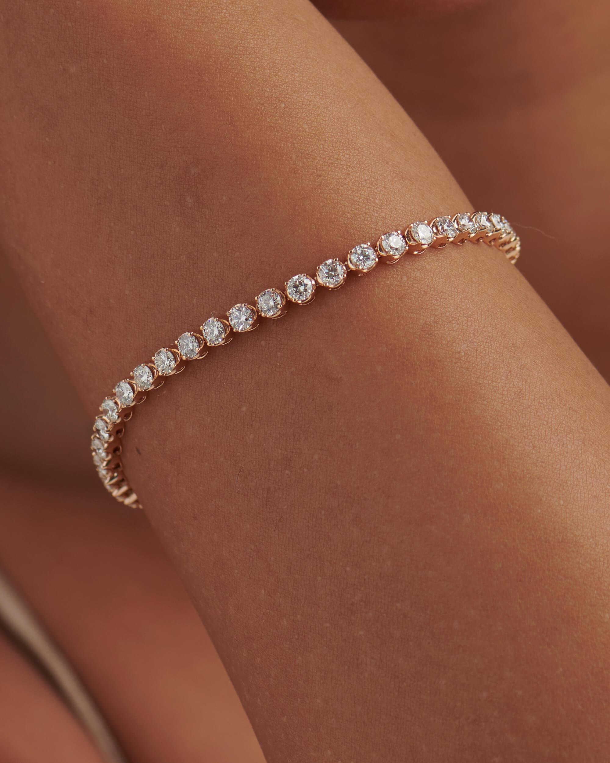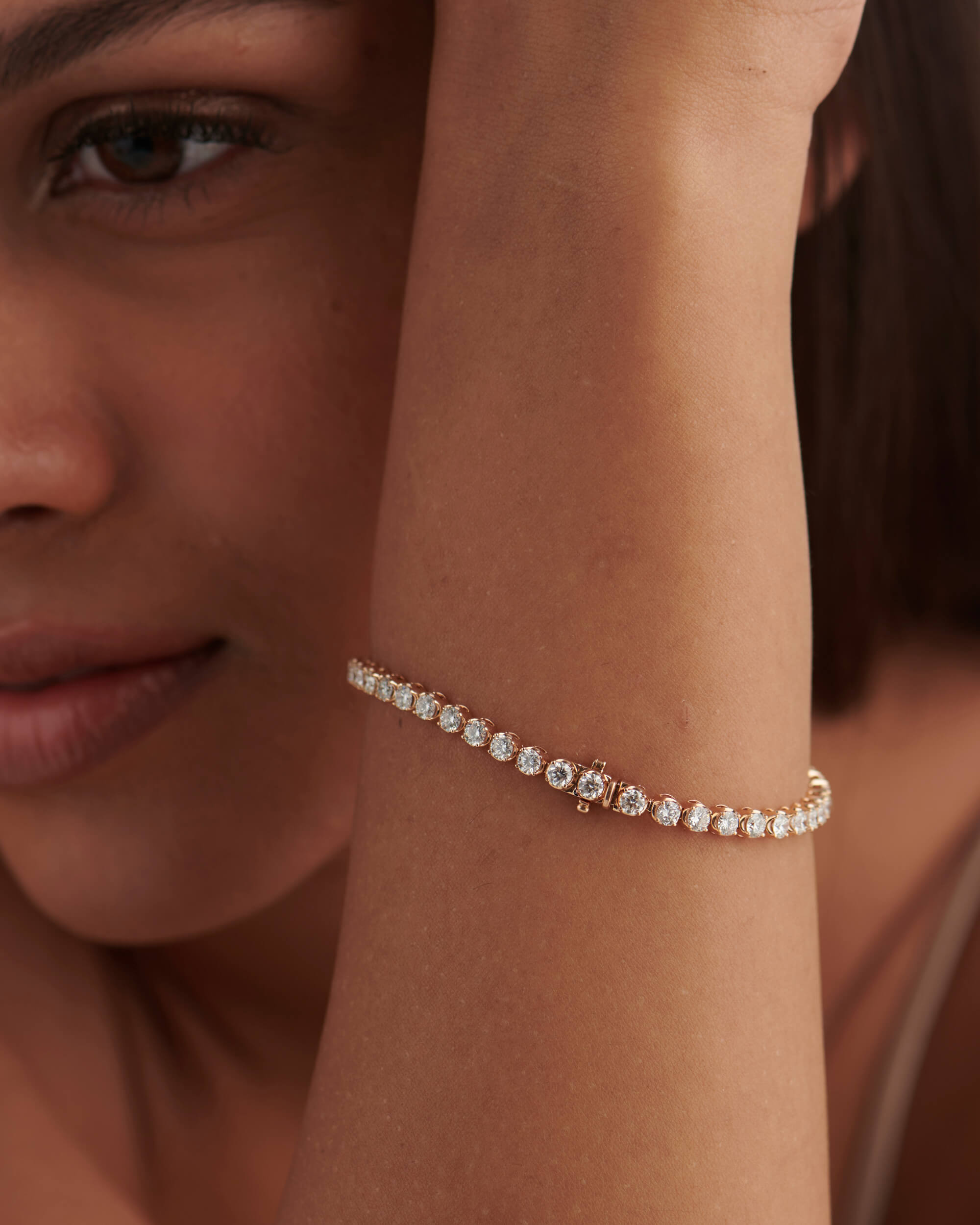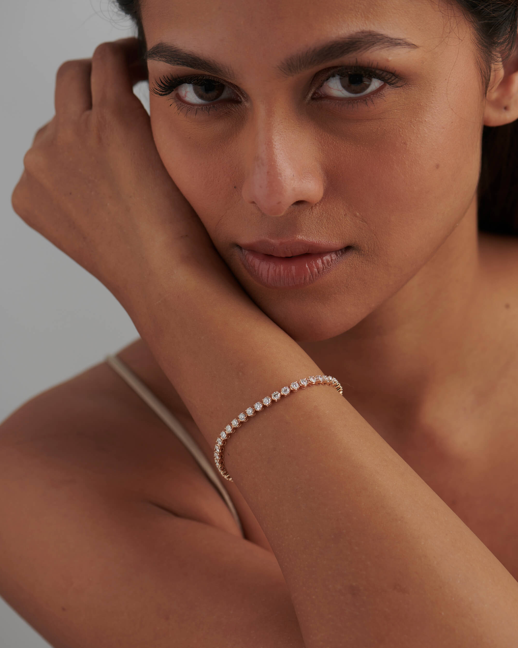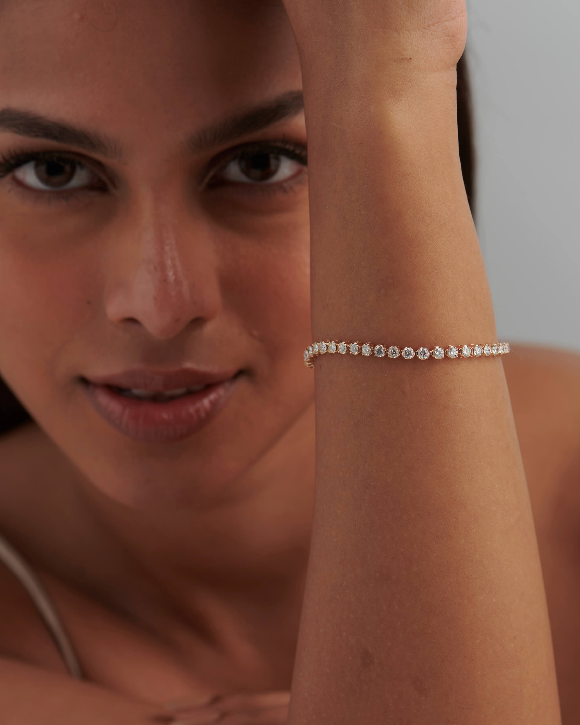 This flexible, close-set diamond bracelet comes adorned with a securely designed clasp that fluidly moves with every gesture (so it’ll stay with you forever). The setting uses minimal metal to allow the diamonds (each 0.10ct ) to stand out. The single strand looks radiant alone and can be layered with other styles for more subdued shimmer.