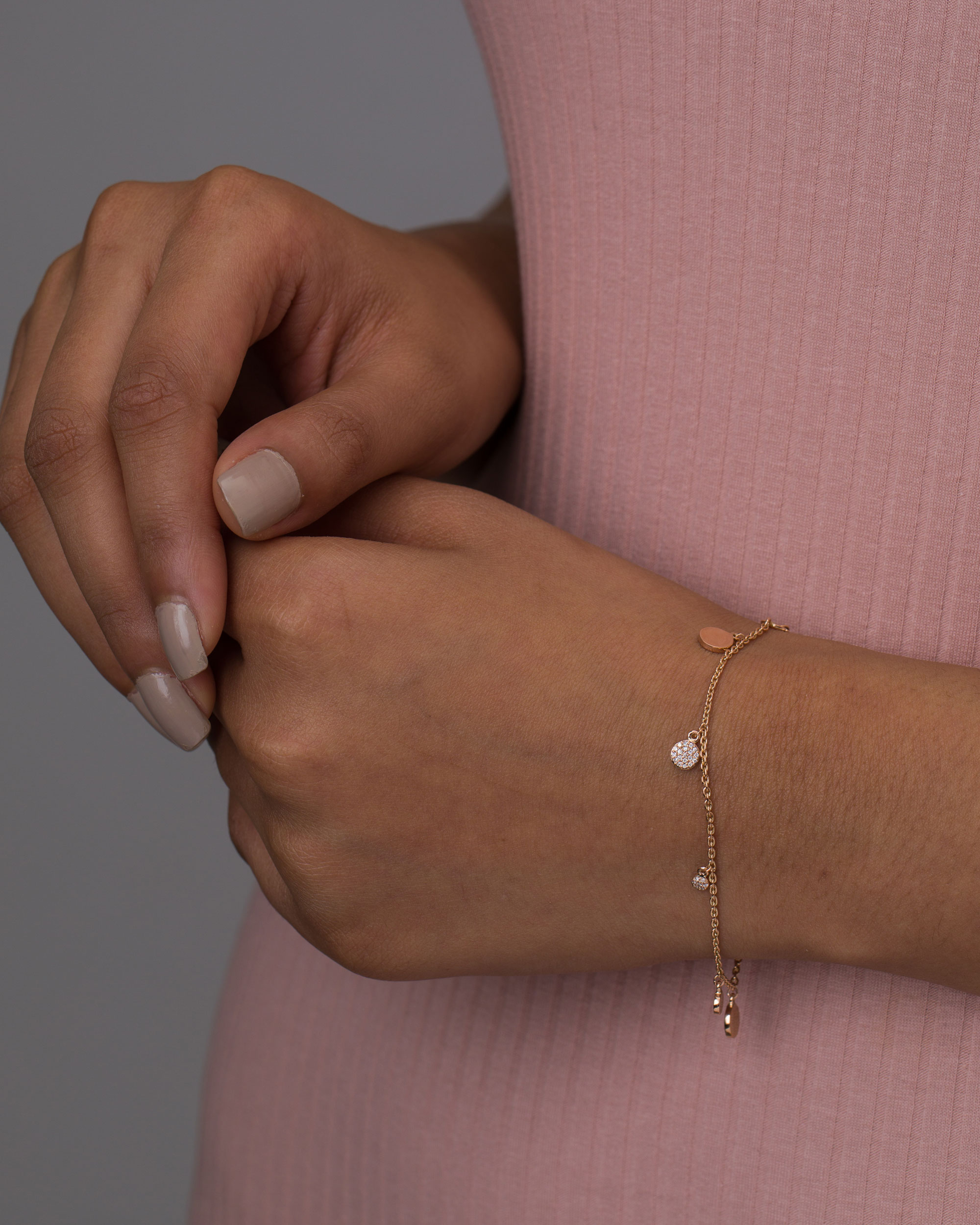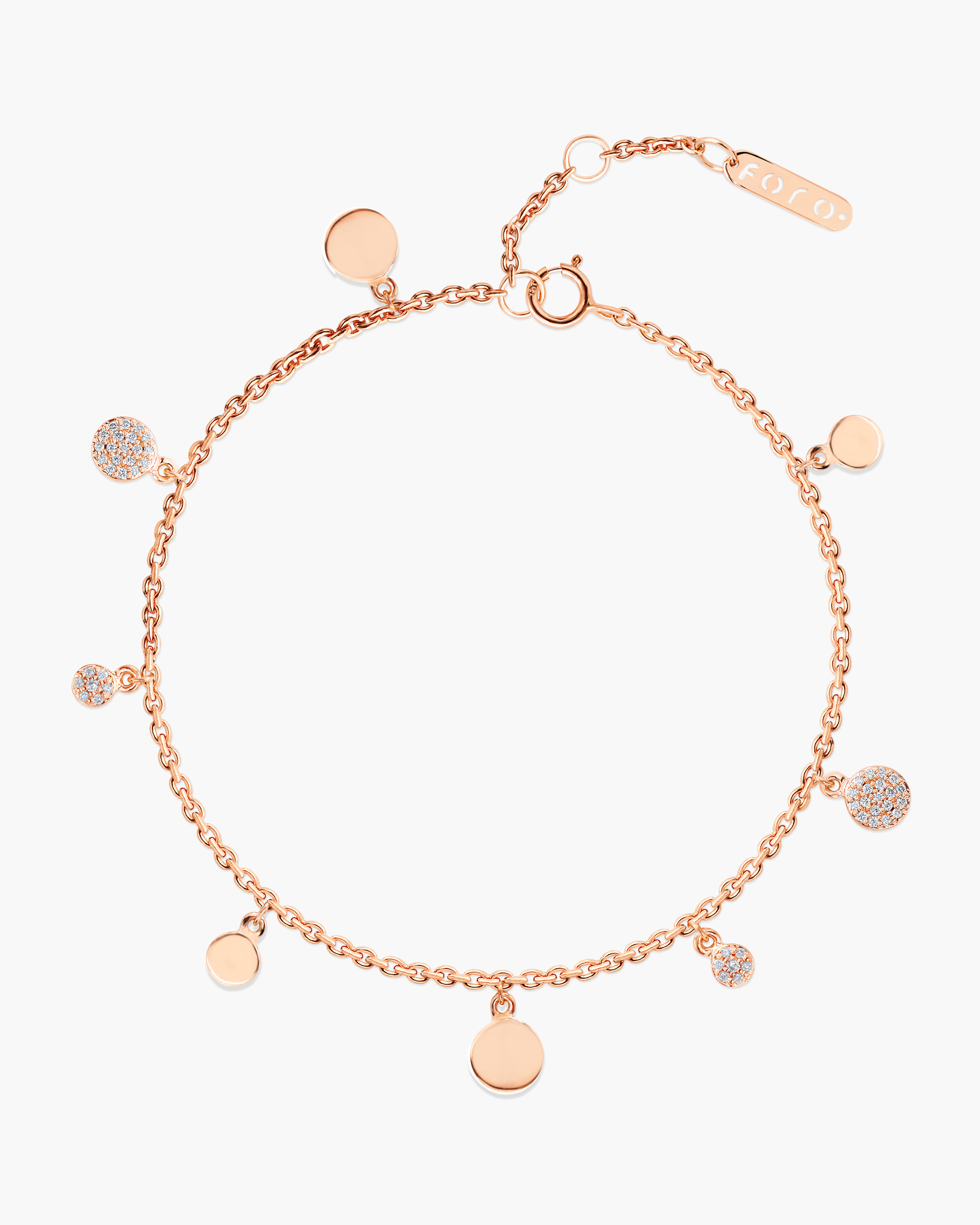This Dangling Diamond And Discs Bracelet is a charming statement jewelry.Crafted in solid gold and pavé set diamonds ,these exquisite piece instantly transform your look, irrespective of the occasion. Styled to be worn both independently and as part of a stack, this is one piece that is a go-to for any occasion and makes a rather cute addition to your jewelry collection!
