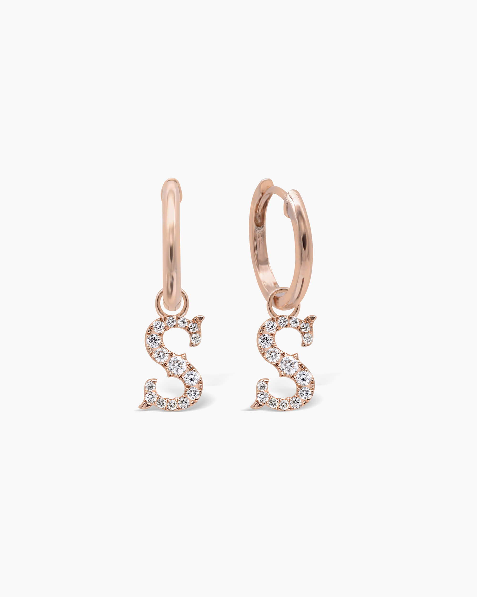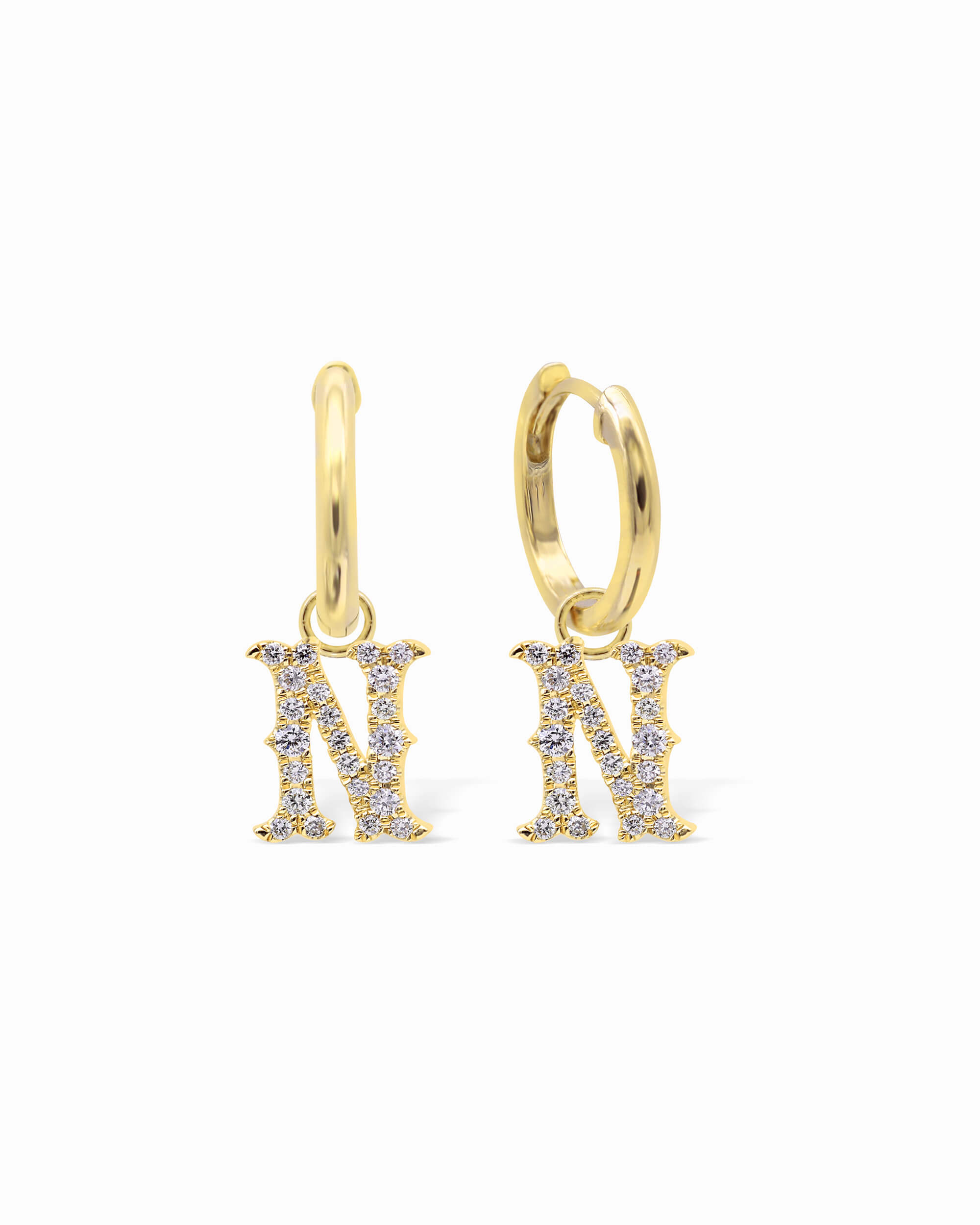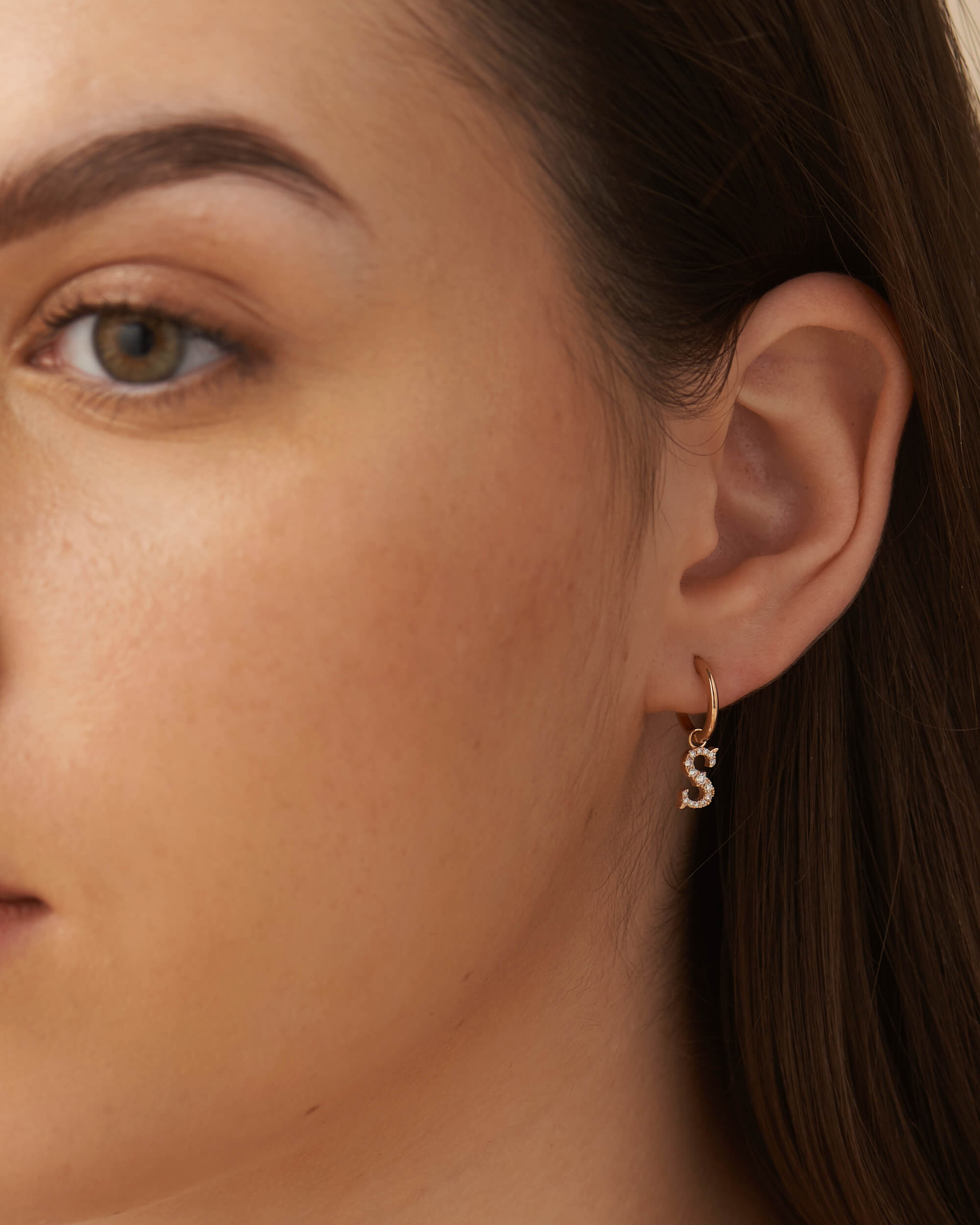 Make it personal. Make it yours. Adorn those earlobes with these Dangling Diamond Initial Hoops for a super chic vibe. Handcrafted in solid gold and encrusted with sparkling pavé set diamond initials which dangles as you sway. They make the most thoughtful personalised gift for your loved ones.