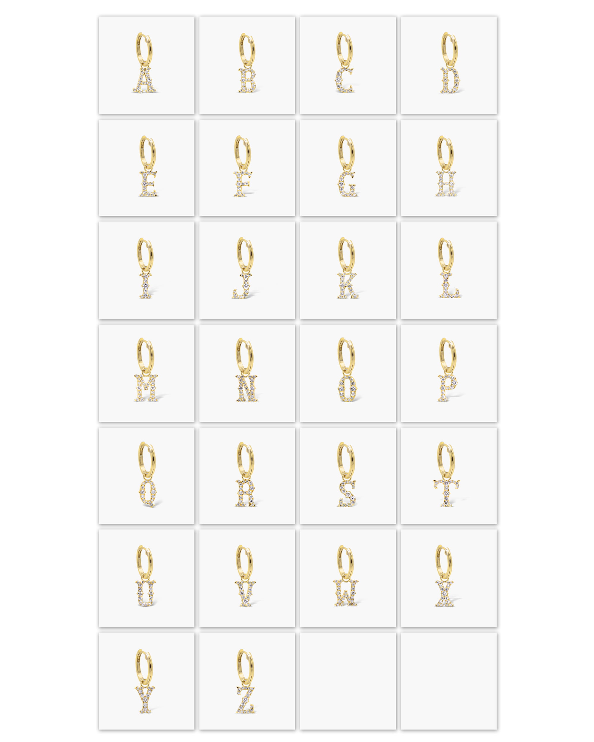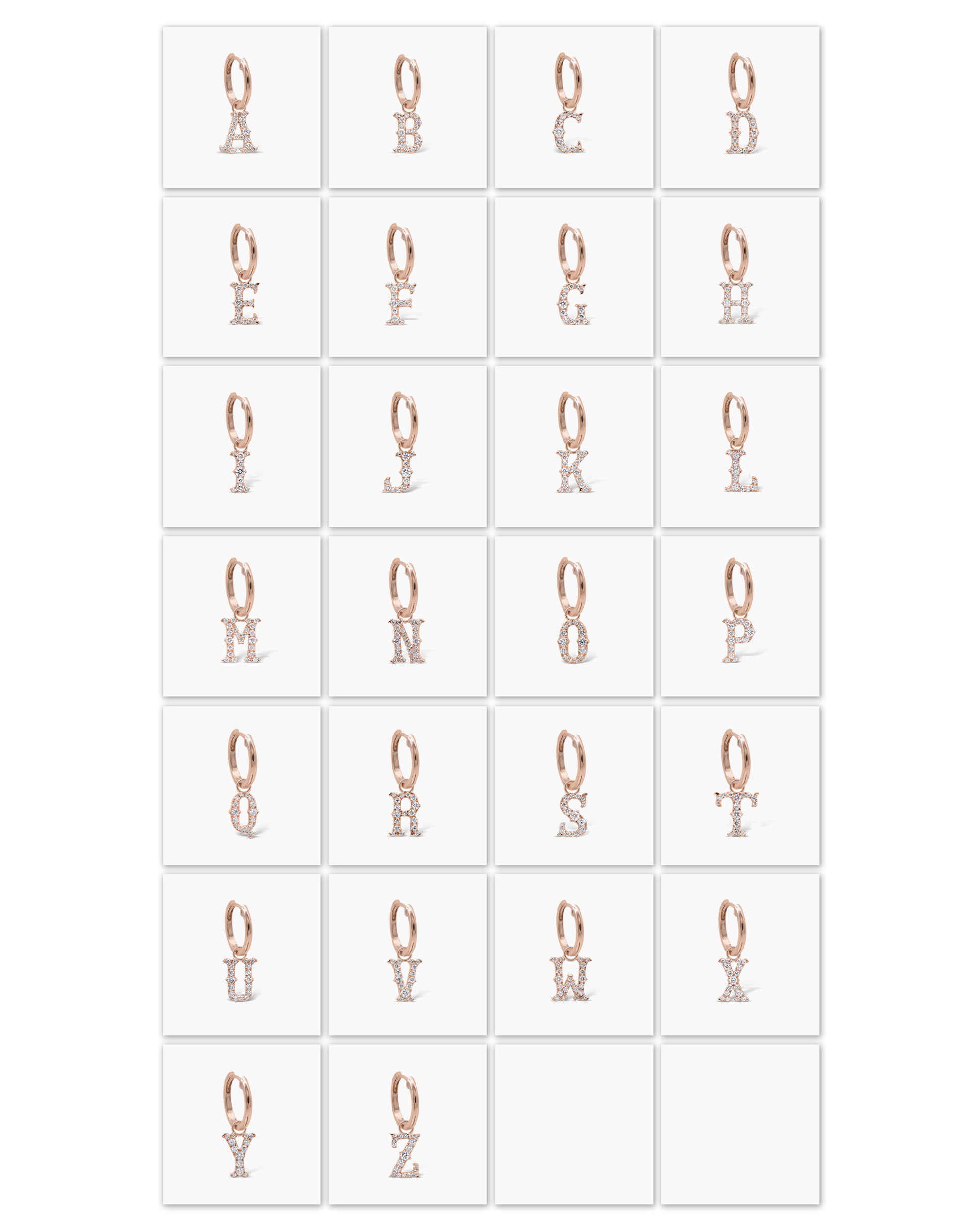These hoops snug fit on to your earlobes and are secured with hinged backs and removable initials.
