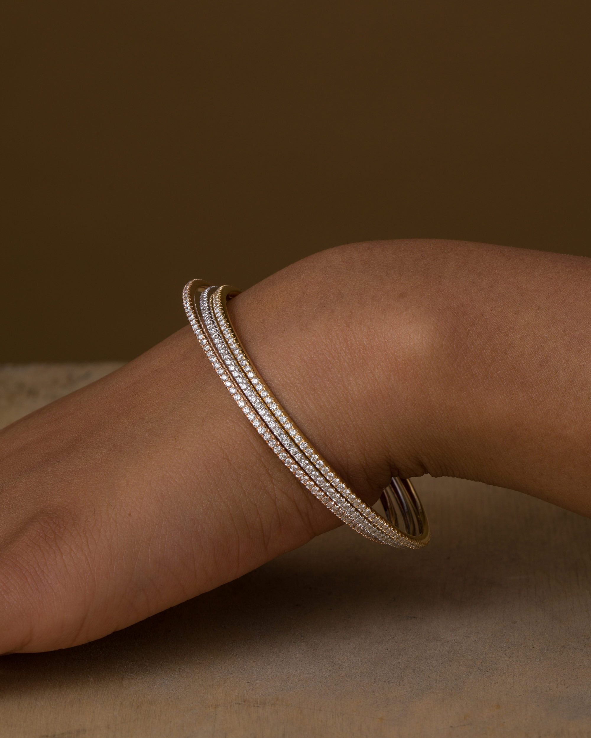 To determine your bangle size, simply tuck your thumb into the palm of your hand (as if about to put on a bangle) and use a measuring tape or a ribbon.