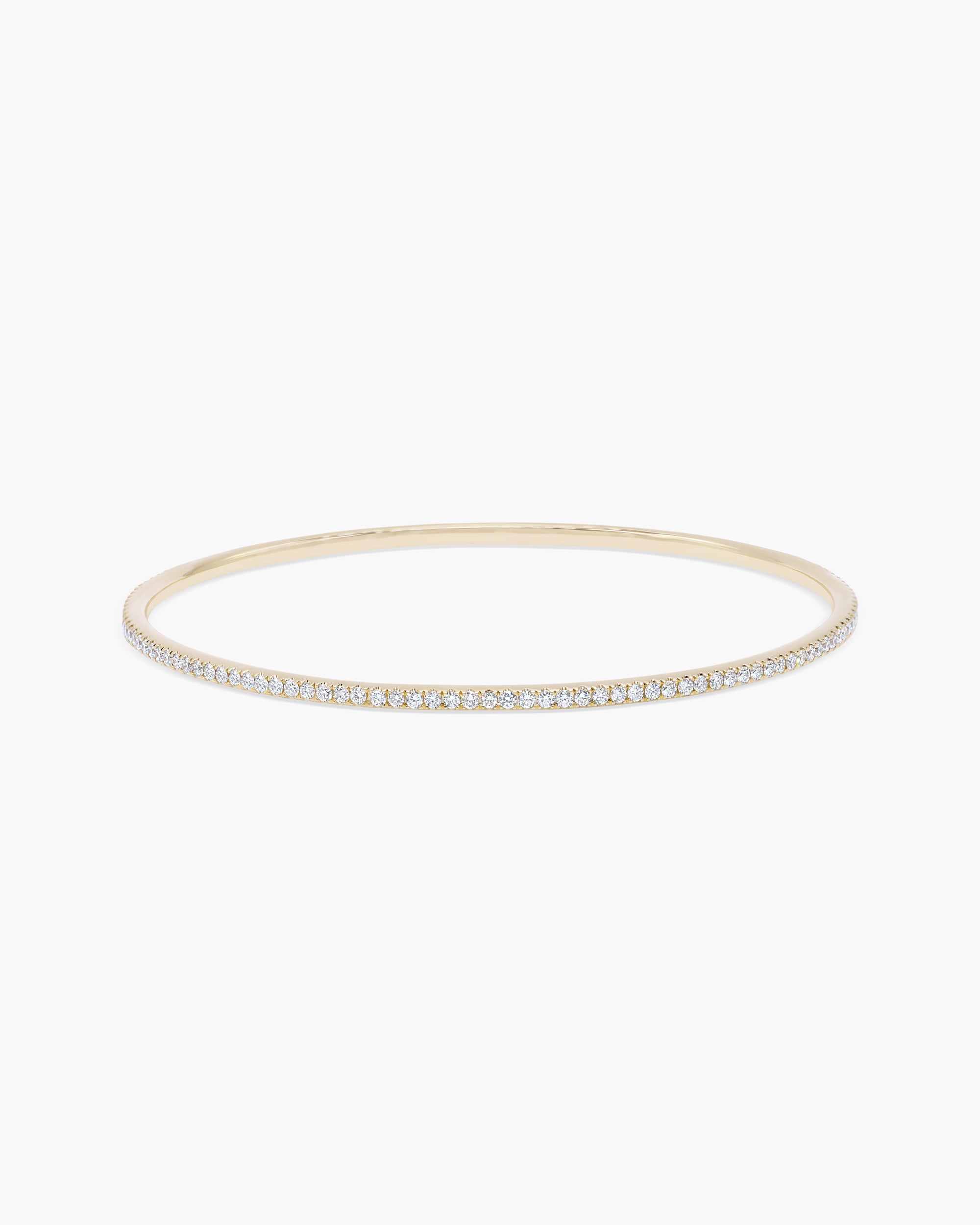 This beautiful slip on diamond bangle is made with great attention to detail in solid gold. This French pavé eternity bangle elevates the look when stacked in multiples.