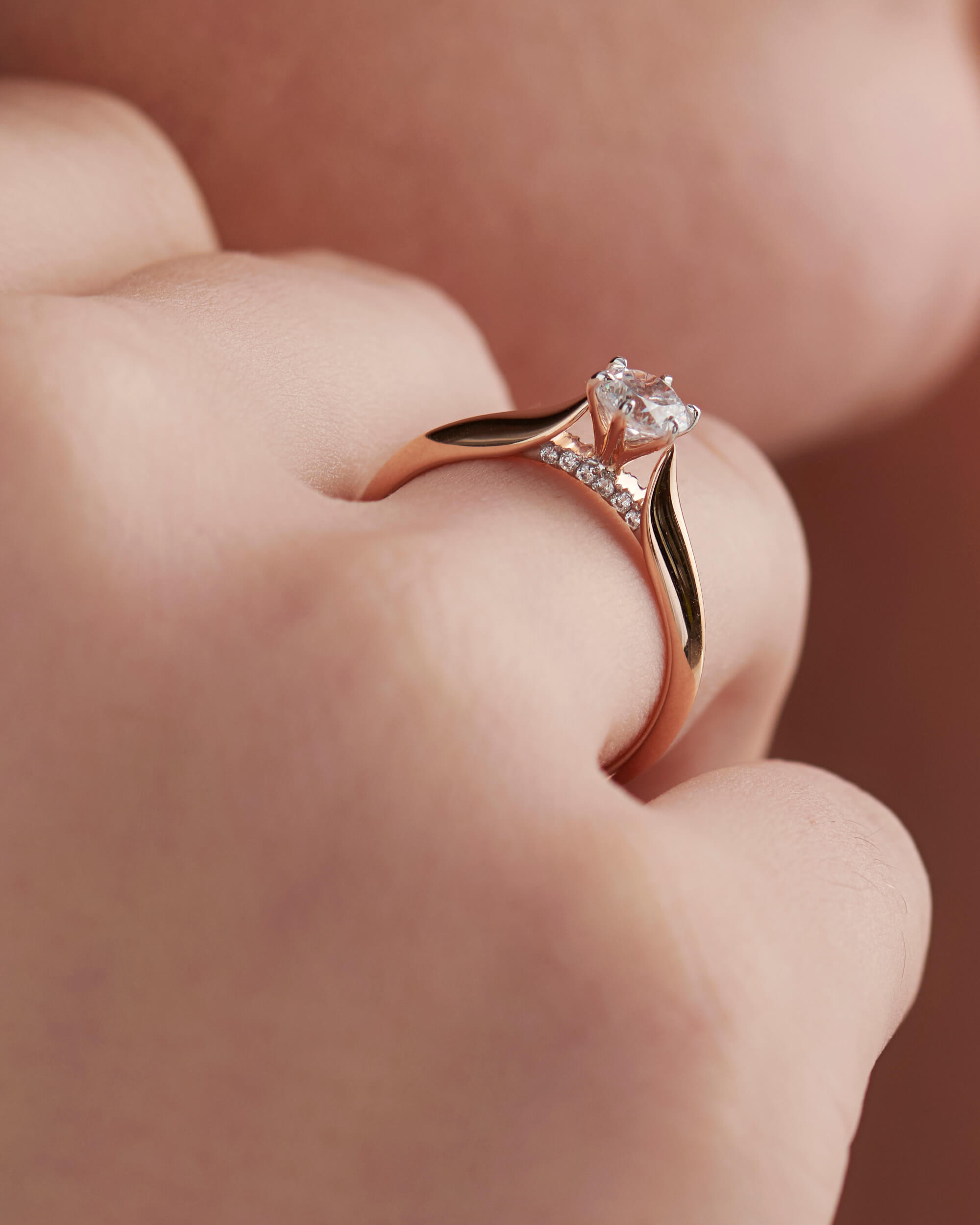 Elegant and classic with a touch of sparkle. This Diamond Accent Tapered Cathedral Solitaire ring features a centre solitaire (0.5ct) set in 6 claw setting and pavé-set diamond bridge.