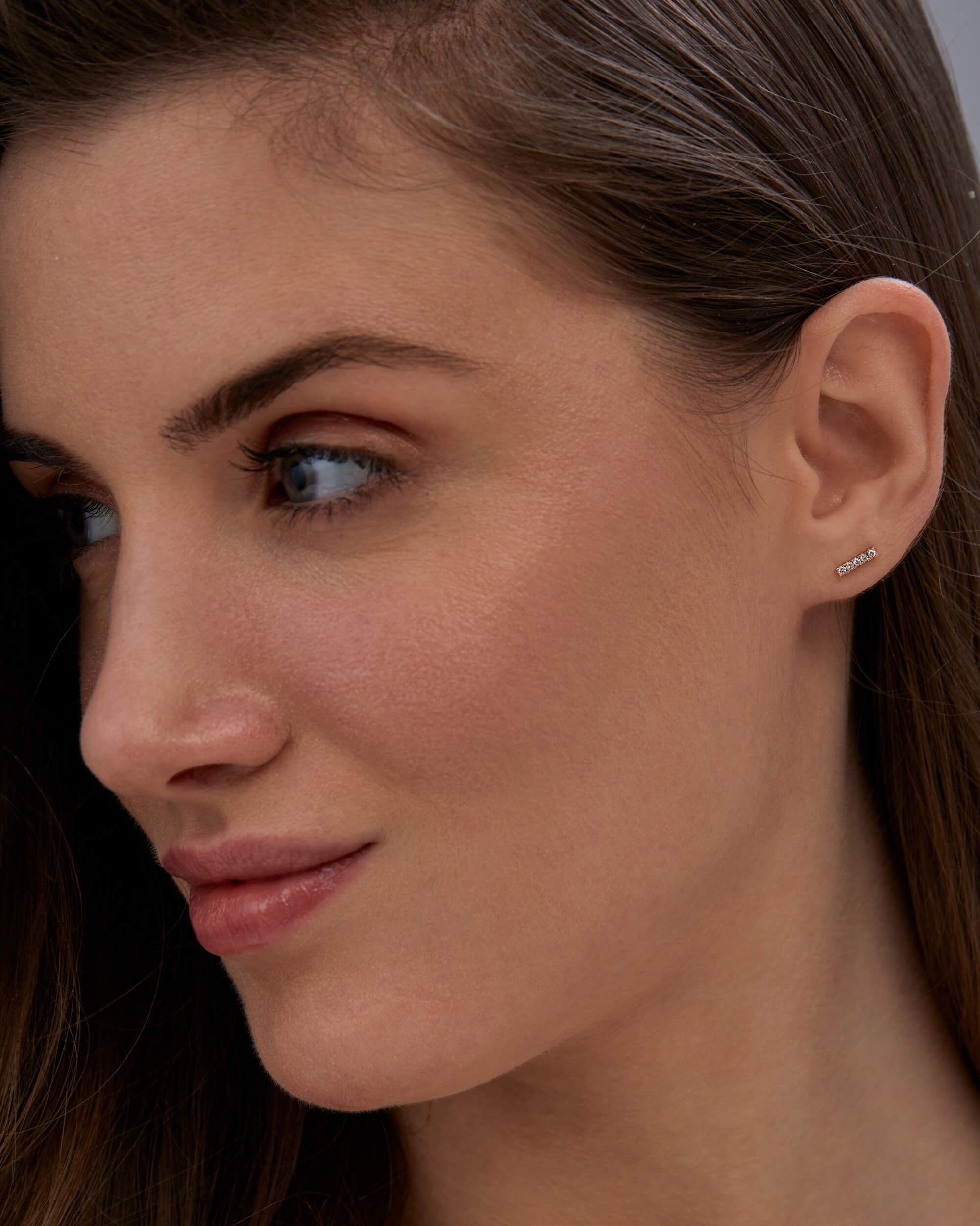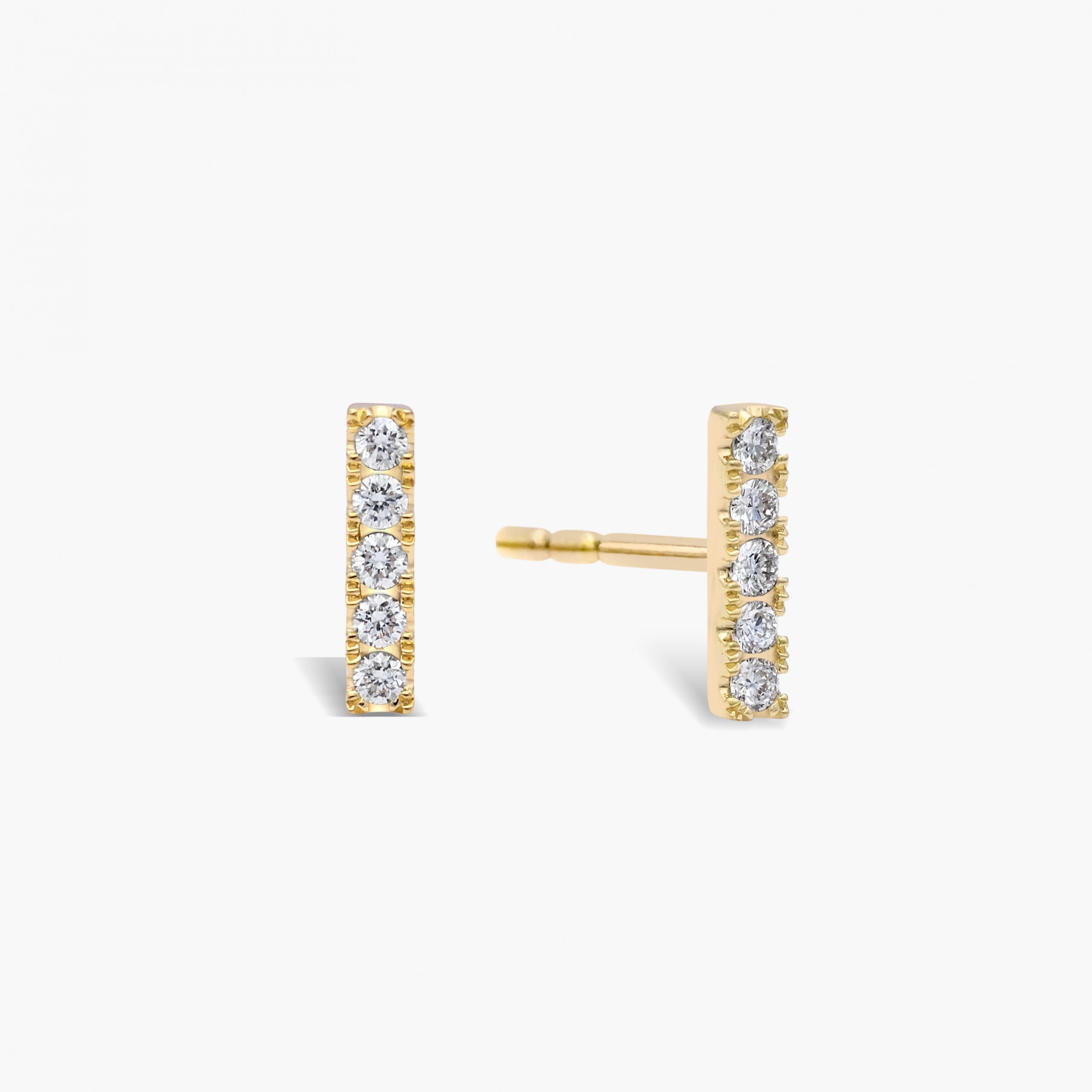Get these Diamond Bar Studs to amp up the simplicity quotient. They can be worn alone or mixed and matched with other earrings. This is handcrafted in gold and sparkling pavé set diamonds and have a friction butterfly ear nut for comfy and secure fit.