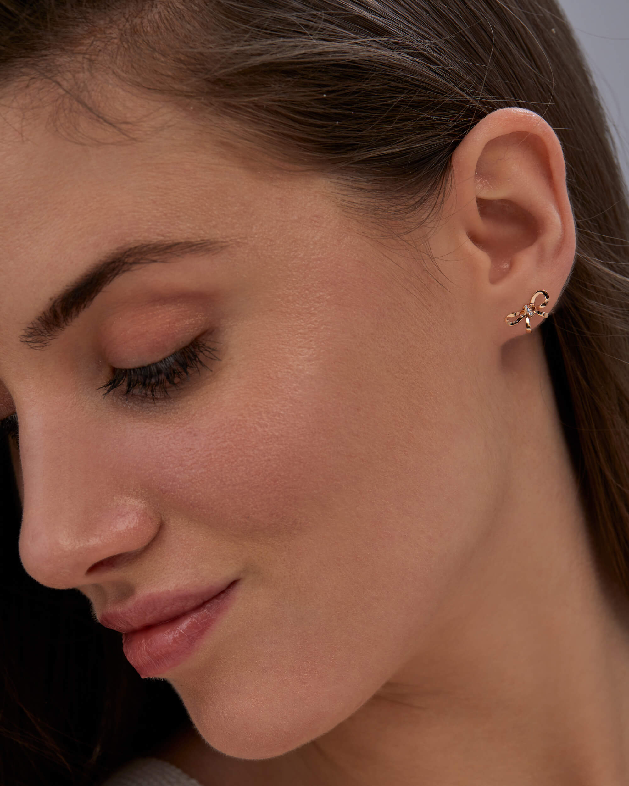 Put a bow on and you are ready for an ear party! These tiny Diamond Bow Studs add a touch of glamour to your ensemble. This is handcrafted in gold and sparkling pavé set diamonds in the centre and have a friction butterfly ear nut for comfy and secure fit.