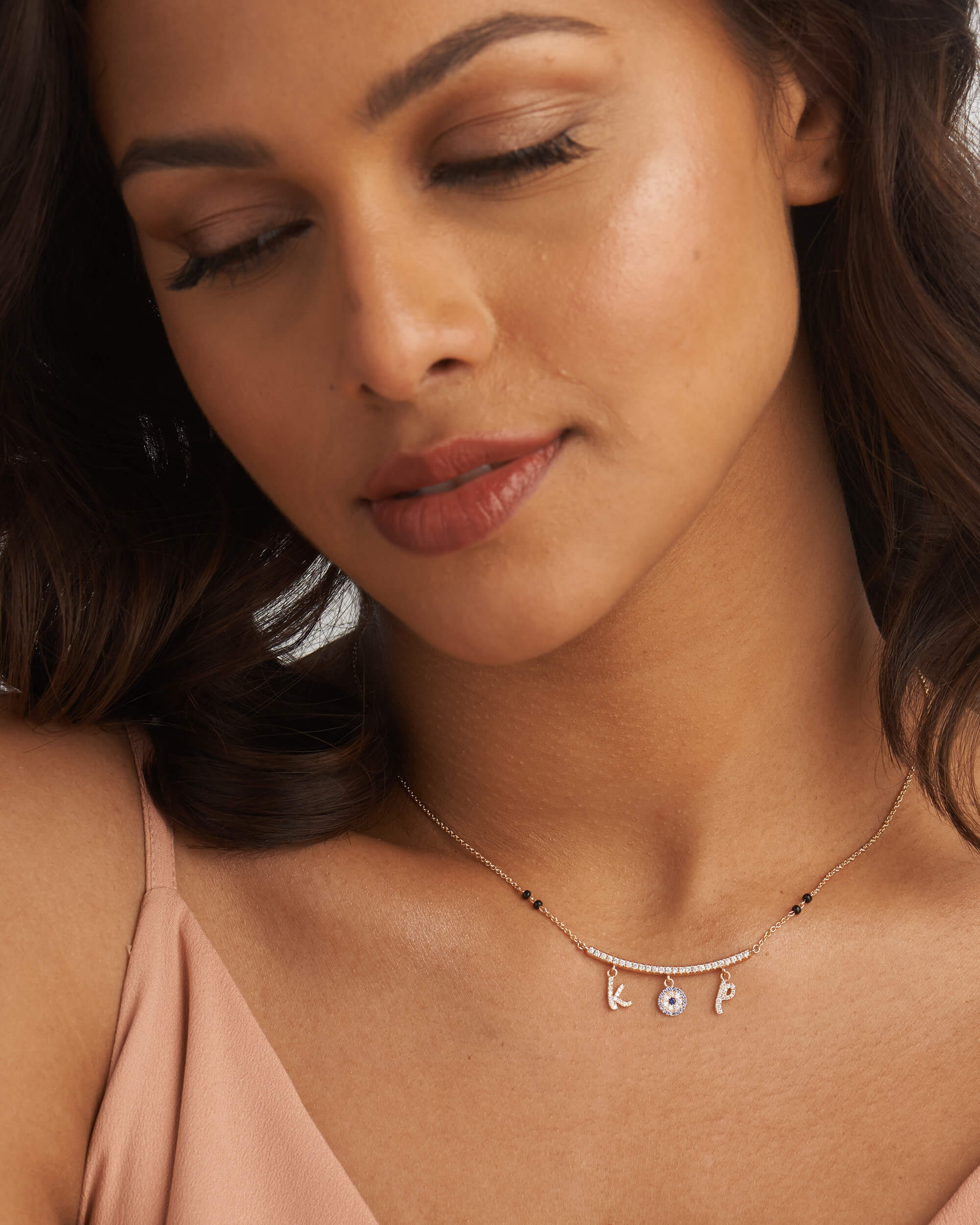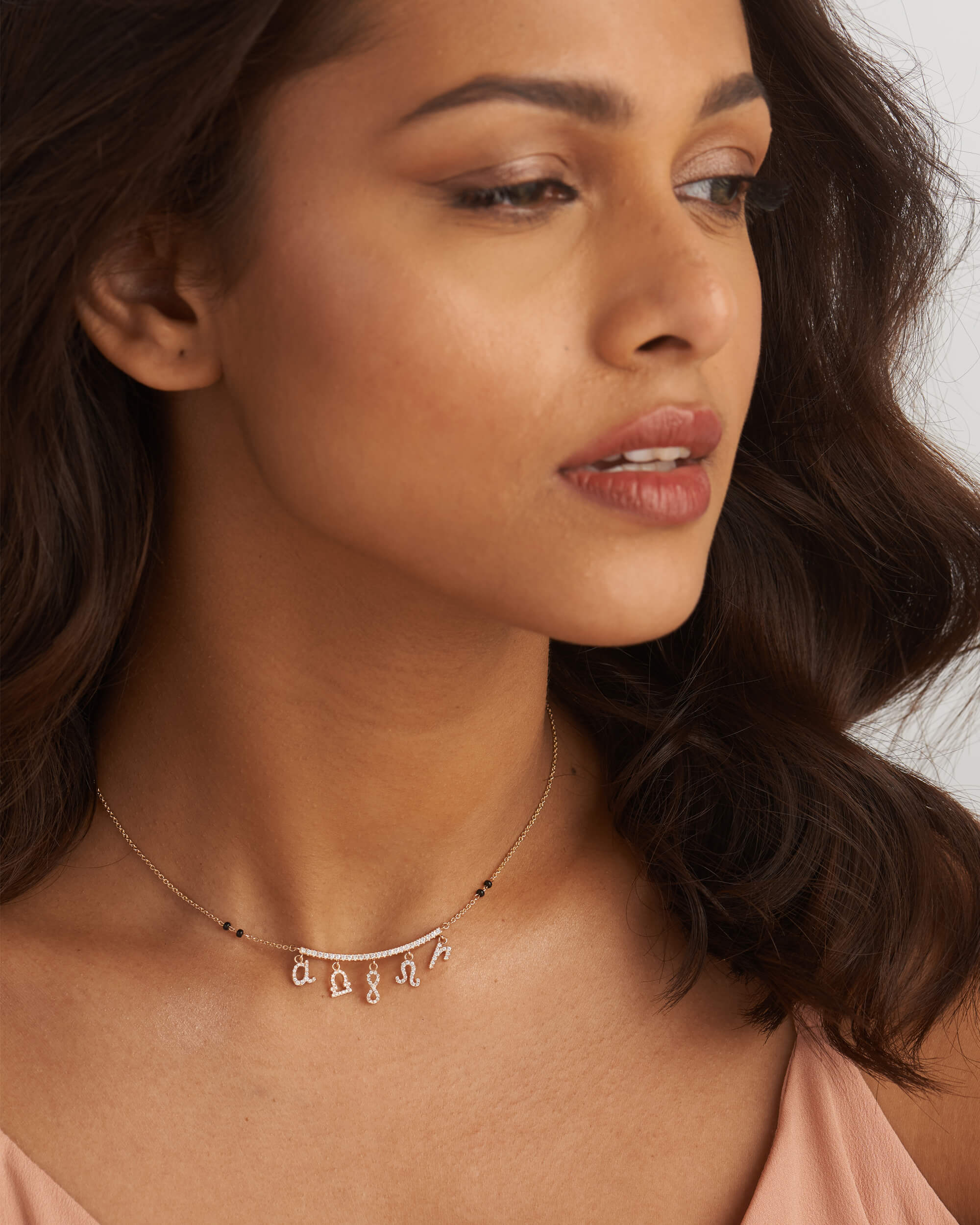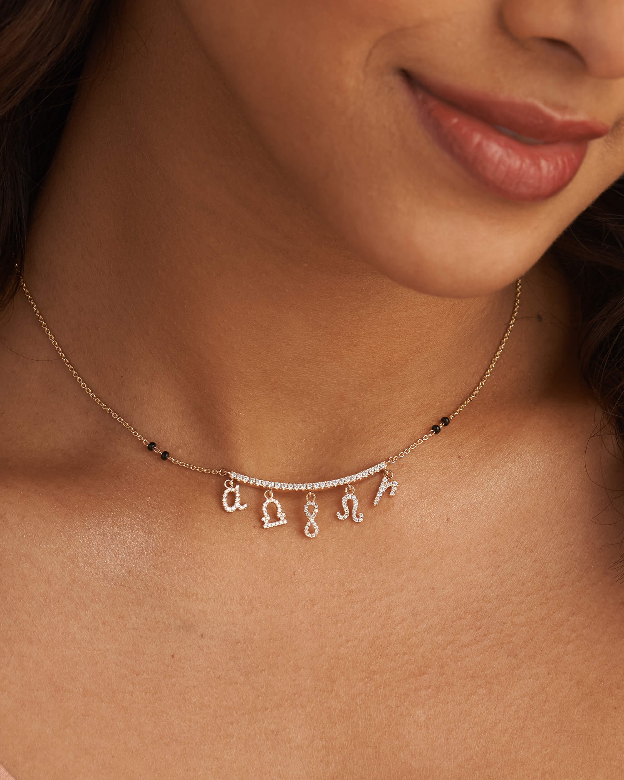 Diamond Charm Mangalsutra Necklace (Curved Bar)