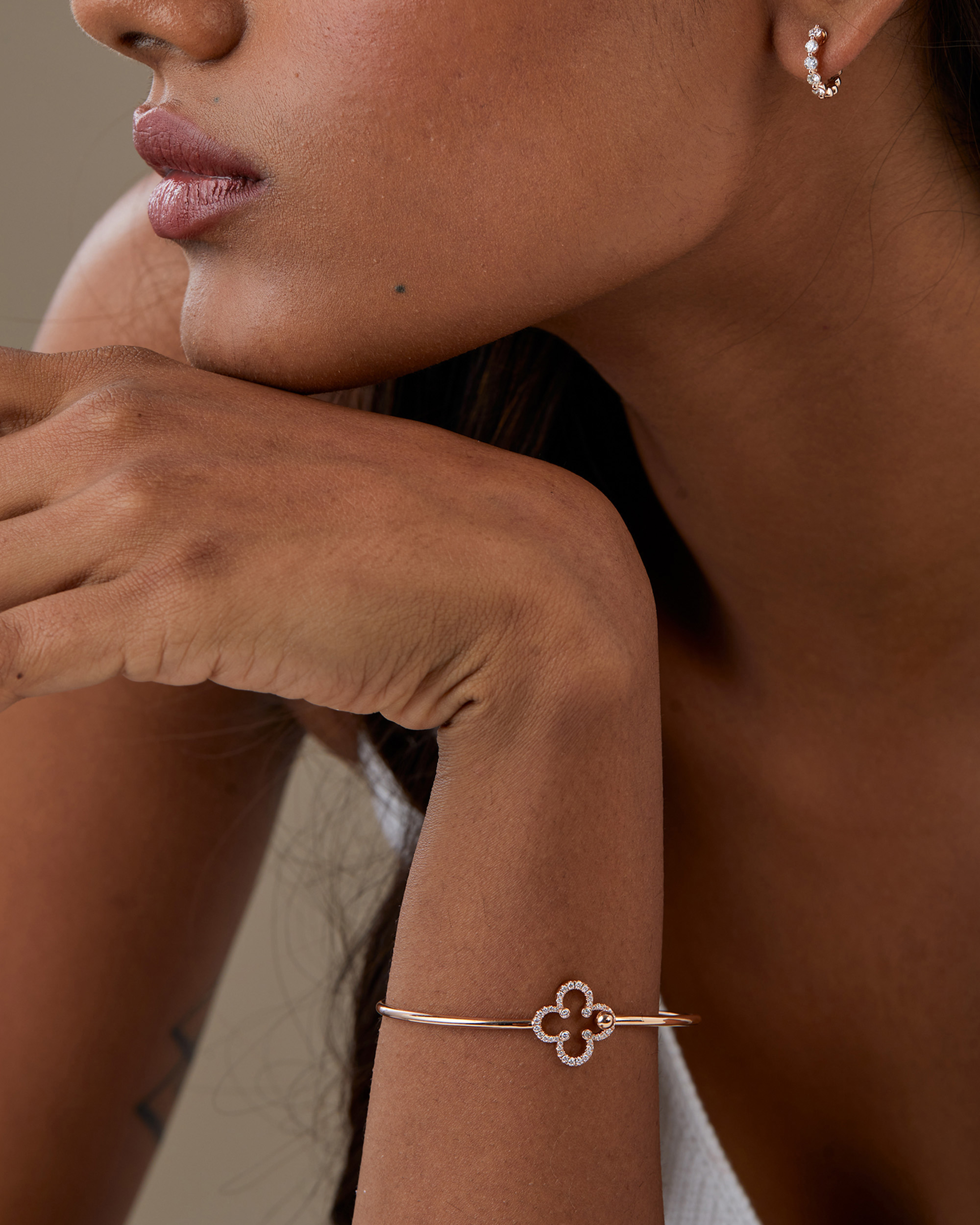 Diamond Clover Flexible Bangle Bracelet