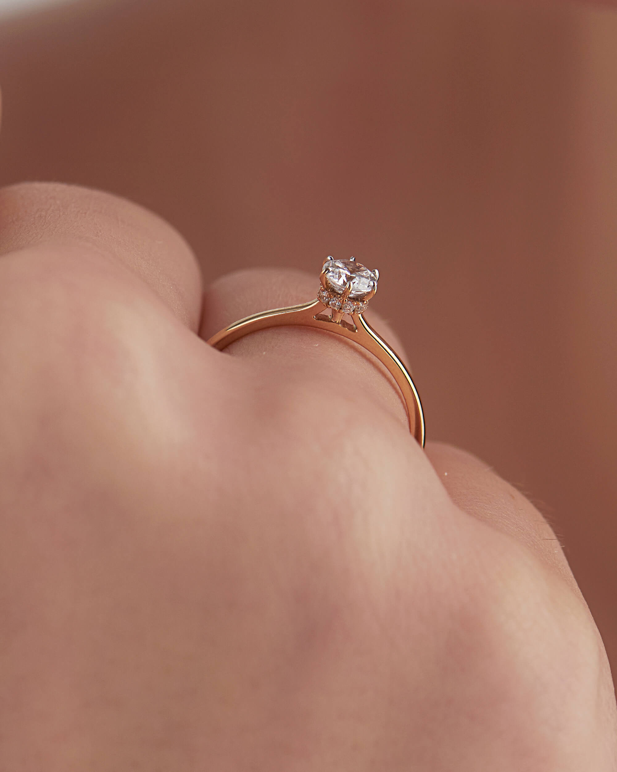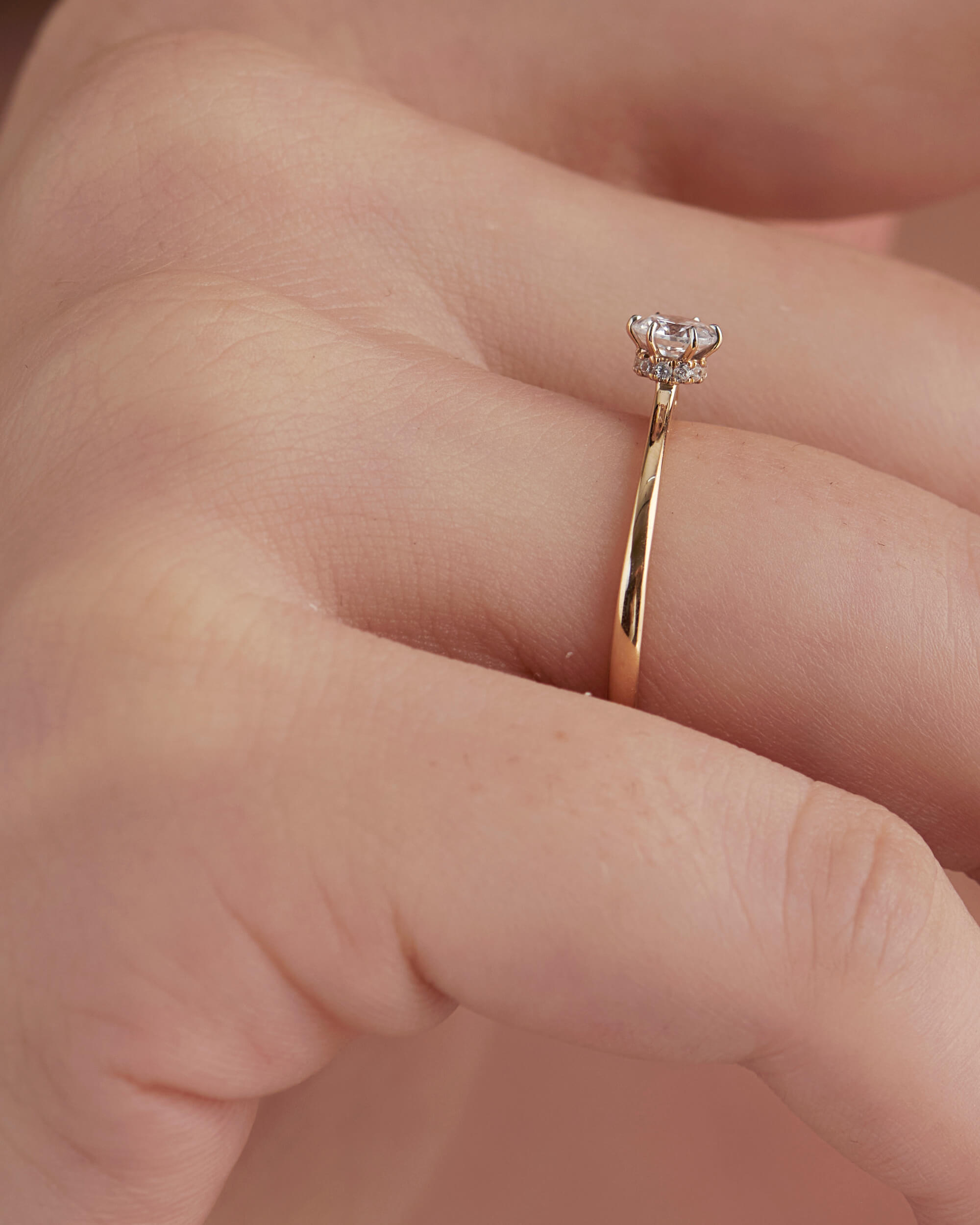 An elegant creation and perfect to be worn alone or paired with an engagement band. This Diamond Collar Round Solitaire Ring showcases a precious diamond centre stone (0.5ct) on display while a diamond collar of pavé diamonds add sparkle from every angle.