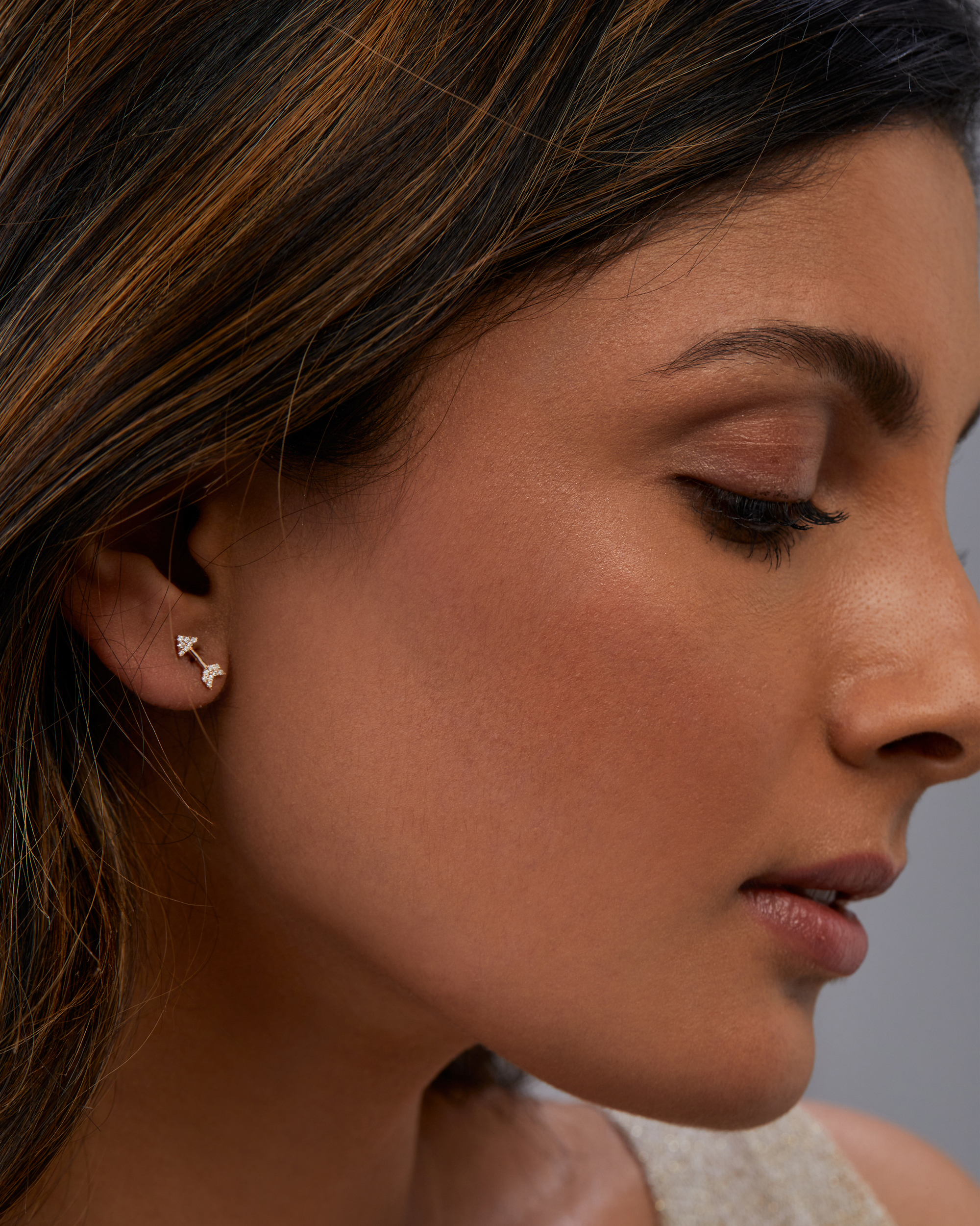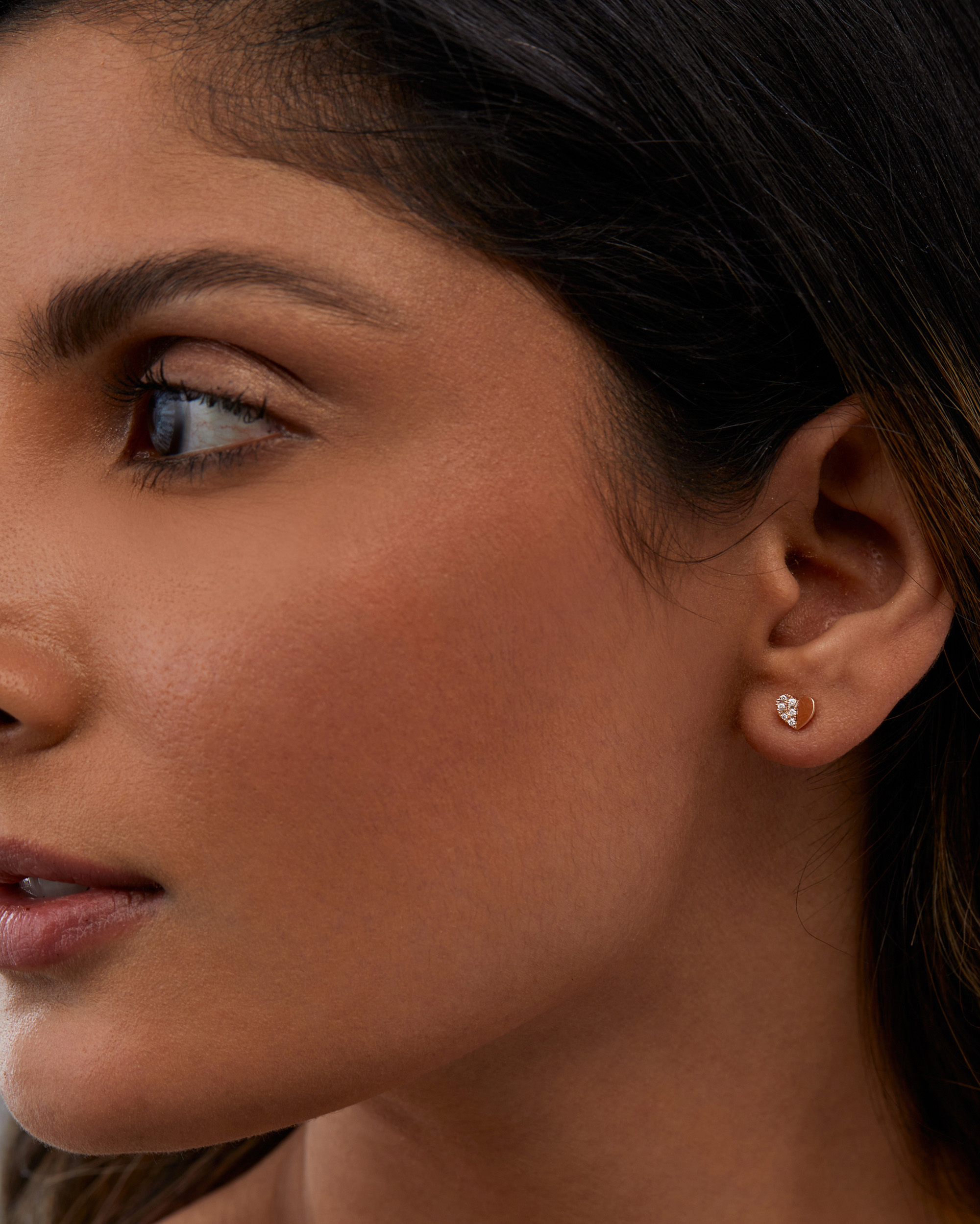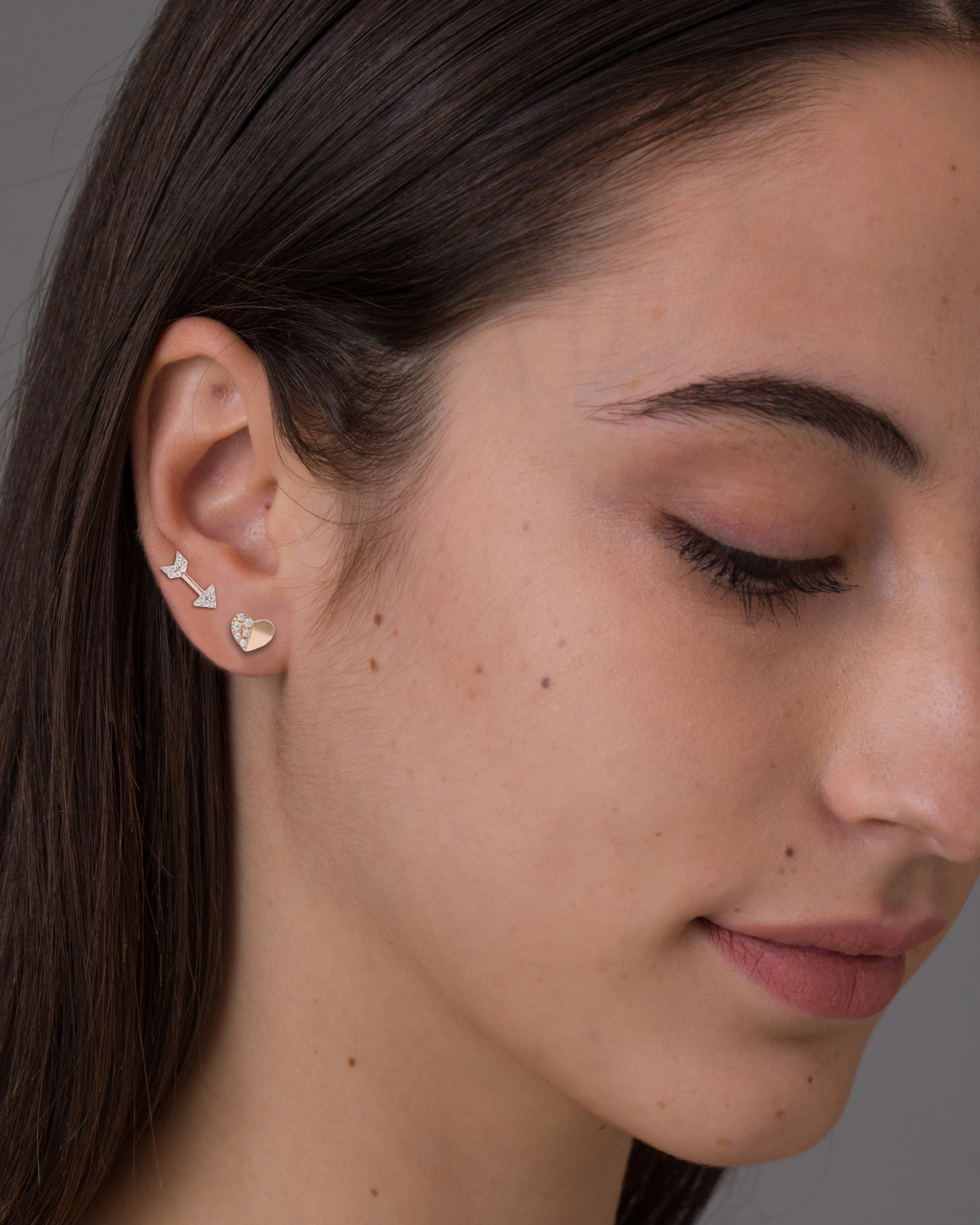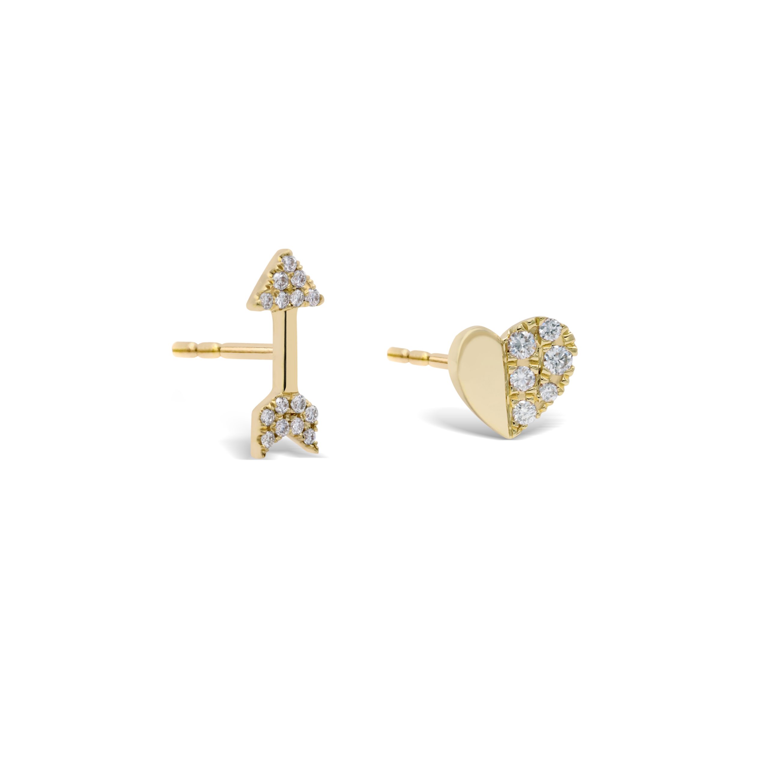 Fall in Love with this iconic symbol. Featuring our mix-match pair of Diamond Cupid Studs, grab these to add some excitement. Works well in either ear or in one ear if you have multiple piercings. This is handcrafted in gold and sparkling pavé set diamonds and have a friction butterfly ear nut for comfy and secure fit.