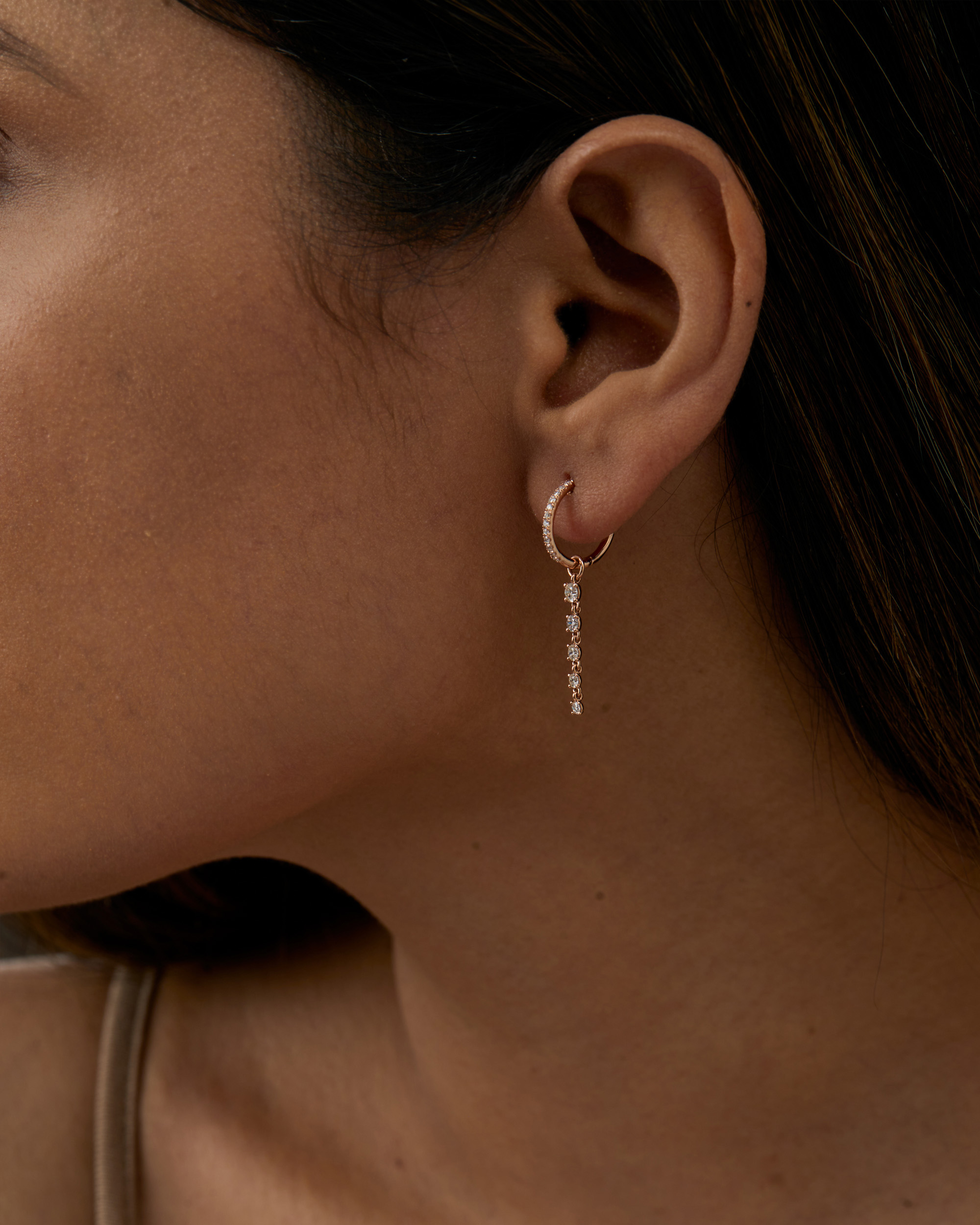 Diamond Drop Chain Hoops