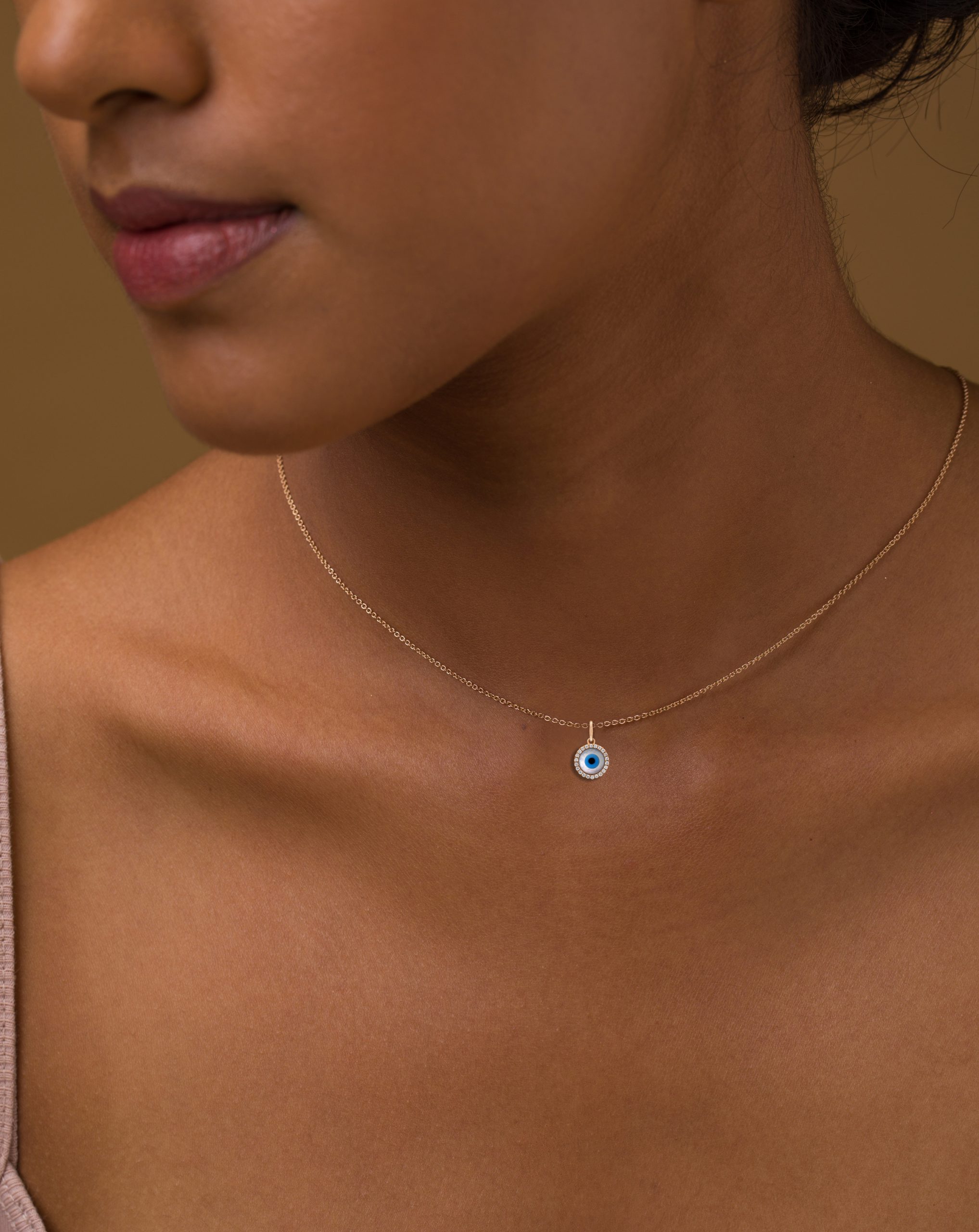 Diamond Frame Circle Evil Eye Charm /Pendant