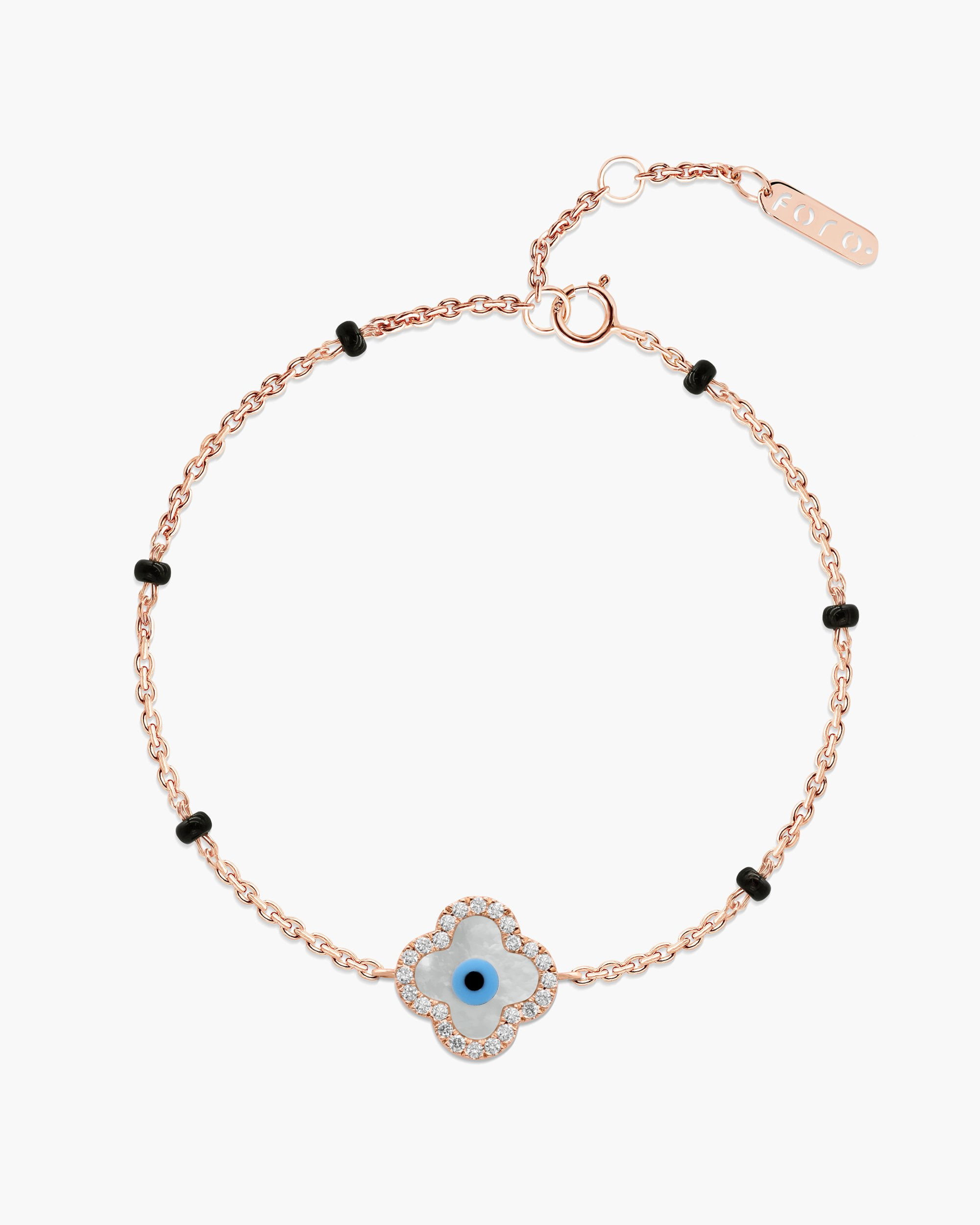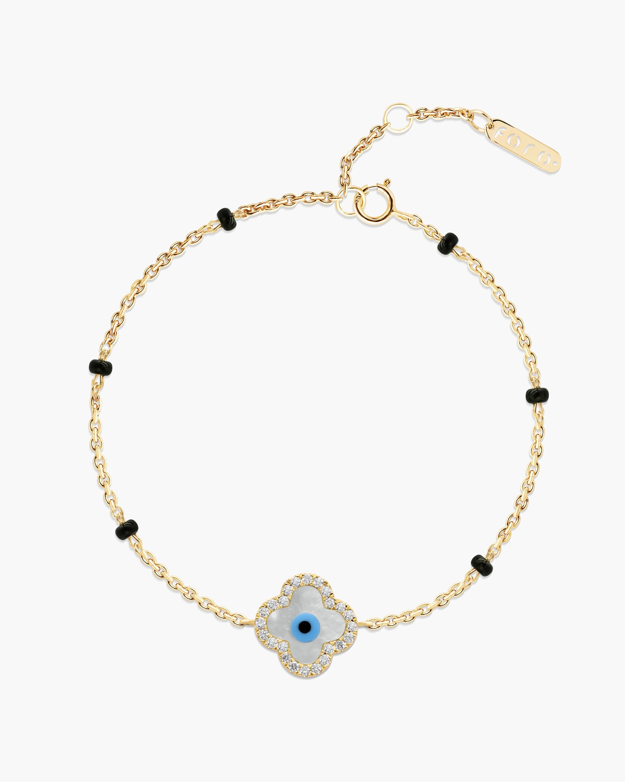 Diamond Frame Clover Evil Eye Bracelet (Small)