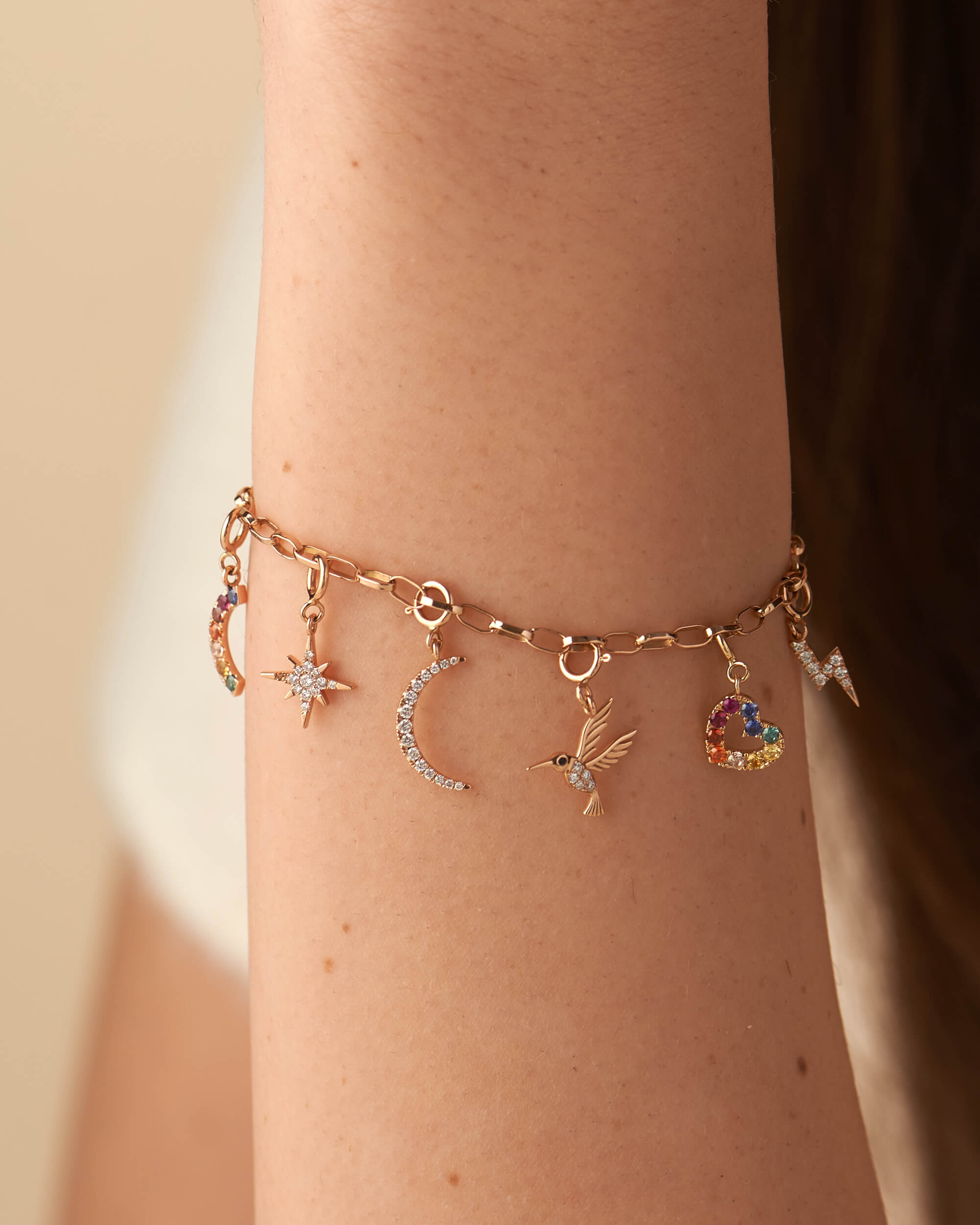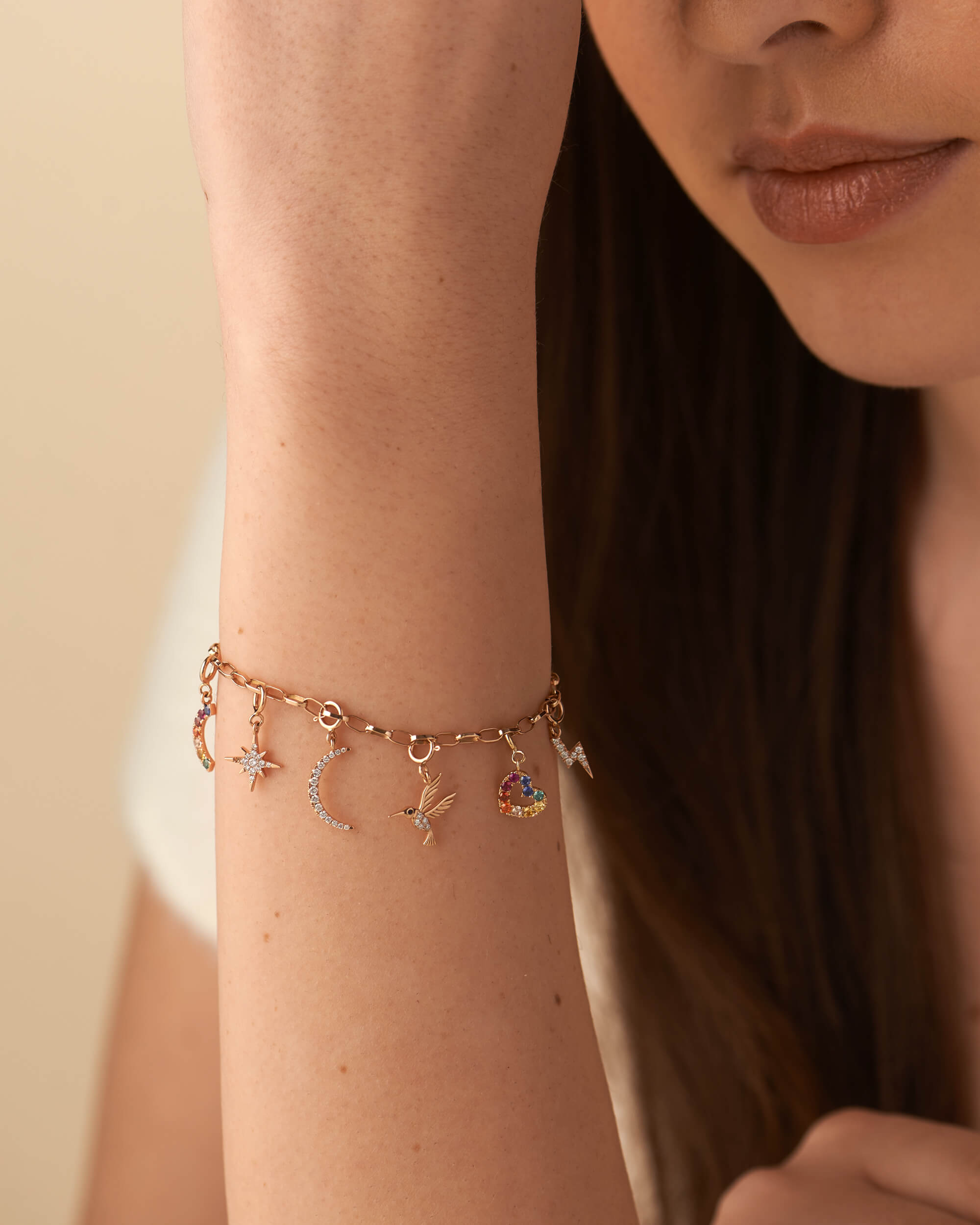 Add this sparkling flash to your charm collection with this delicate Diamond Lightning Bolt Charm / Pendant. This is handcrafted in gold and sparkling pavé set diamonds.