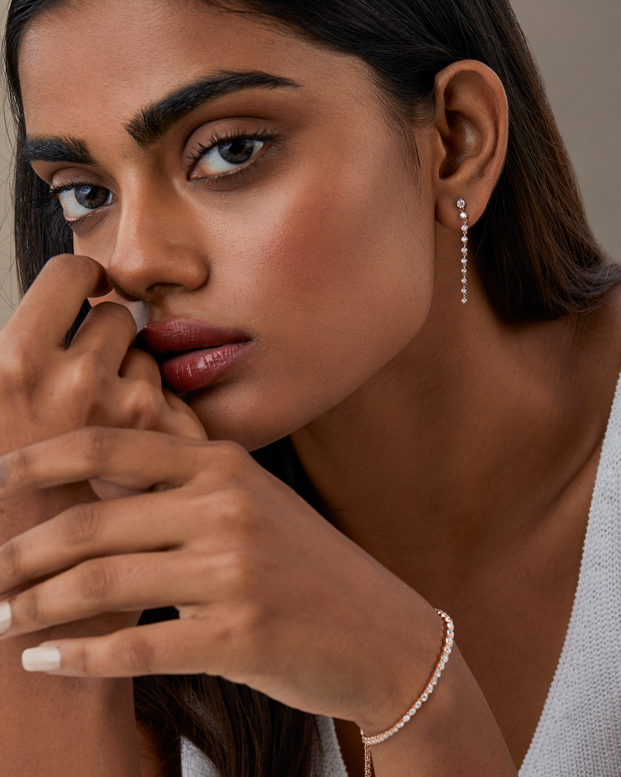 Diamond Linear Drop Earrings
