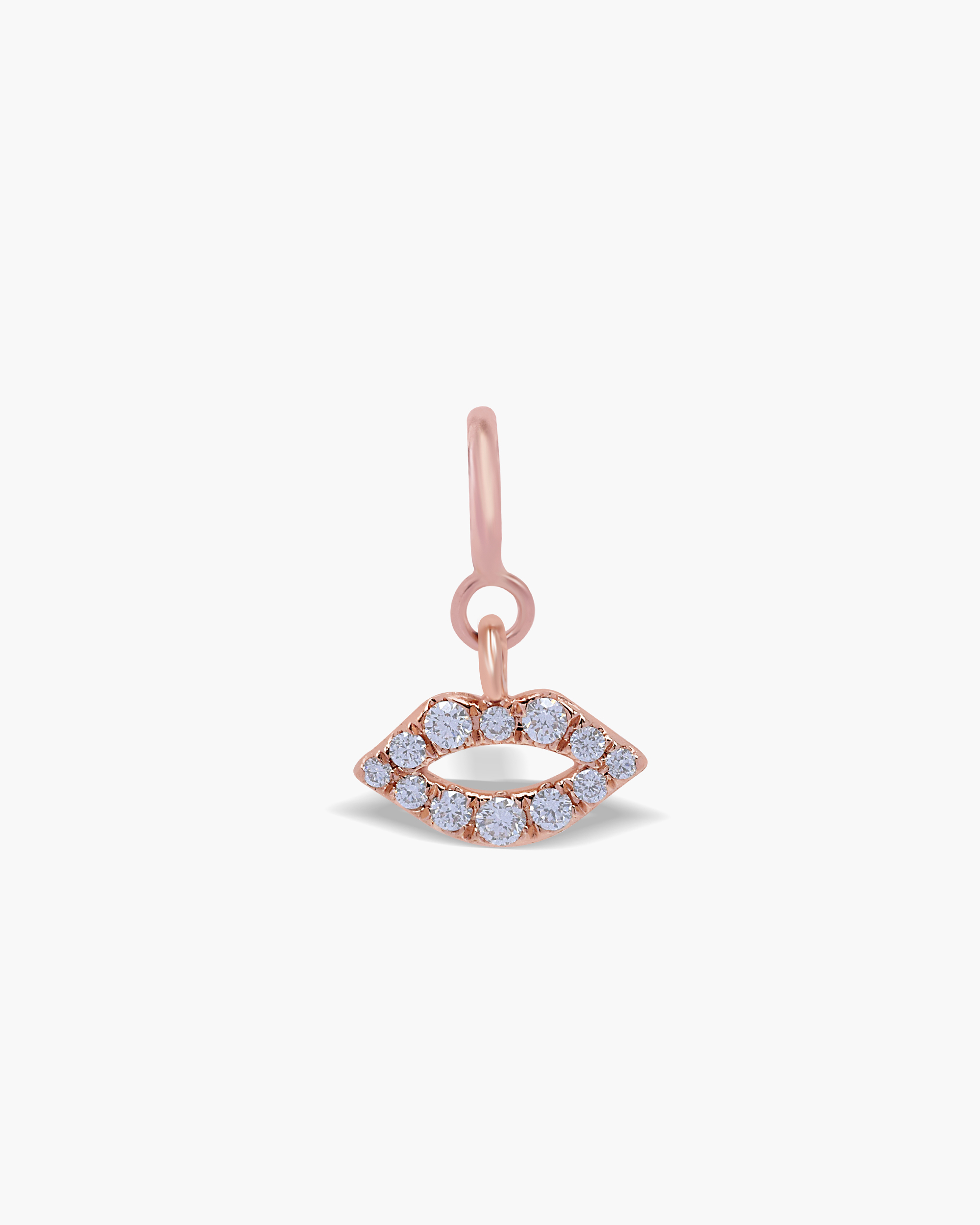 Featuring a pouted lips charm handcrafted in solid gold and pave set diamonds.