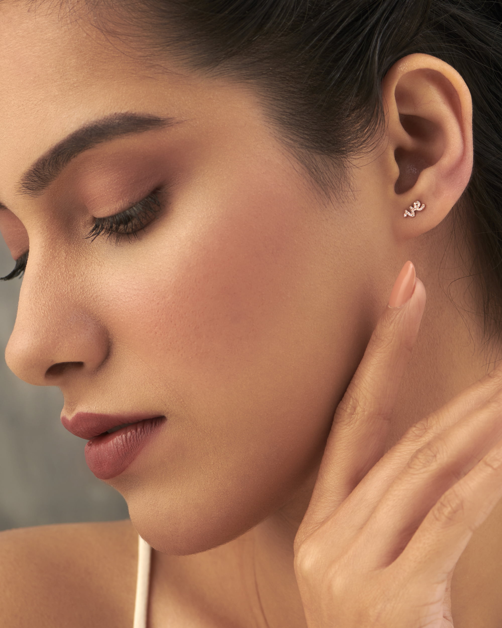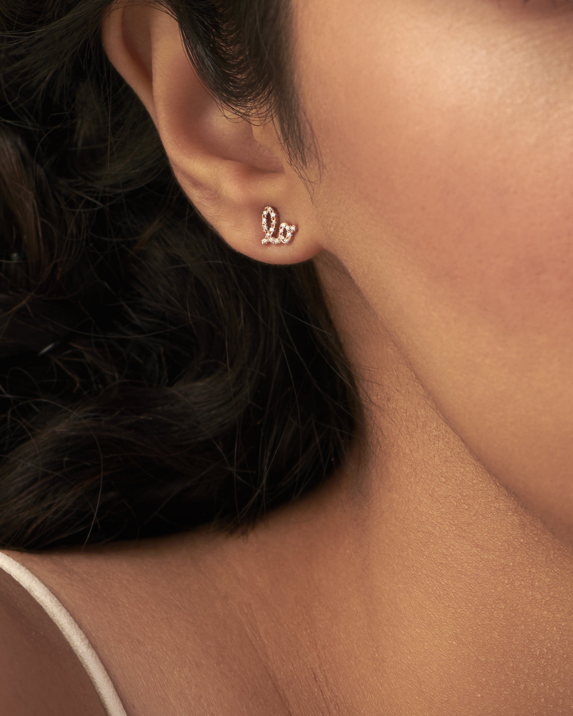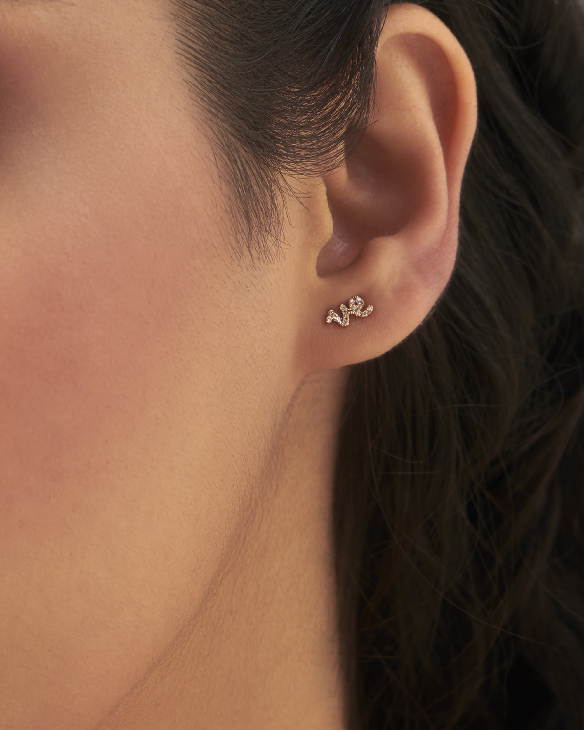 All we need is LOVE! Wear our Diamond Love Studs as a statement, that won’t weigh you down. This is handcrafted in gold and sparkling pavé set diamonds and have a friction butterfly ear nut for comfy and secure fit.