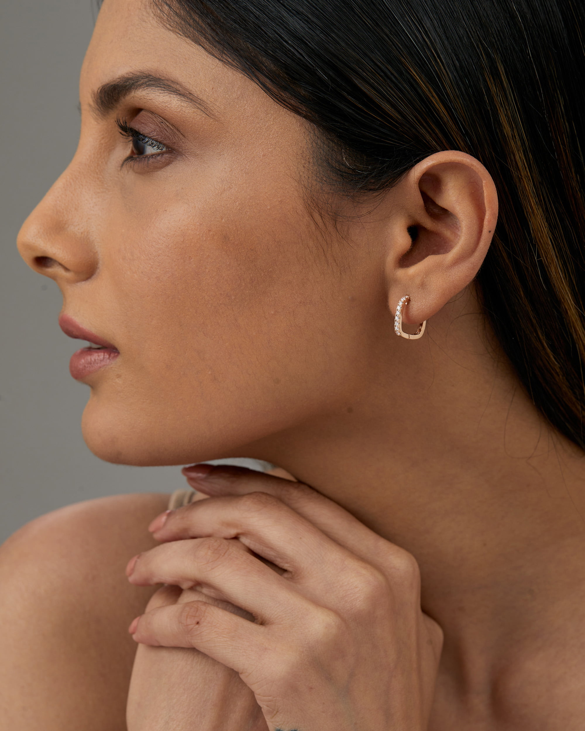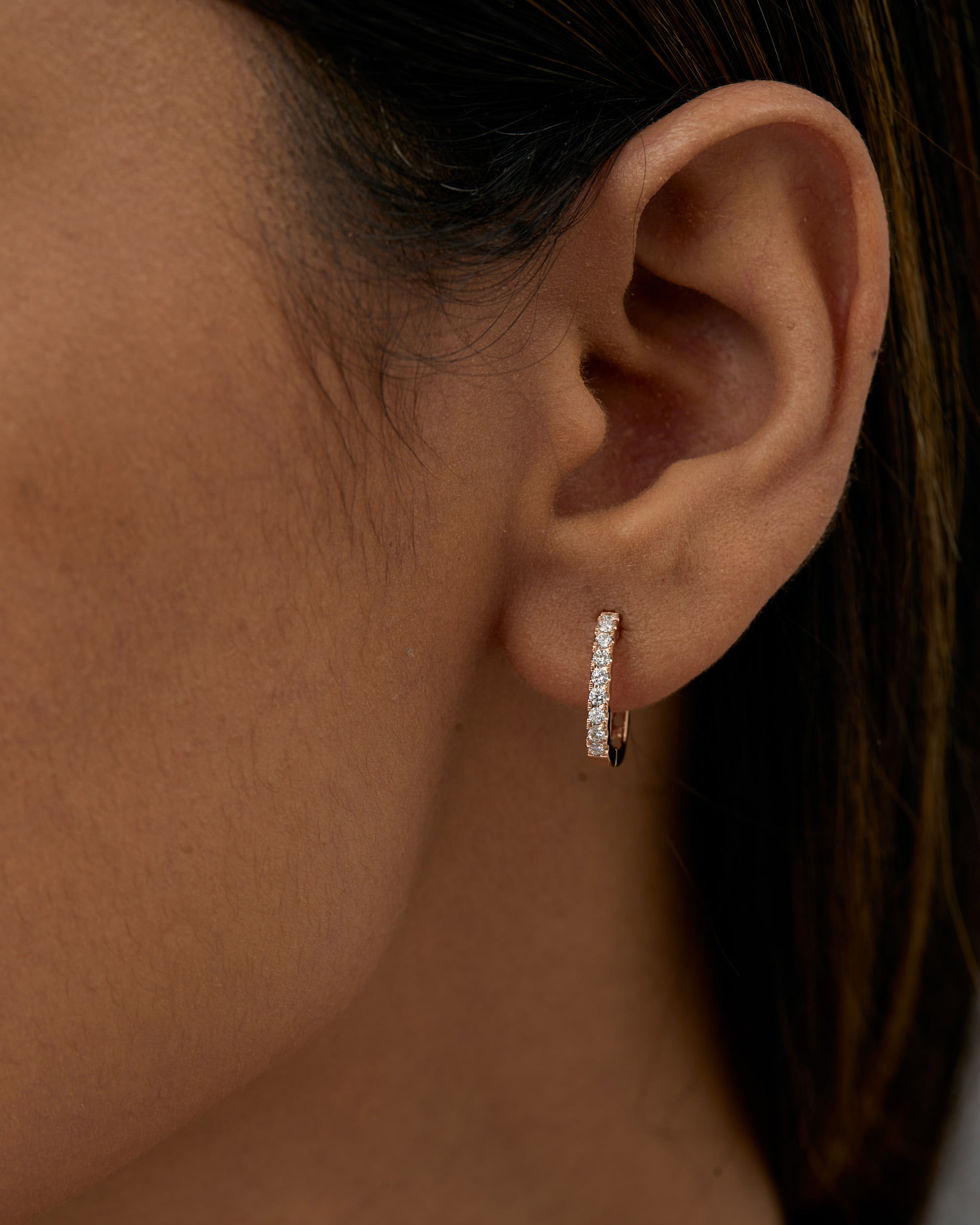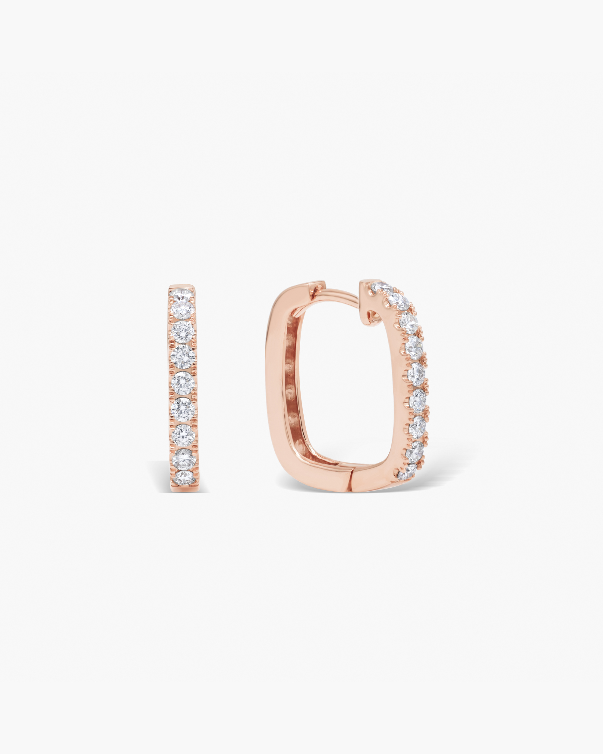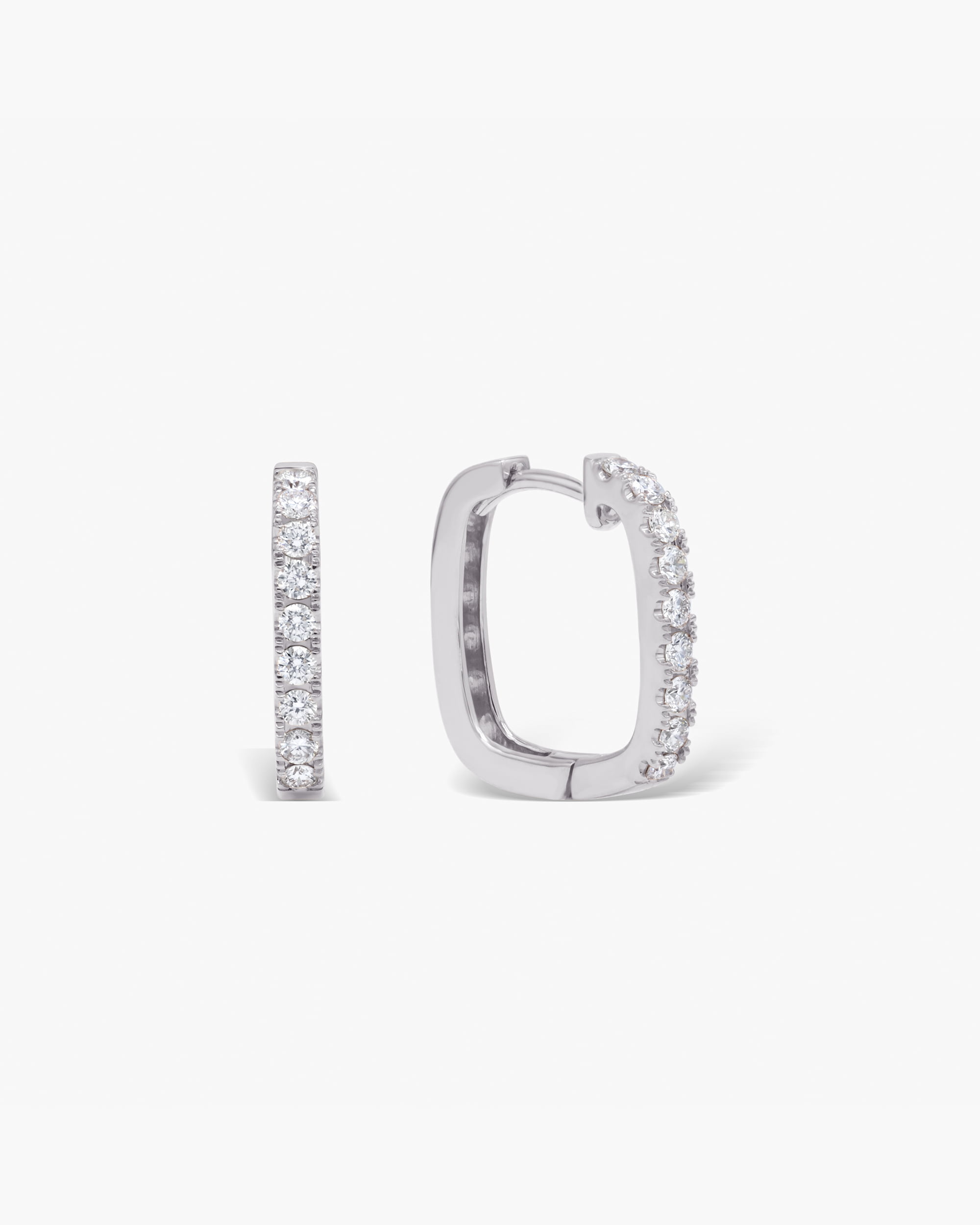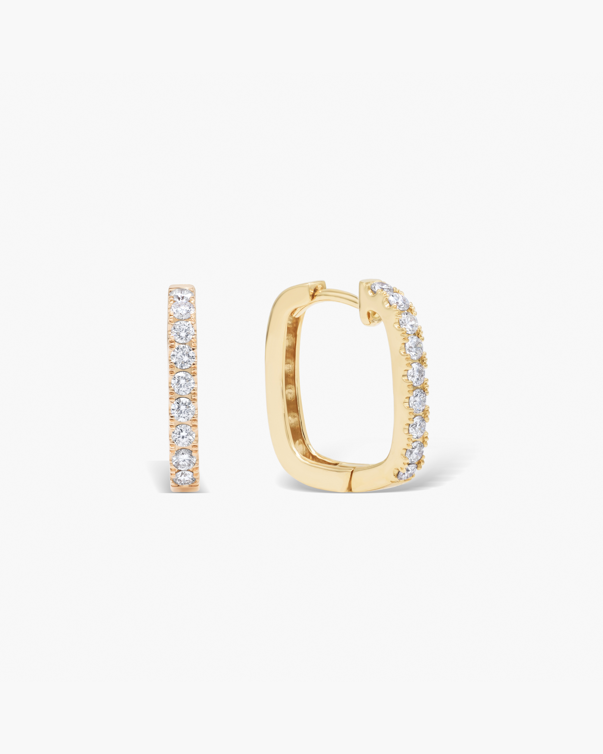 Inspired by geometric form is our Diamond Square Hoops (Slim), which is designed to be worn as a staple wear or saved for a special occasion. Featuring a single row of pavé set diamonds in the front and plain gold in the rear side.