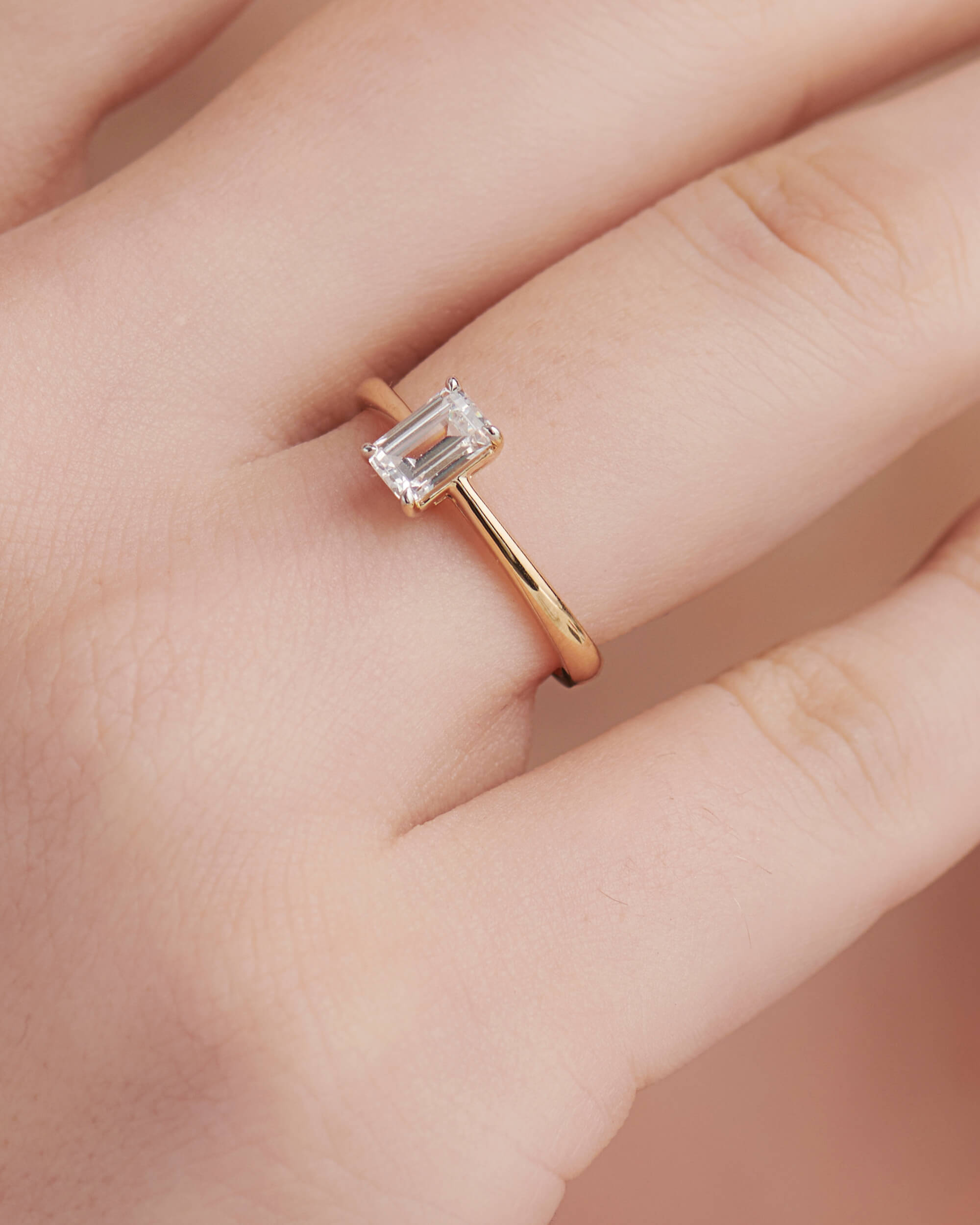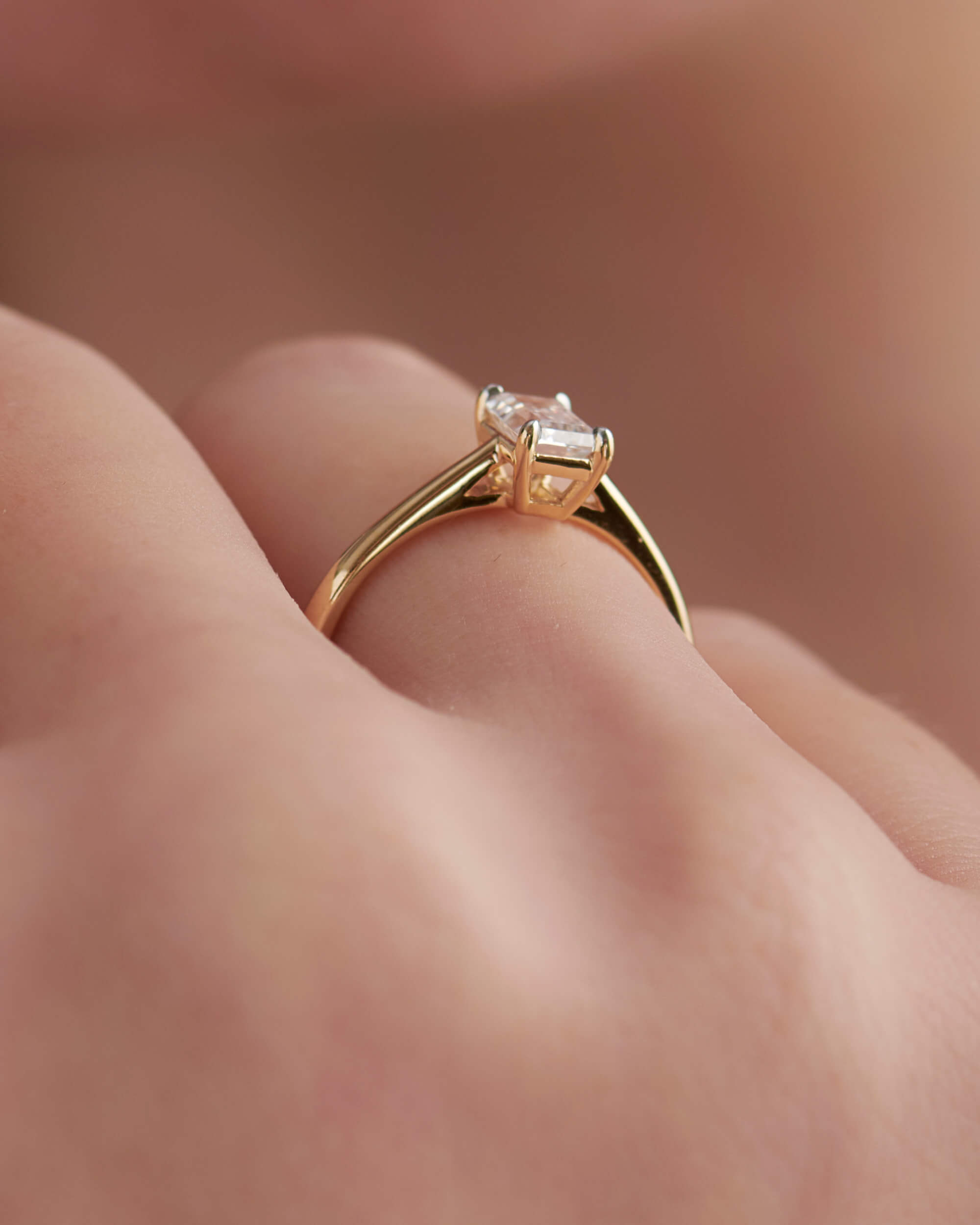 Simplicity and Elegance, this Emerald-cut Diamond Solitaire Ring is truly an exquisite piece. This ring features a 0.5ct emerald cut diamond set within a sleek for claw setting and fixed to our solid gold ring.