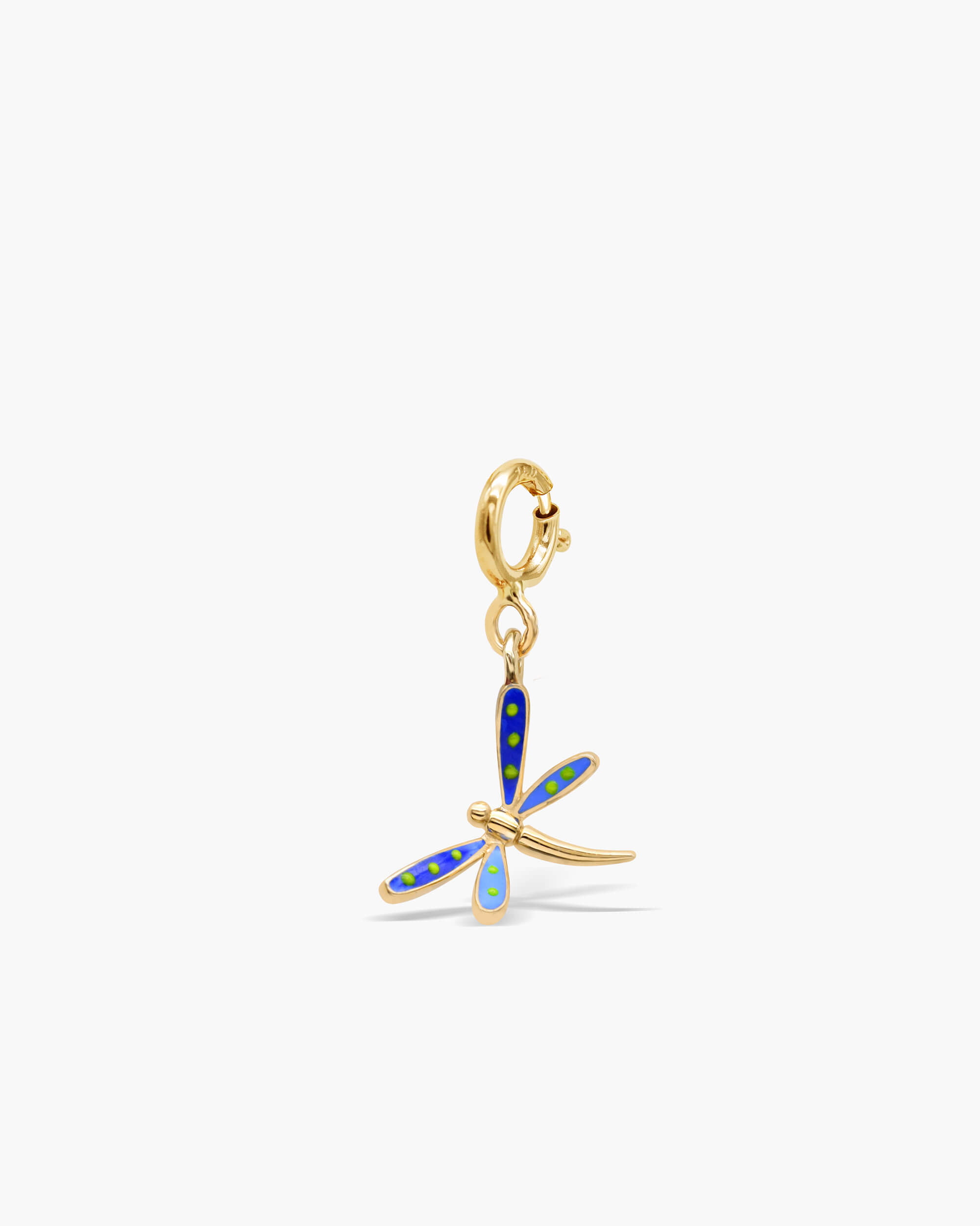 Add this charming and elegant Enamel Dragonfly Charm / Pendant to your collection. Handcrafted in solid gold, and filled with shades of blue enamel.