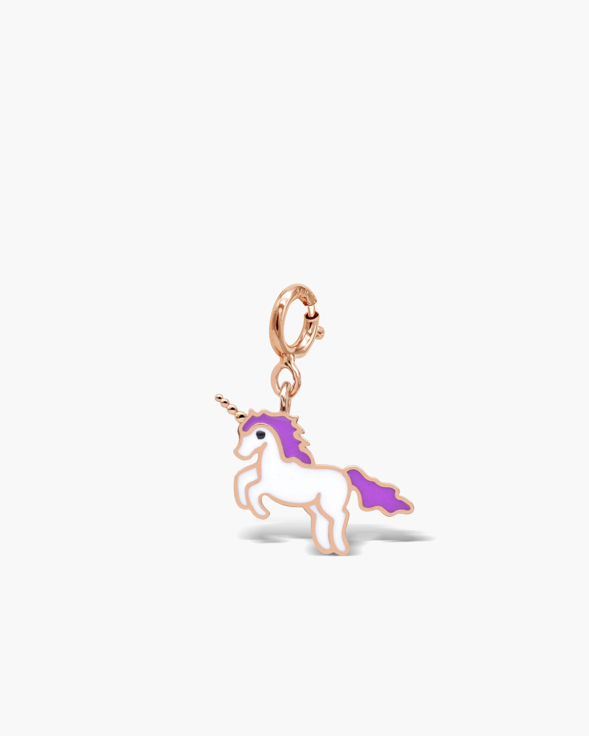 Flaunt your whimsical side with this Enamel Unicorn Charm / Pendant. Handcrafted in solid gold, this charm showcases a sculpted unicorn with white and pink enamel.