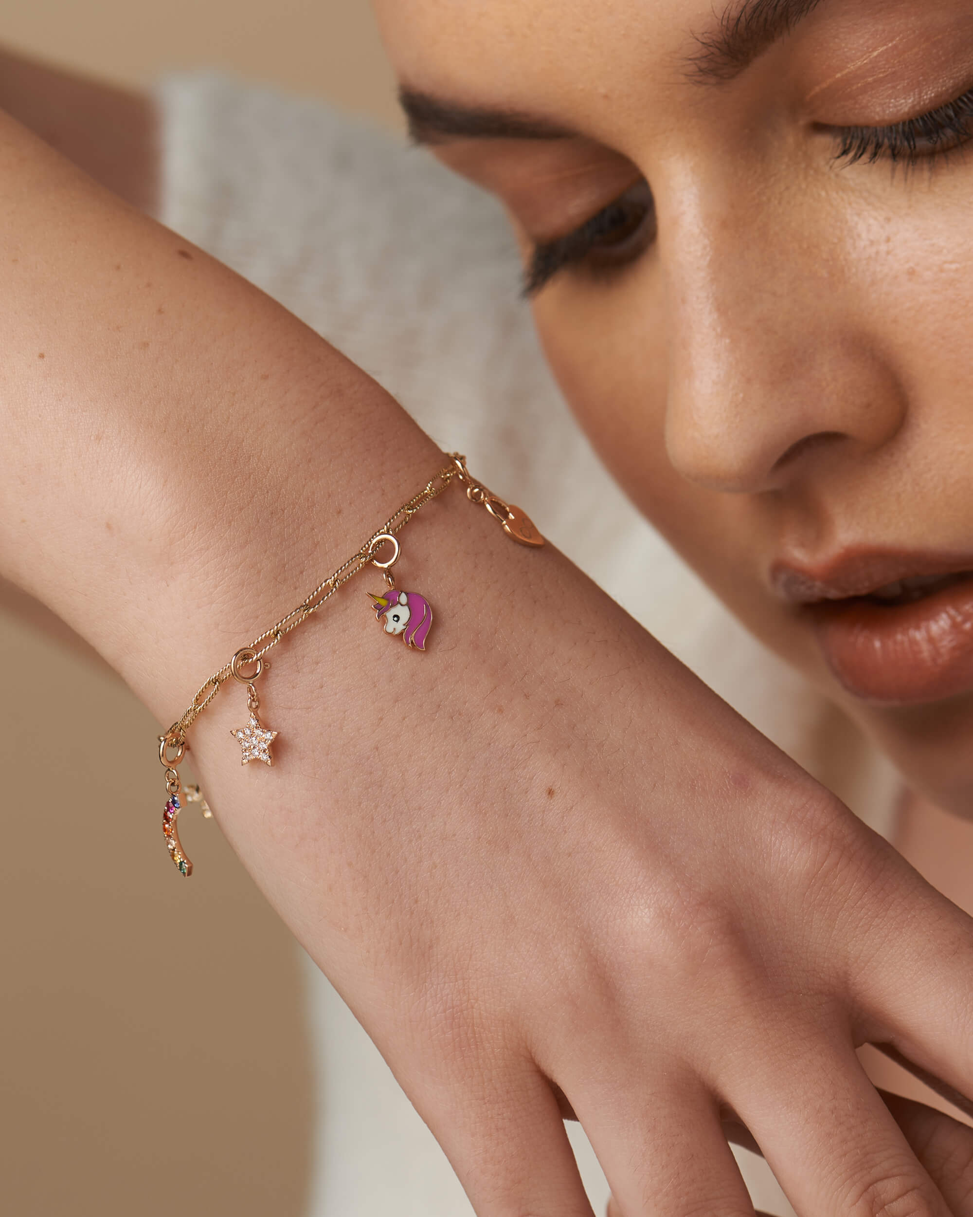 Flaunt your whimsical side with this Enamel Unicorn Face Charm / Pendant. Handcrafted in solid gold, this charm showcases a sculpted unicorn and filled with enamel.