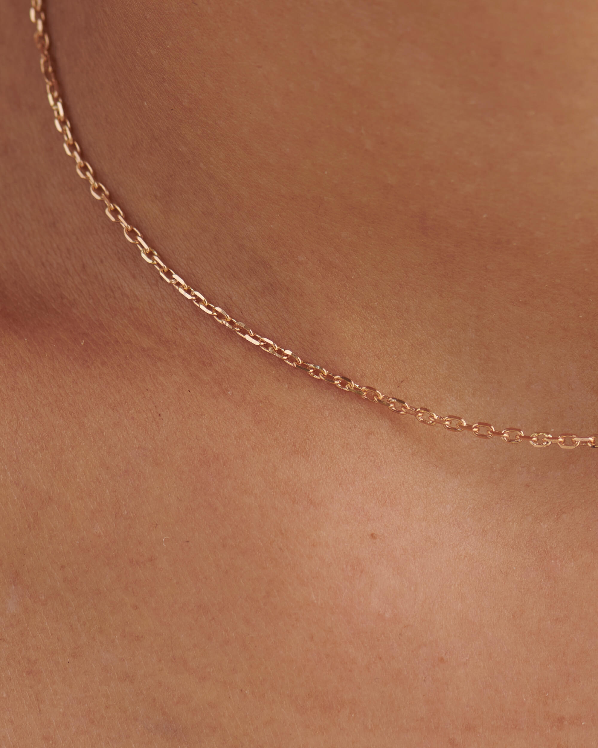 Flaunt your cute and dainty pendant / charms with this faceted cable chain necklace. Made in solid gold and uniform rectangle links.