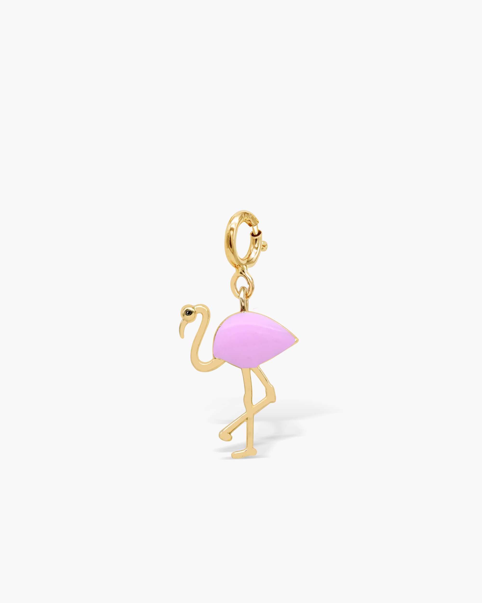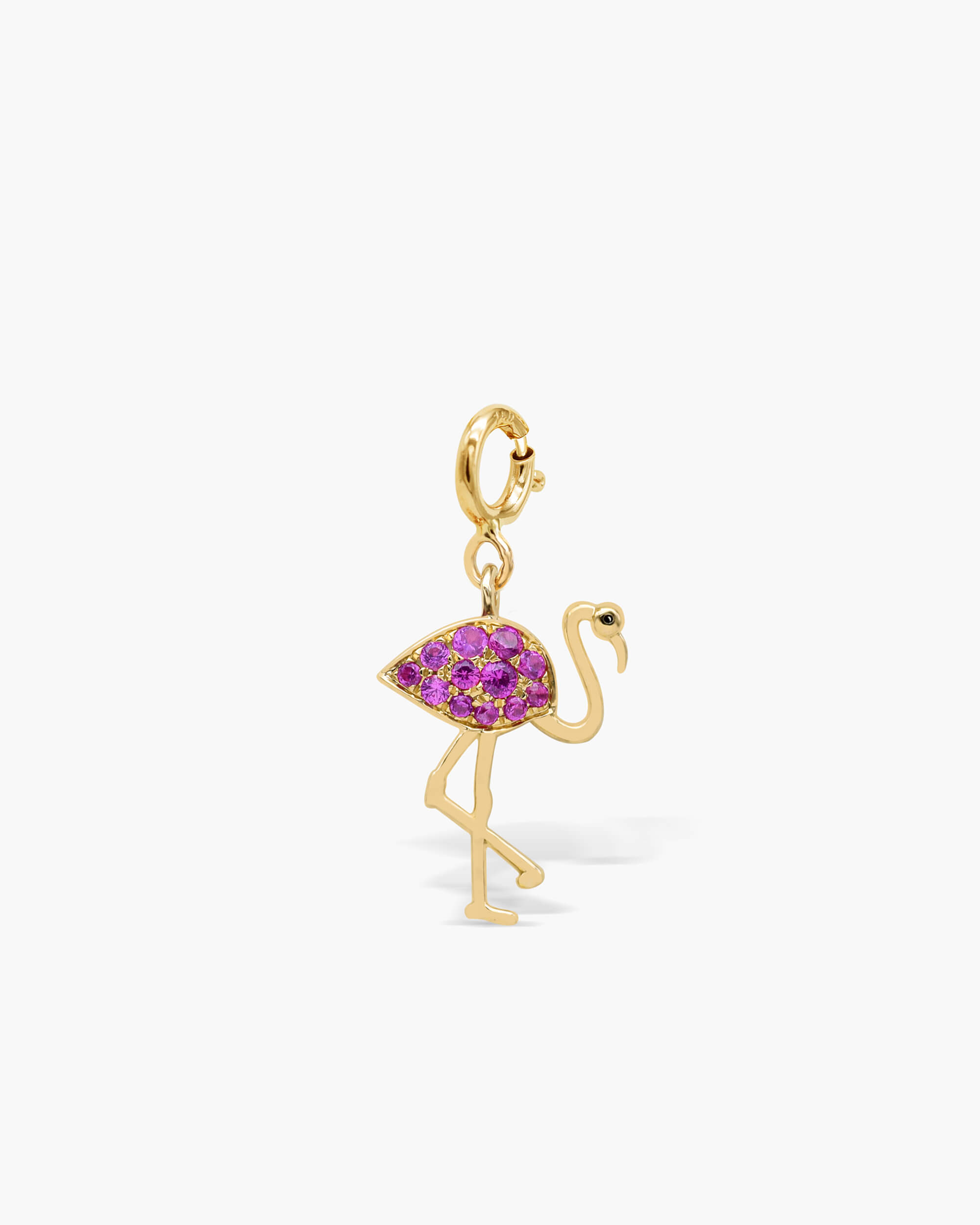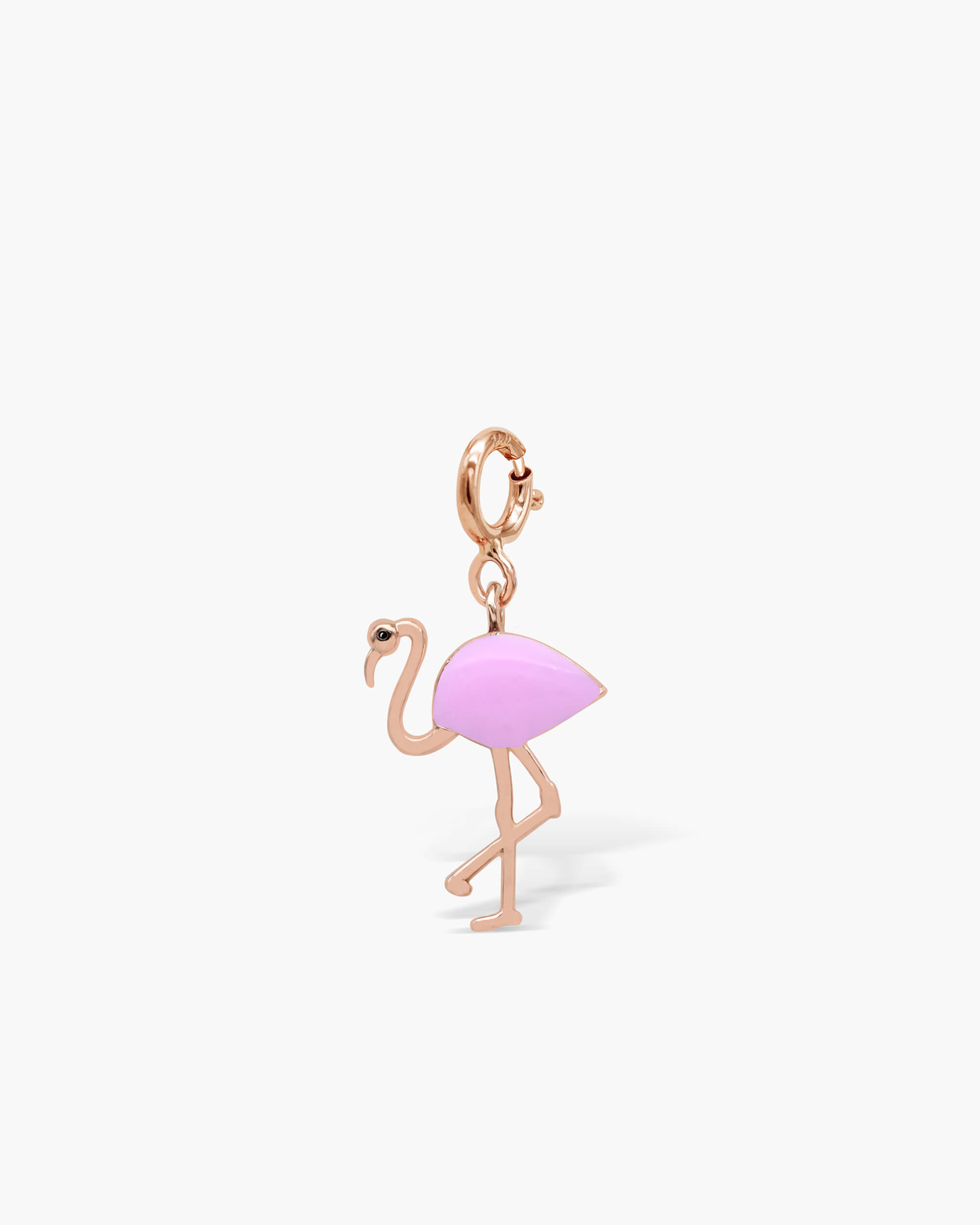 Elegantly crafted is this Flamingo Charm/ Pendant , wear it to express a side of you and as a reminder of your serene self. Handcrafted in solid gold and pink coloured synthetic gemstones on one side and pink enamel on the other side.