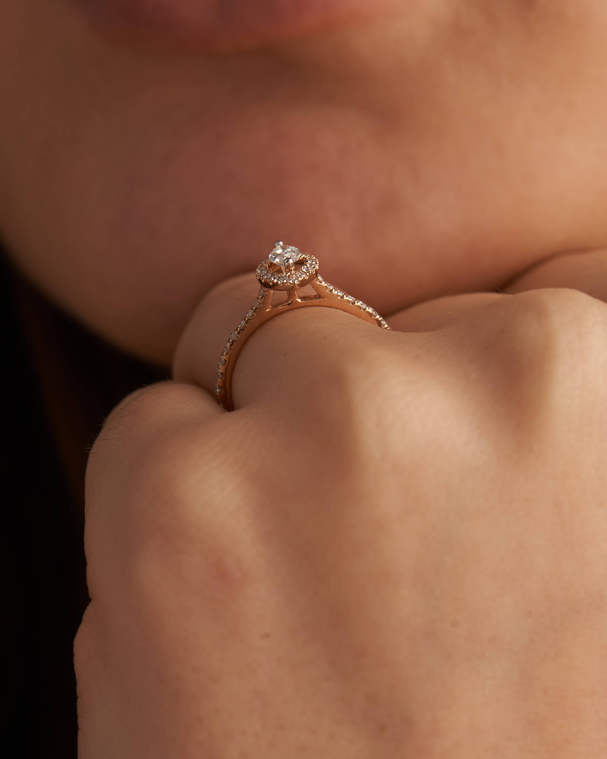 Floating Halo & Pave Shank, Marquise Solitaire Ring (0.25ct)