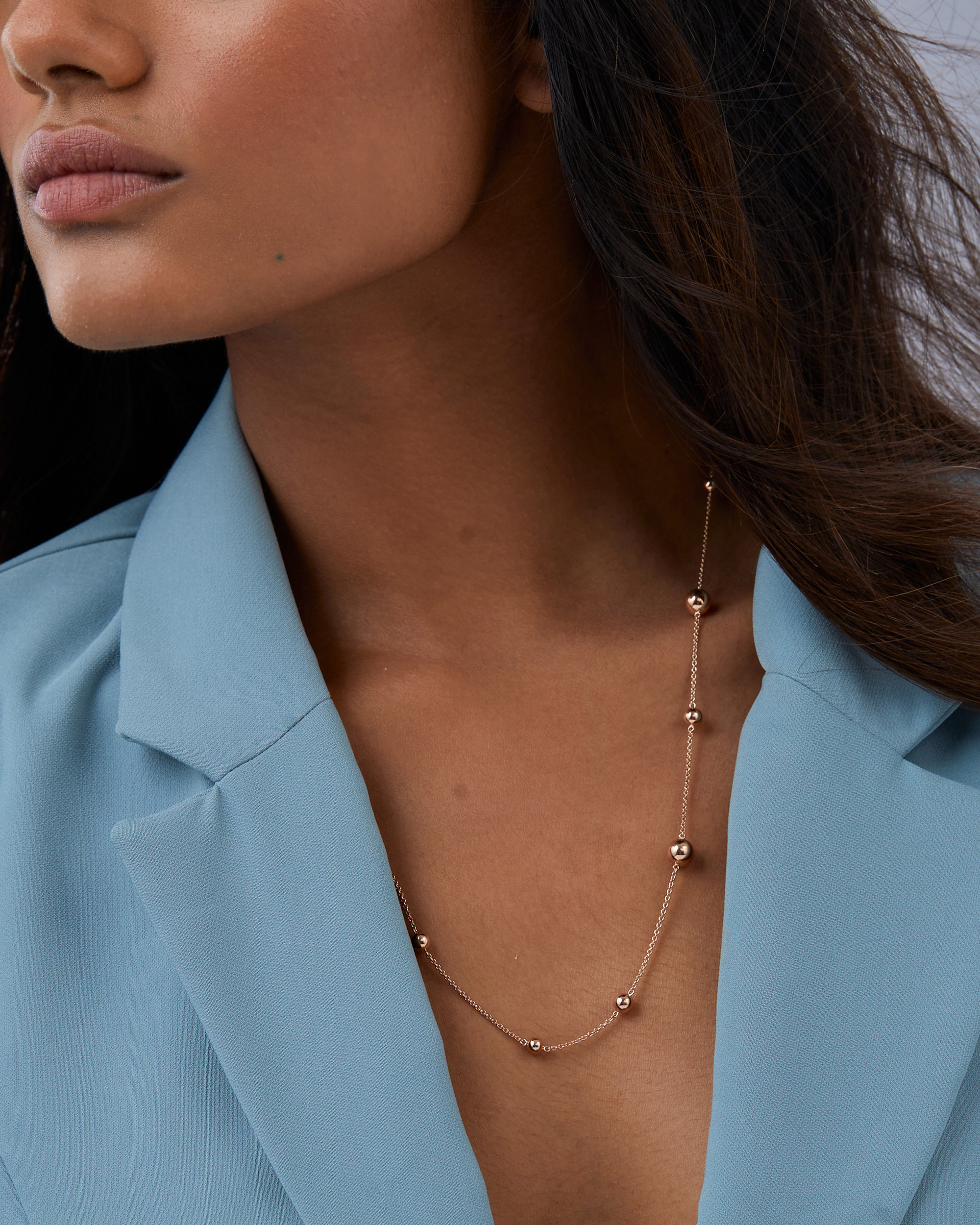 Designed to dazzle, this Gold Bead Lariat Necklace flaunts a fancy lariat design decorated with gold hollow bead stations varying in 4,5 and 7mm diameter.