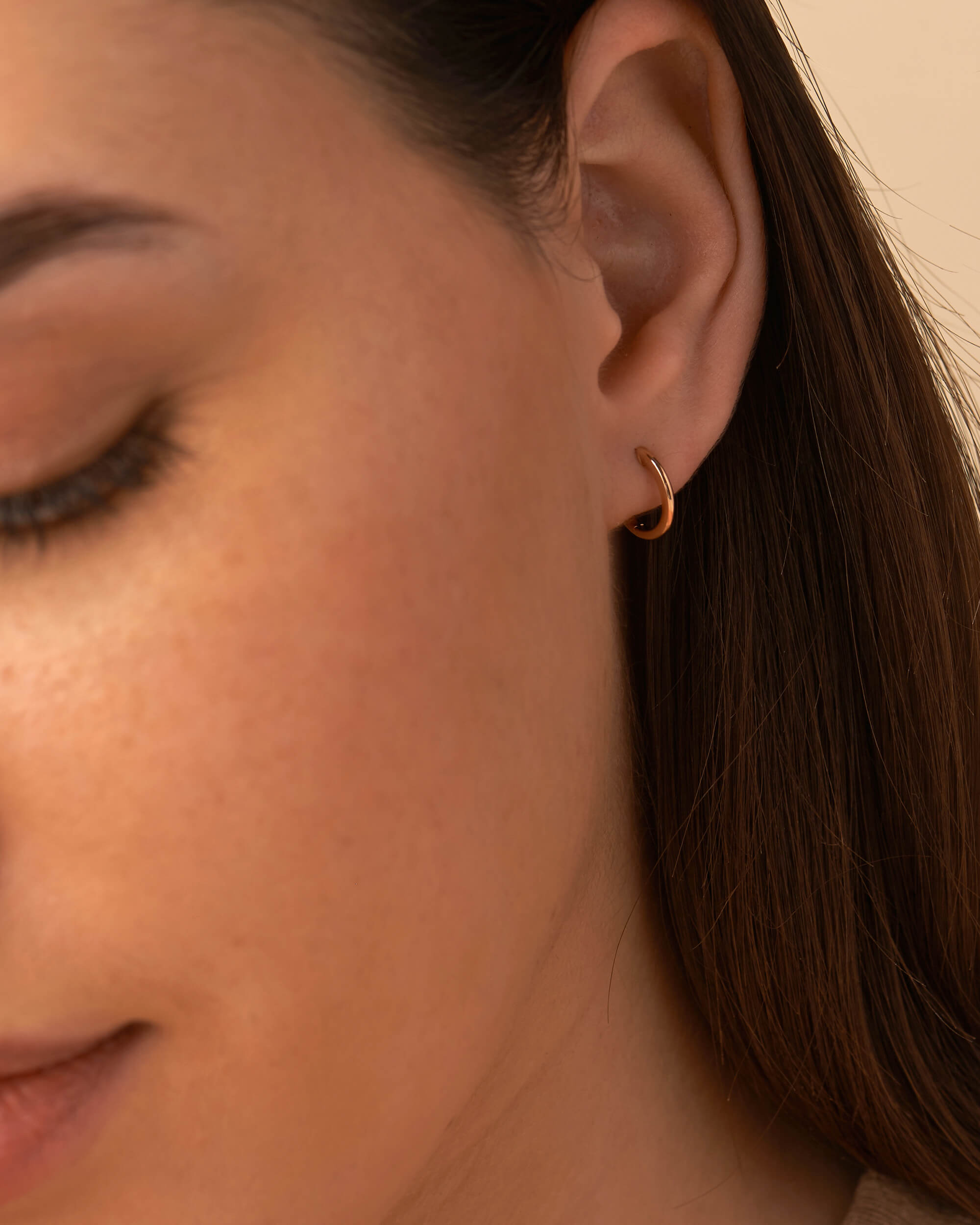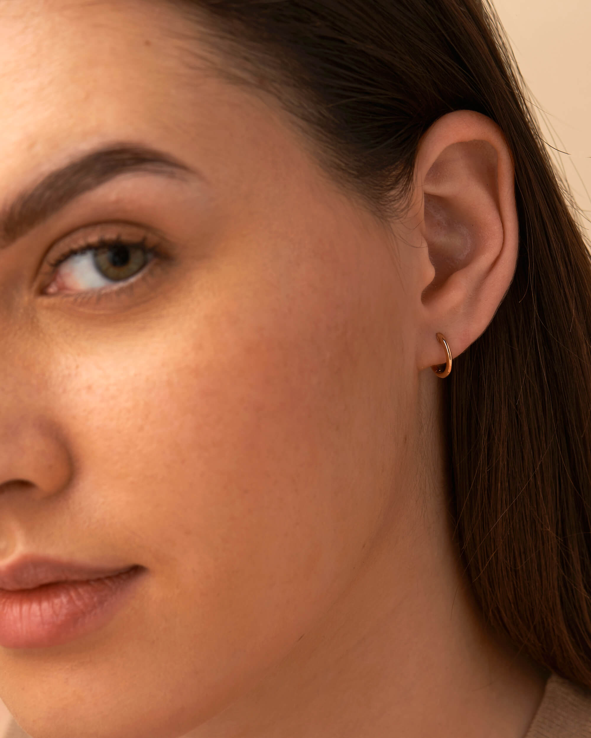 A must have addition to your earring collection is this Gold Hoops. Handcrafted in solid gold and finished in high polish. These hoops snug fit on to your earlobes and are secured with hinged backs. Can add on initials from our dangling collection.