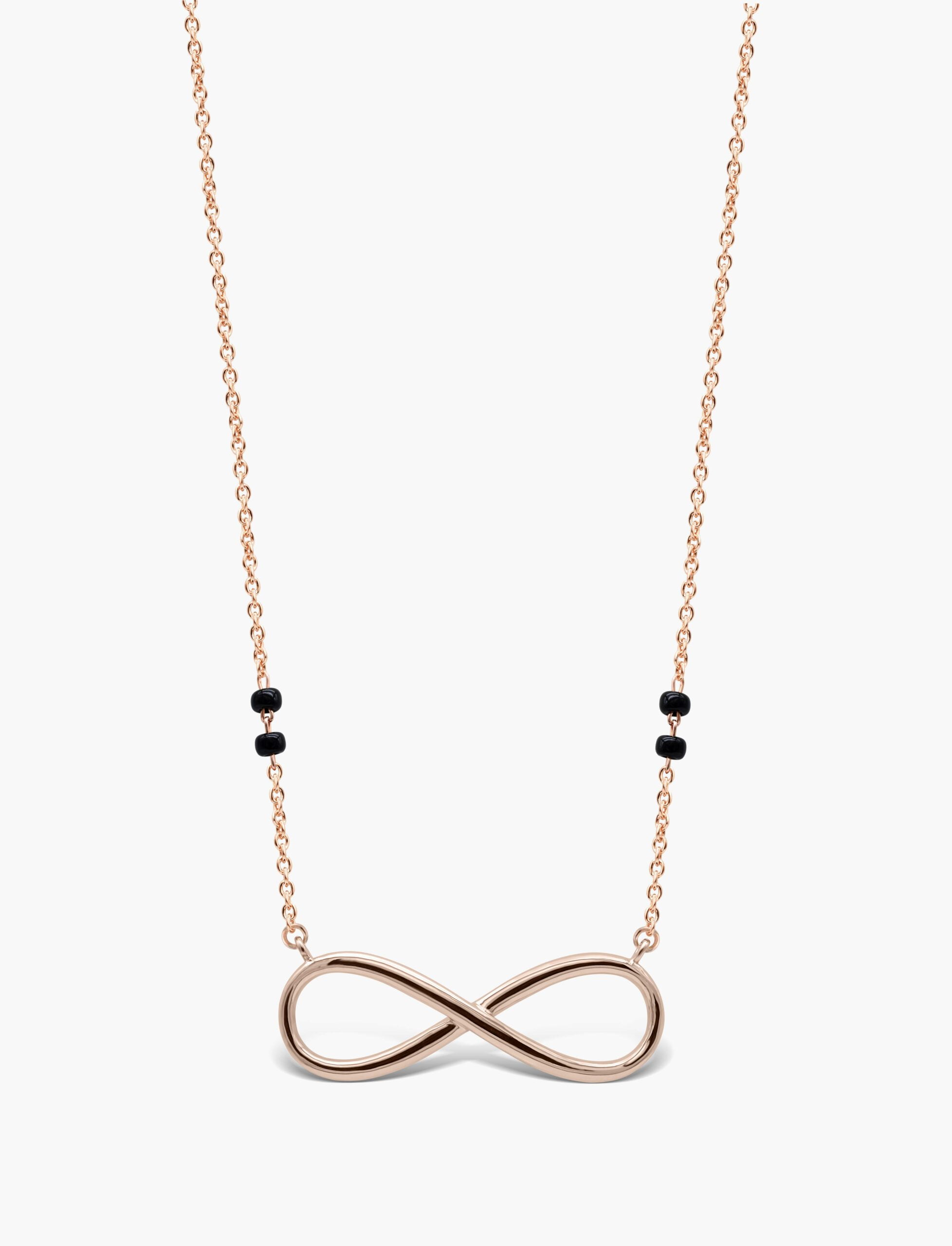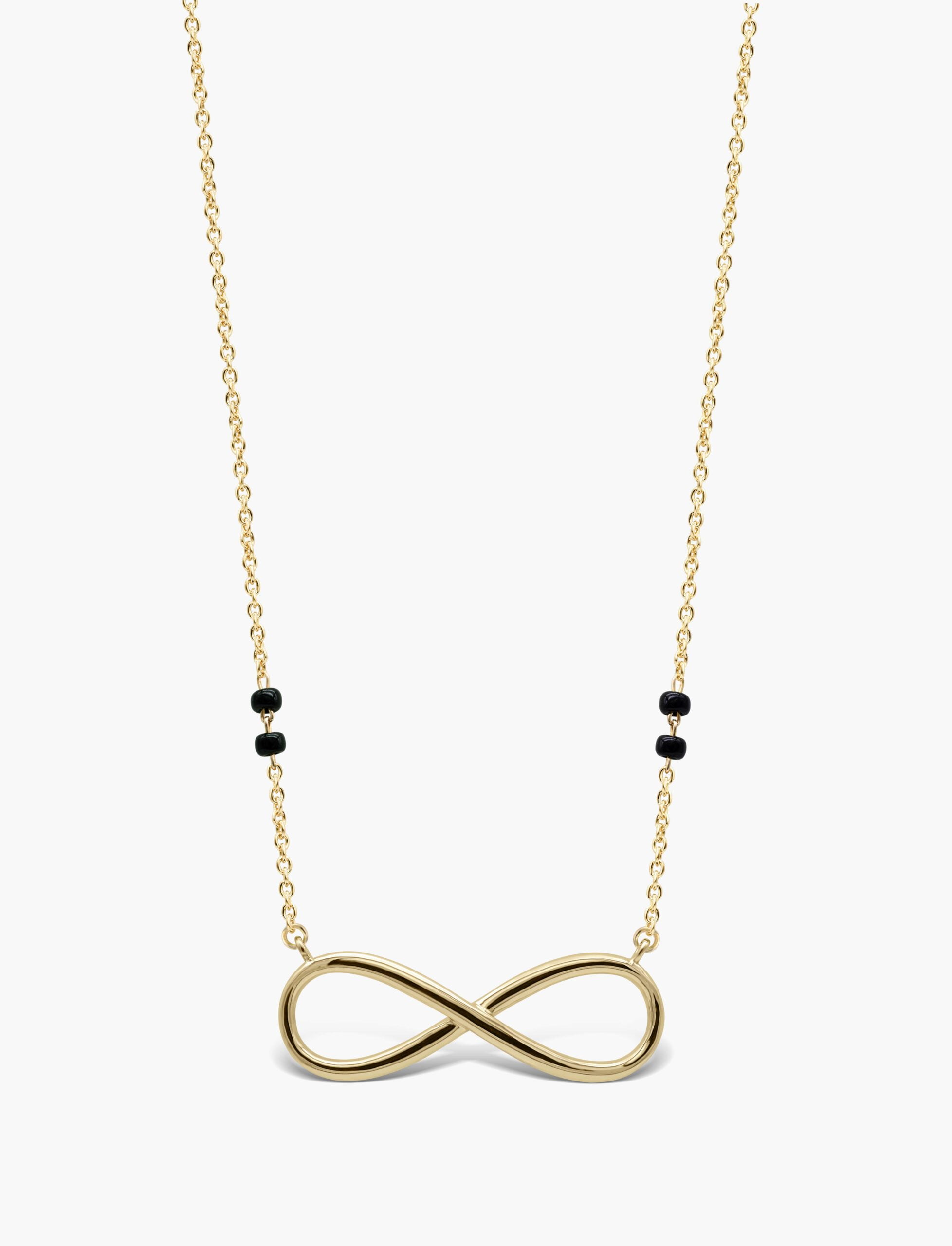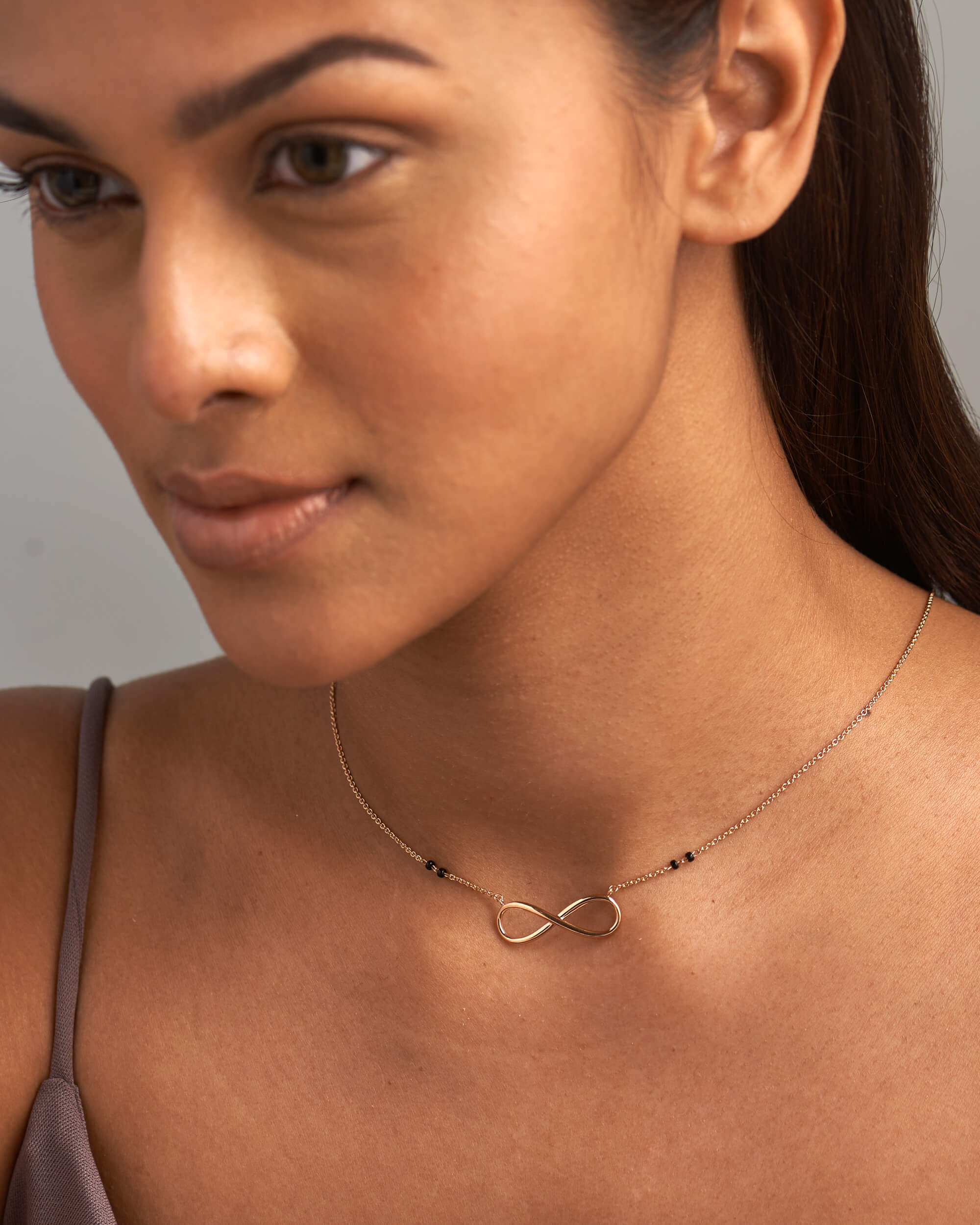 Now add this symbol of eternity and infinity. This Gold Infinity Mangalsutra Necklace is handcrafted in solid gold and black glass beads on either side.