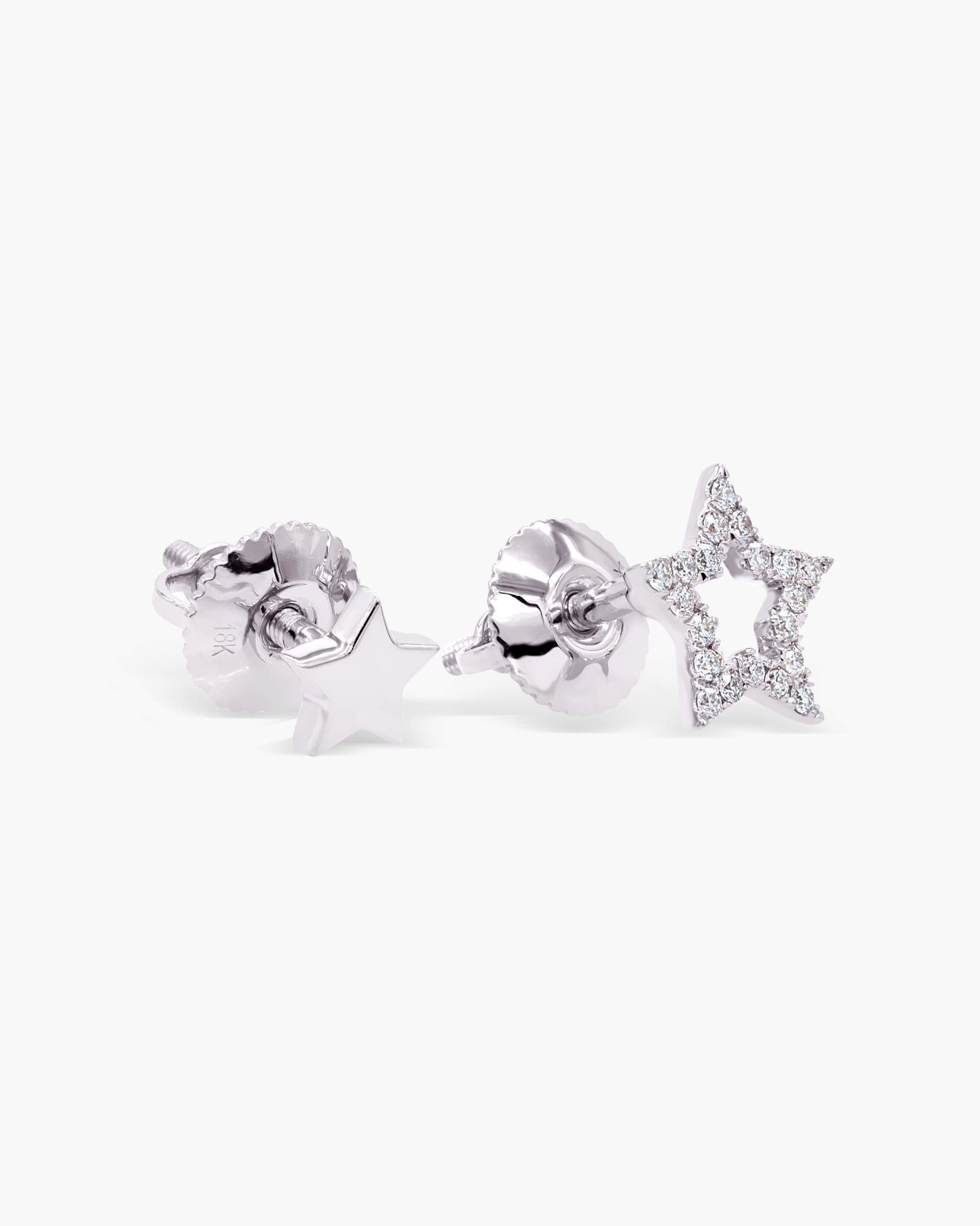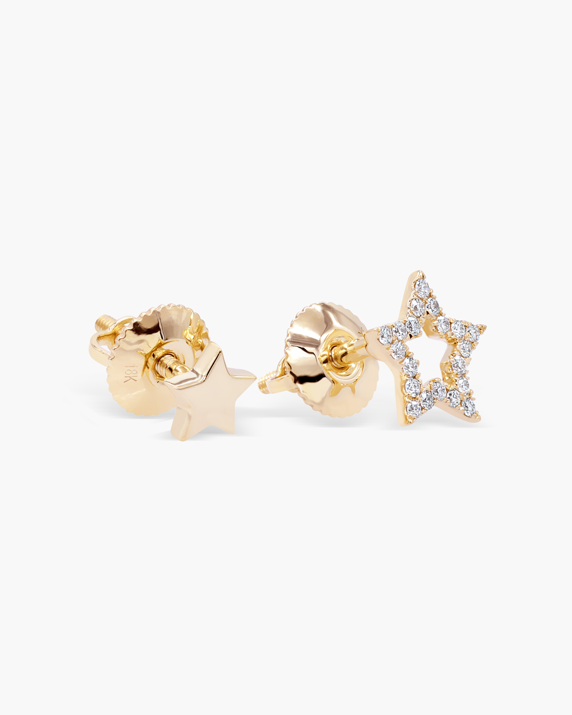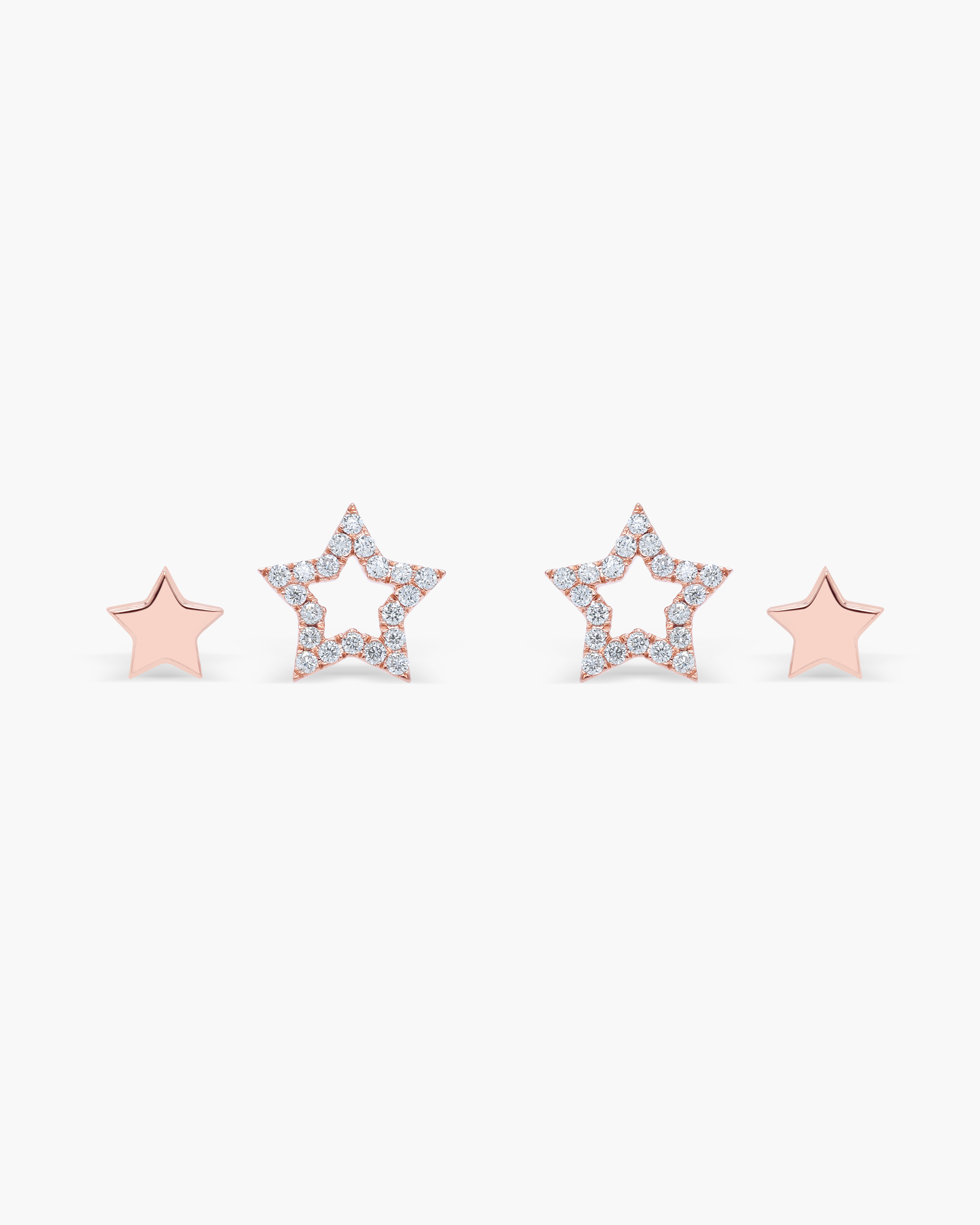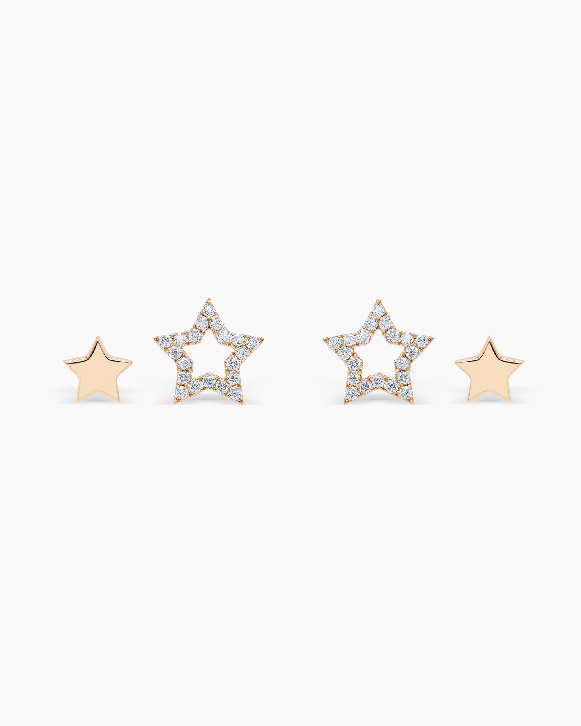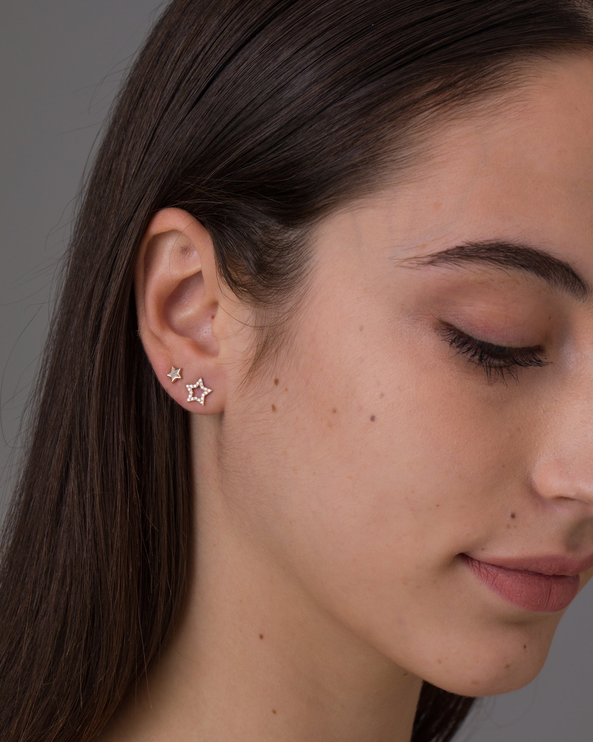 It’s the little sparkly details that matter. These Paired Gold And Open Diamond Star Studs are daringly different without being ostentatious. These studs are handcrafted in Solid Gold and pavé set diamonds. Perfect for everyday wear, or as an occasional piece, they’re bound to get you noticed.