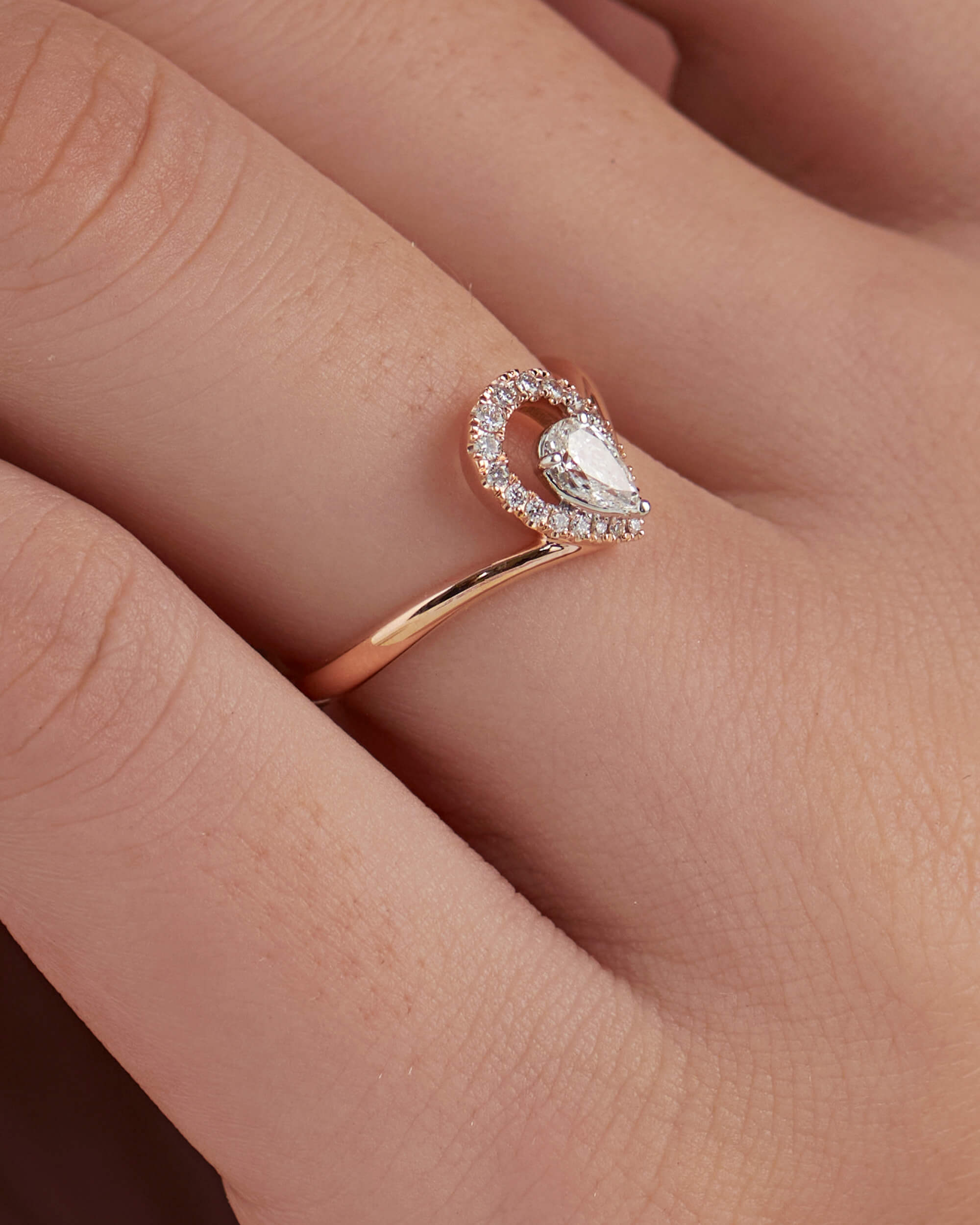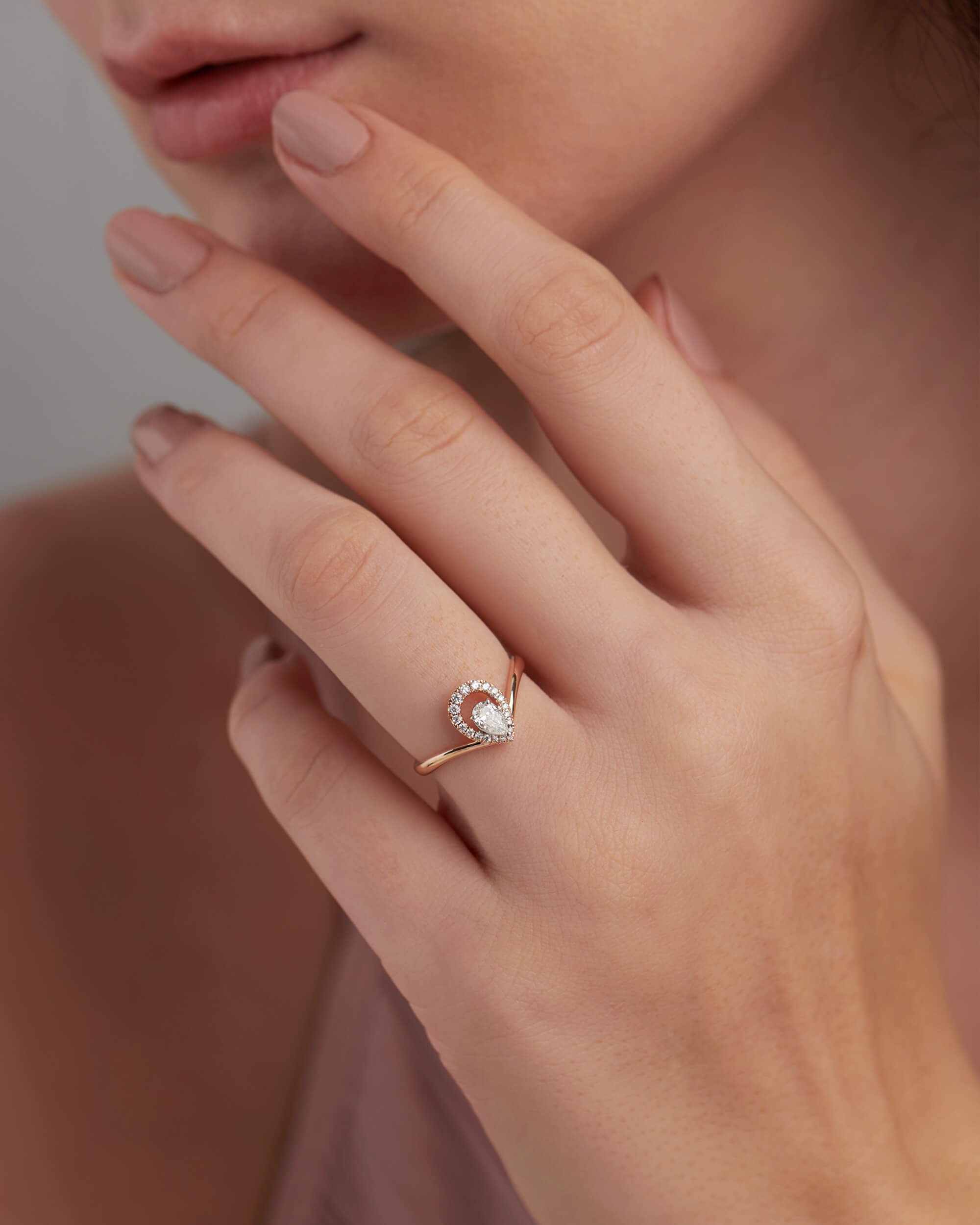 Pear- Shaped Diamond Halo Chevron Ring