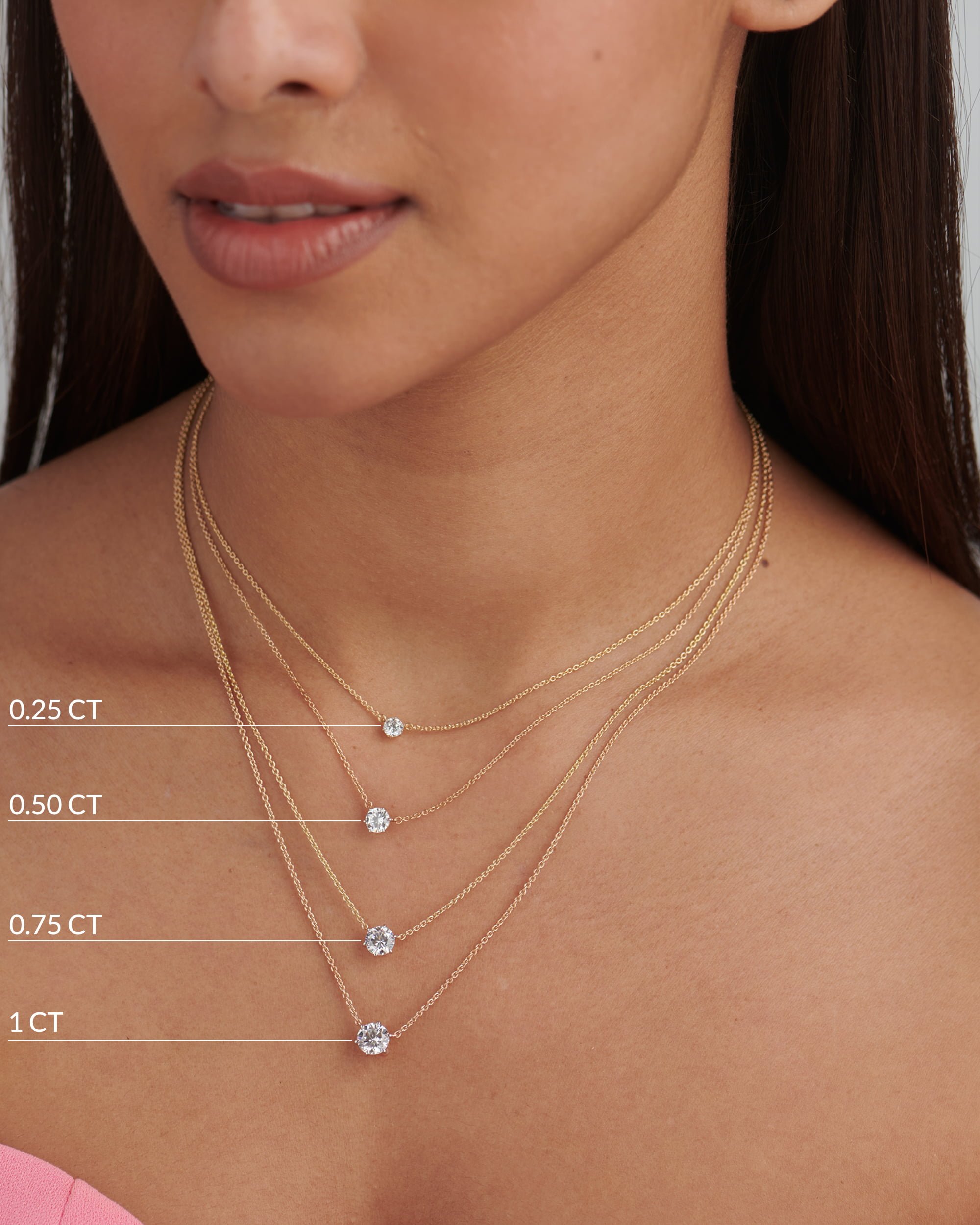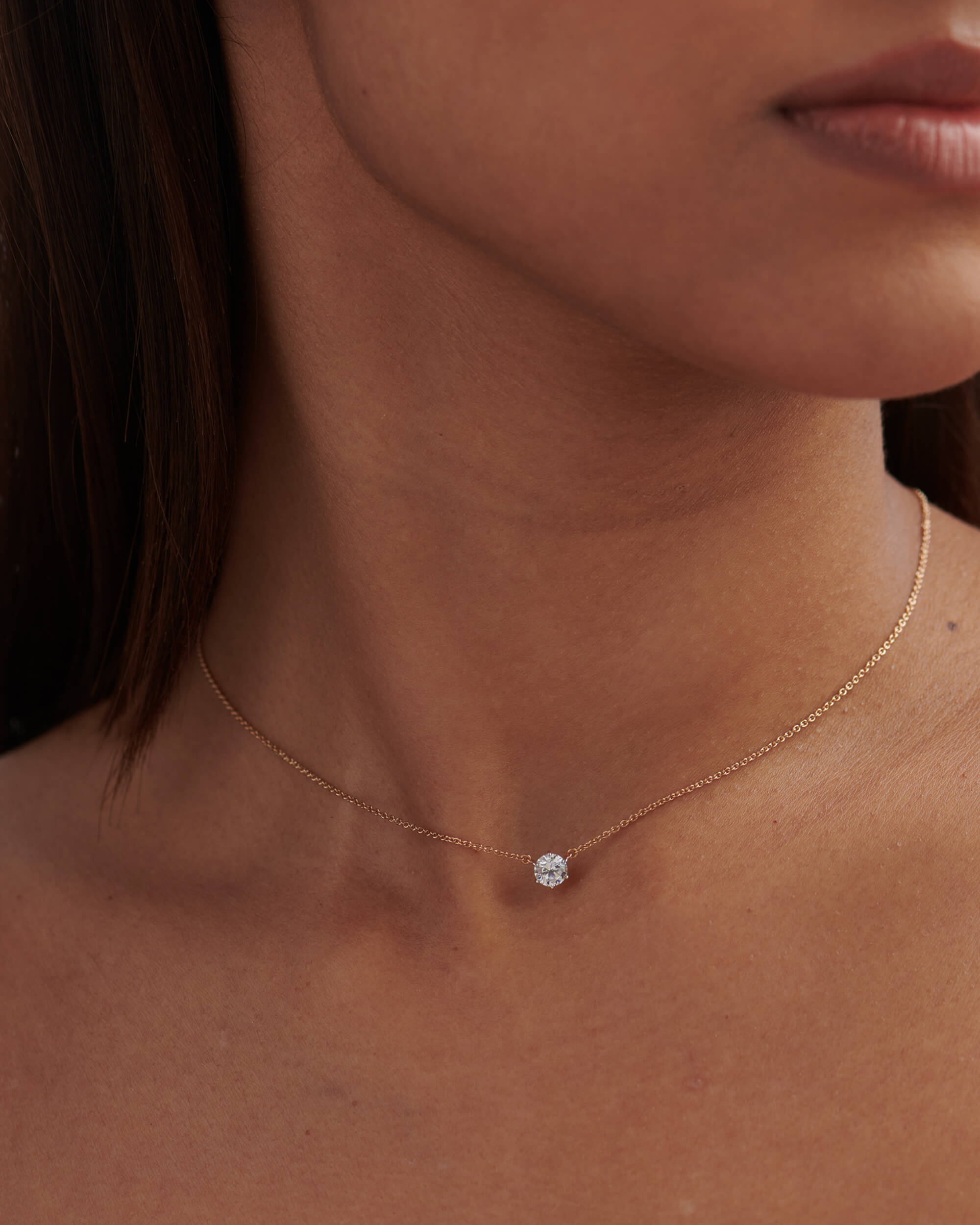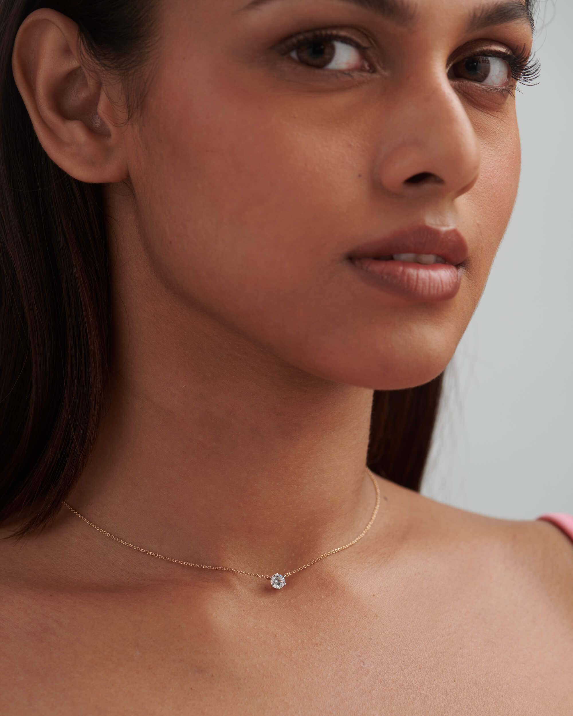 A contemporary touch of sparkle and timeless staple for every woman or ideal gift for someone you love. Our Diamond solitaire necklace features a 0.50ct round brilliant cut diamond secured in a claw setting , set on a solid gold chain.