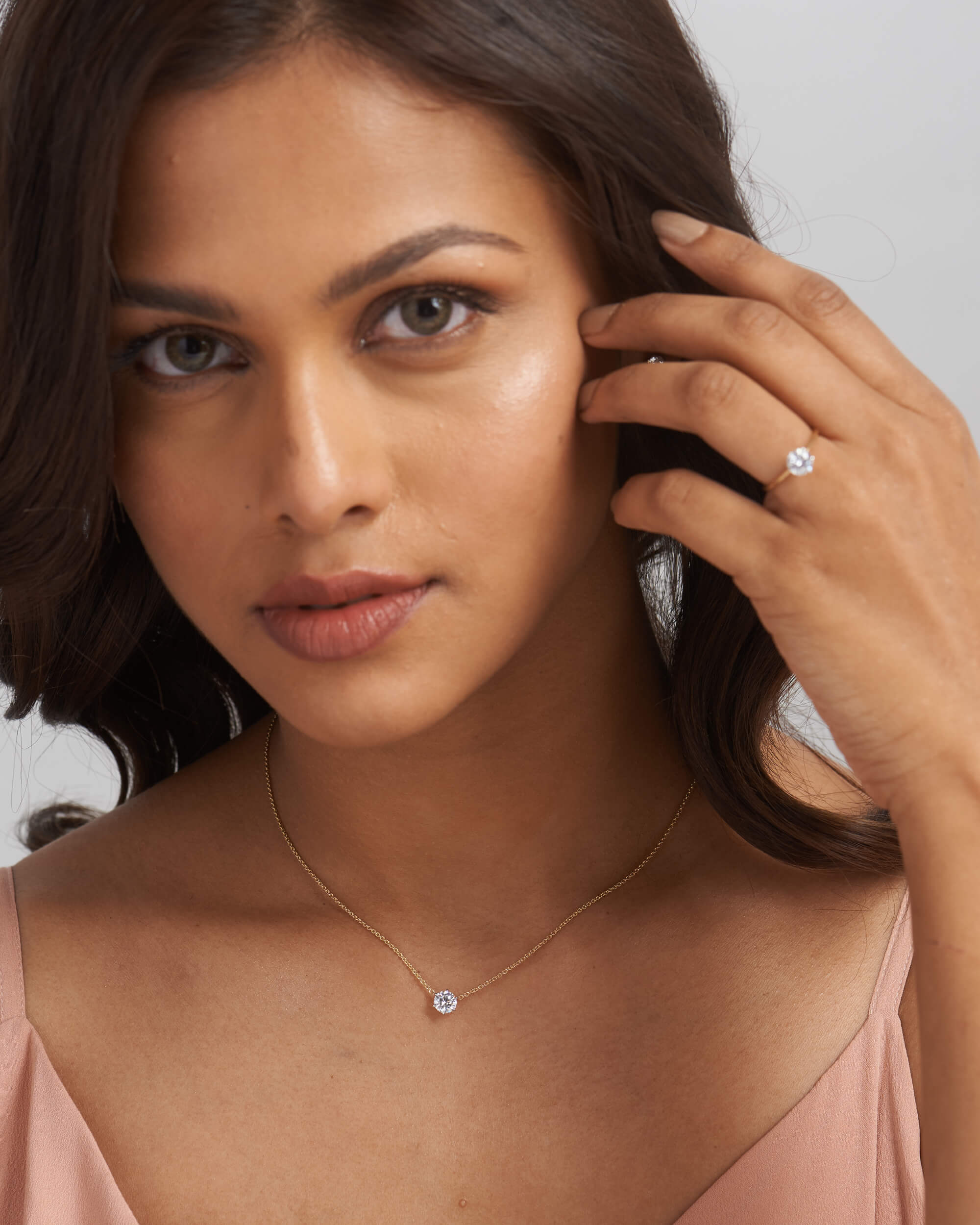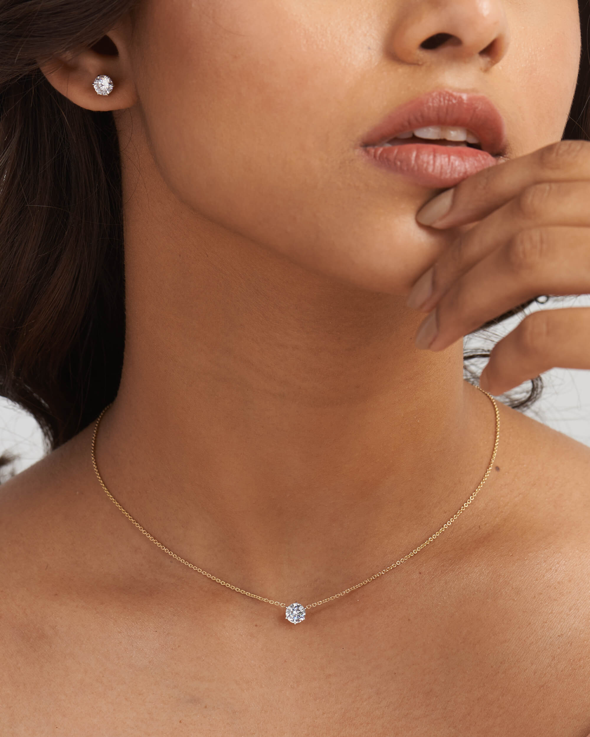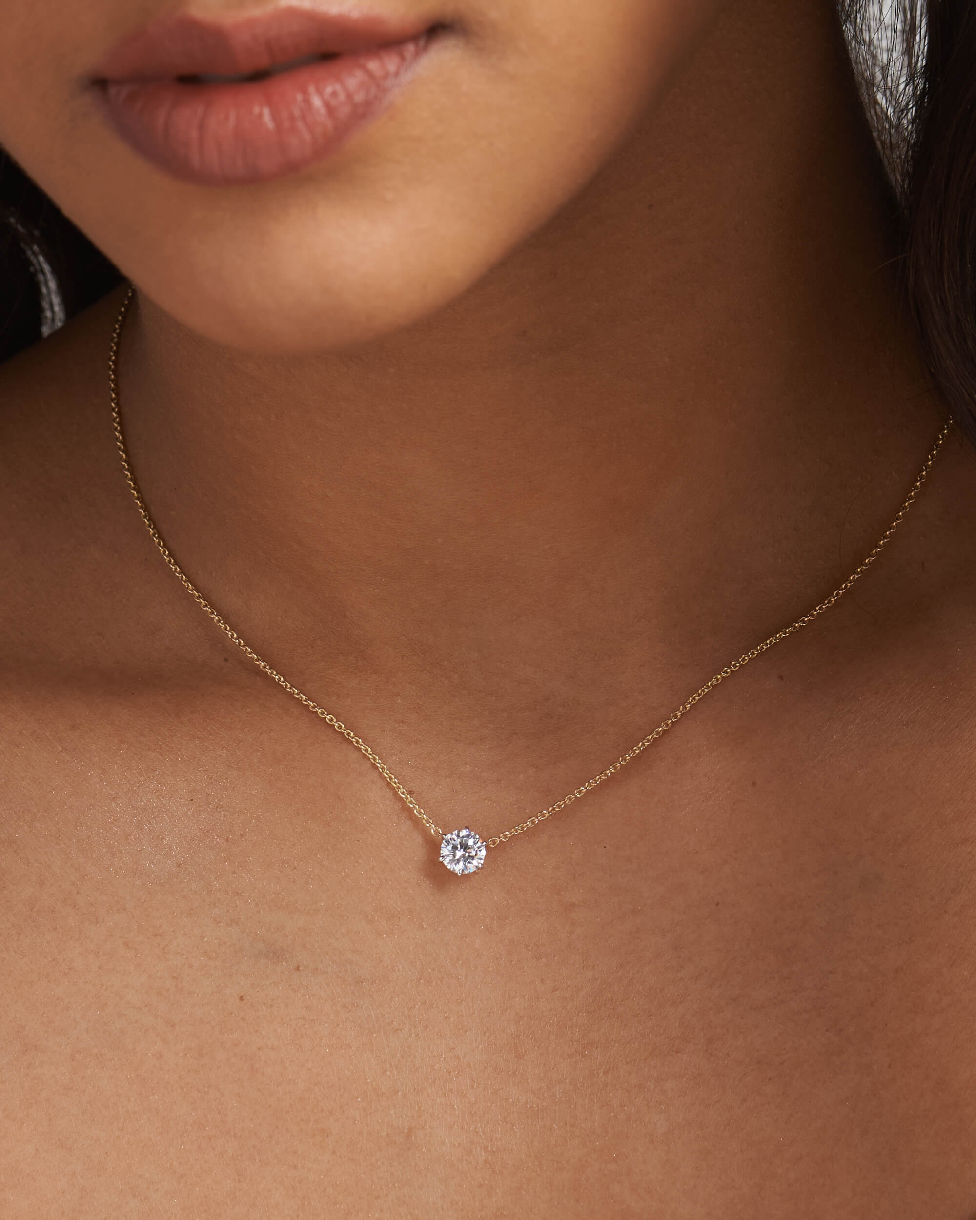 A contemporary touch of sparkle and timeless staple for every woman or ideal gift for someone you love. Our Diamond solitaire necklace features a 0.75ct round brilliant cut diamond secured in a claw setting , set on a solid gold chain.
