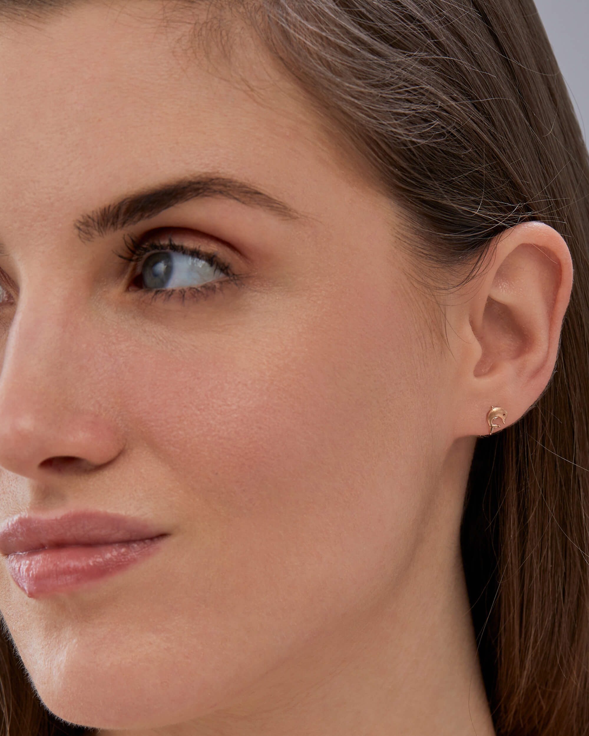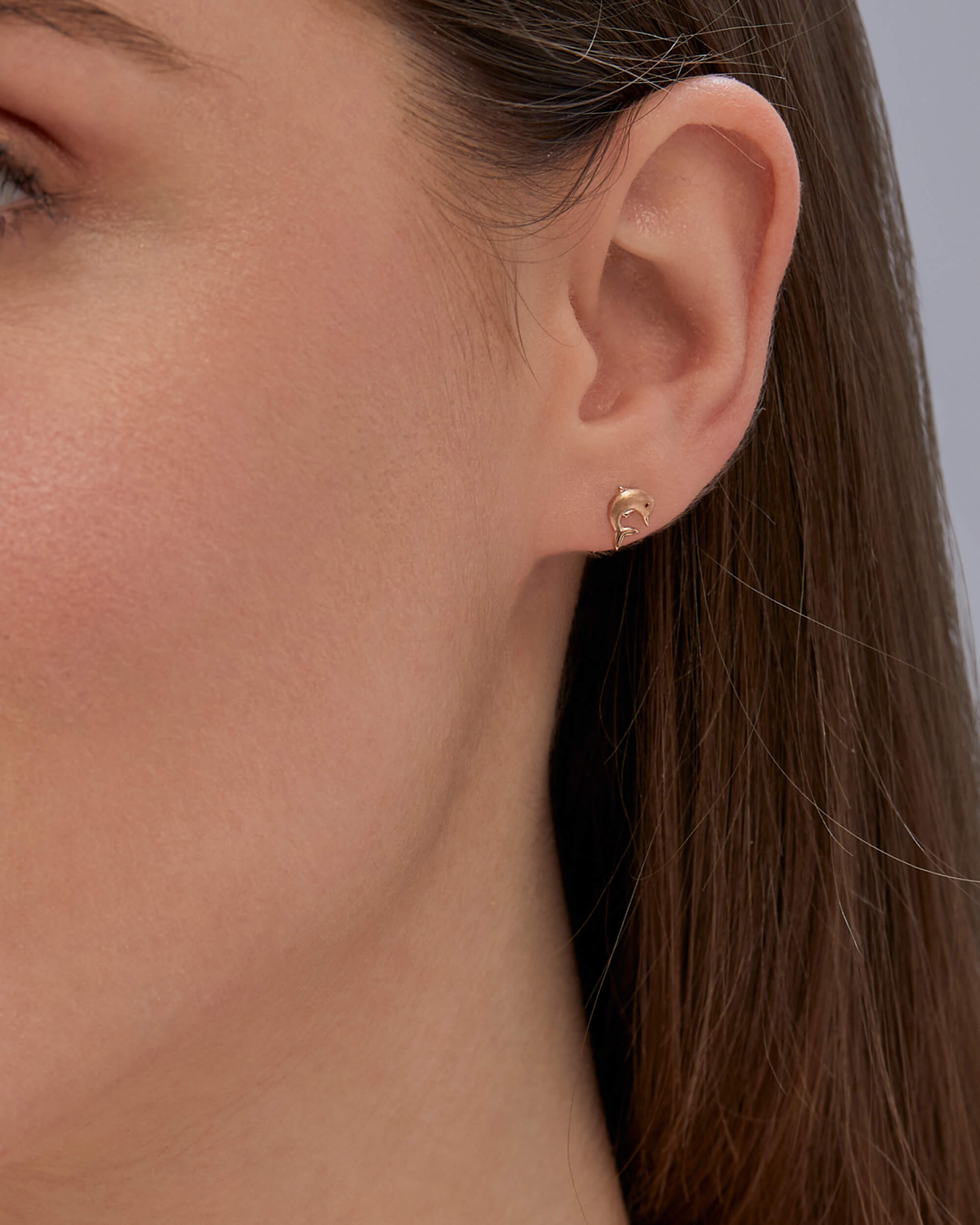 Add a splash and delight the dolphin fanatic with these Tiny Dolphin Studs This is handcrafted in gold and has a combination of brushed and high polish finish for that accentuated look. They have a friction butterfly ear nut for comfy and secure fit.