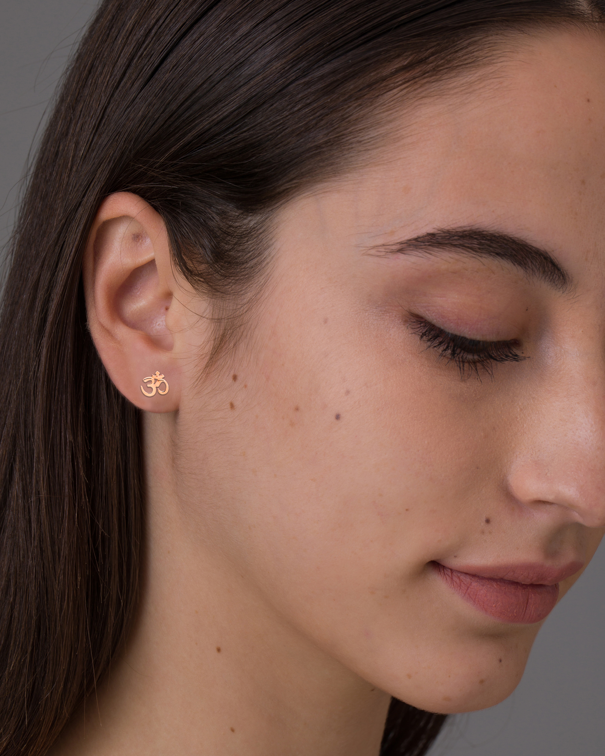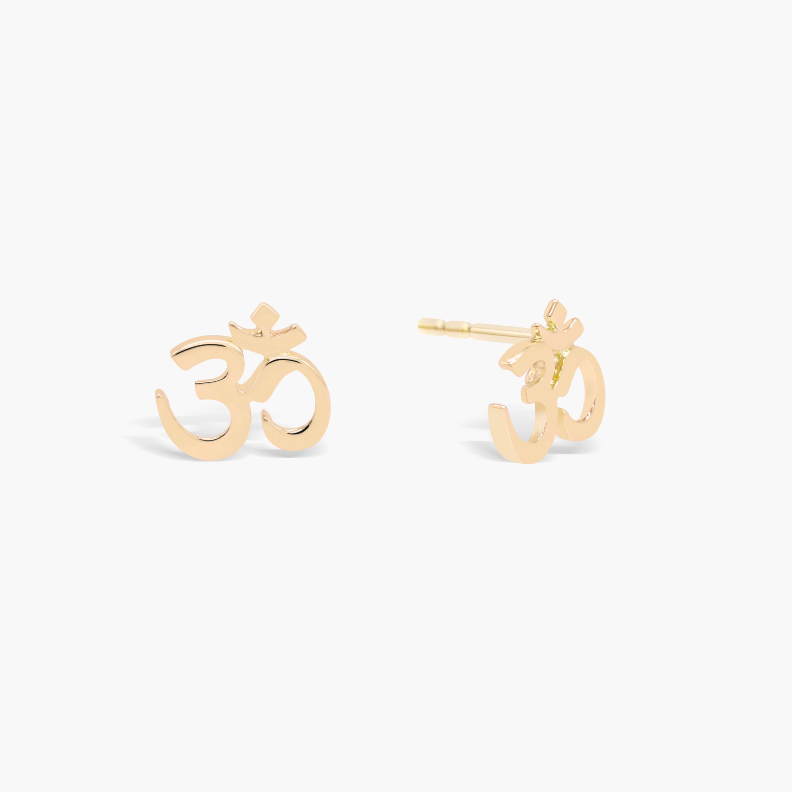 Meaningful and perfectly petite, these Tiny OM Studs are handcrafted in gold with high polish finish. These studs have a friction butterfly ear nut for comfy and secure fit.