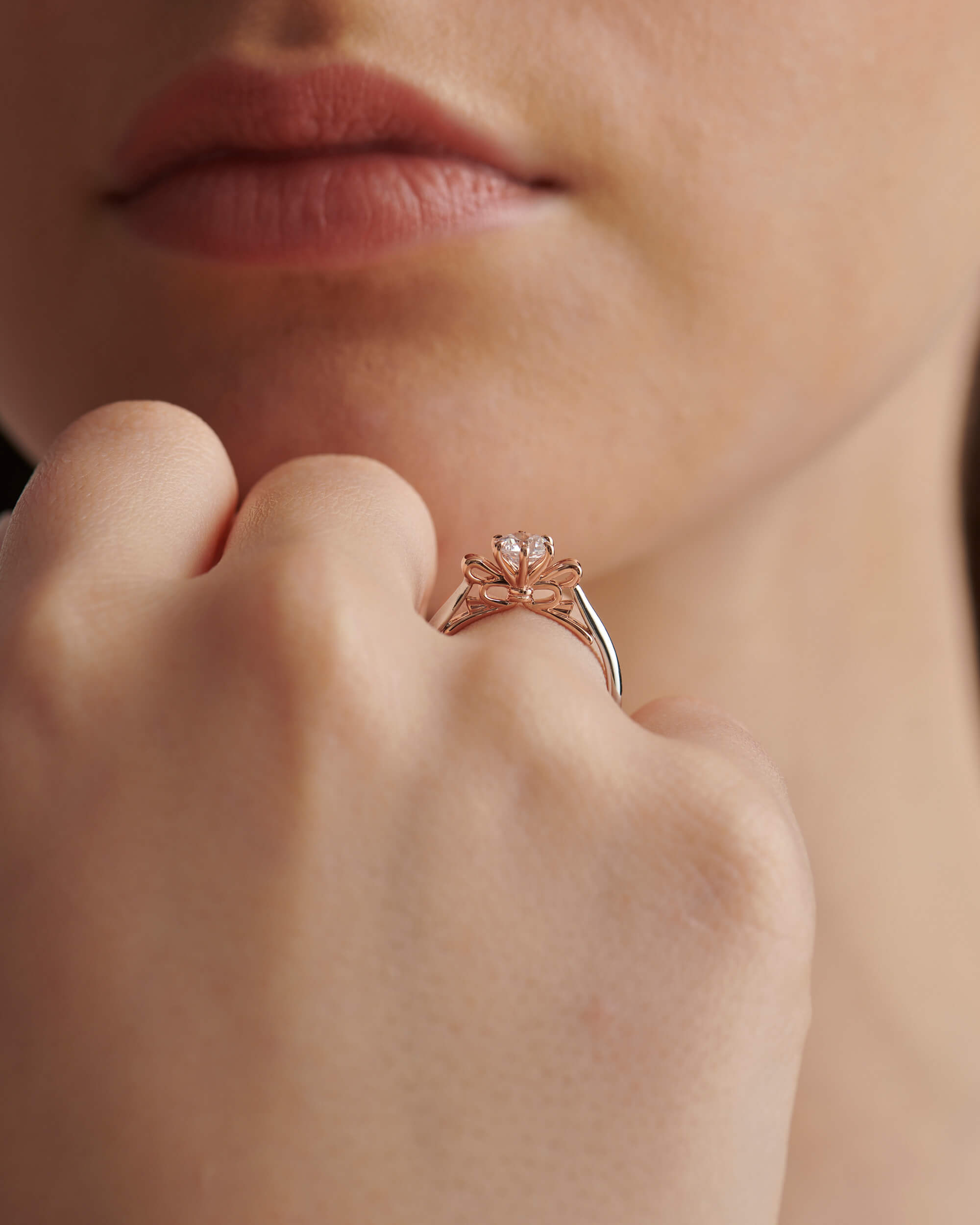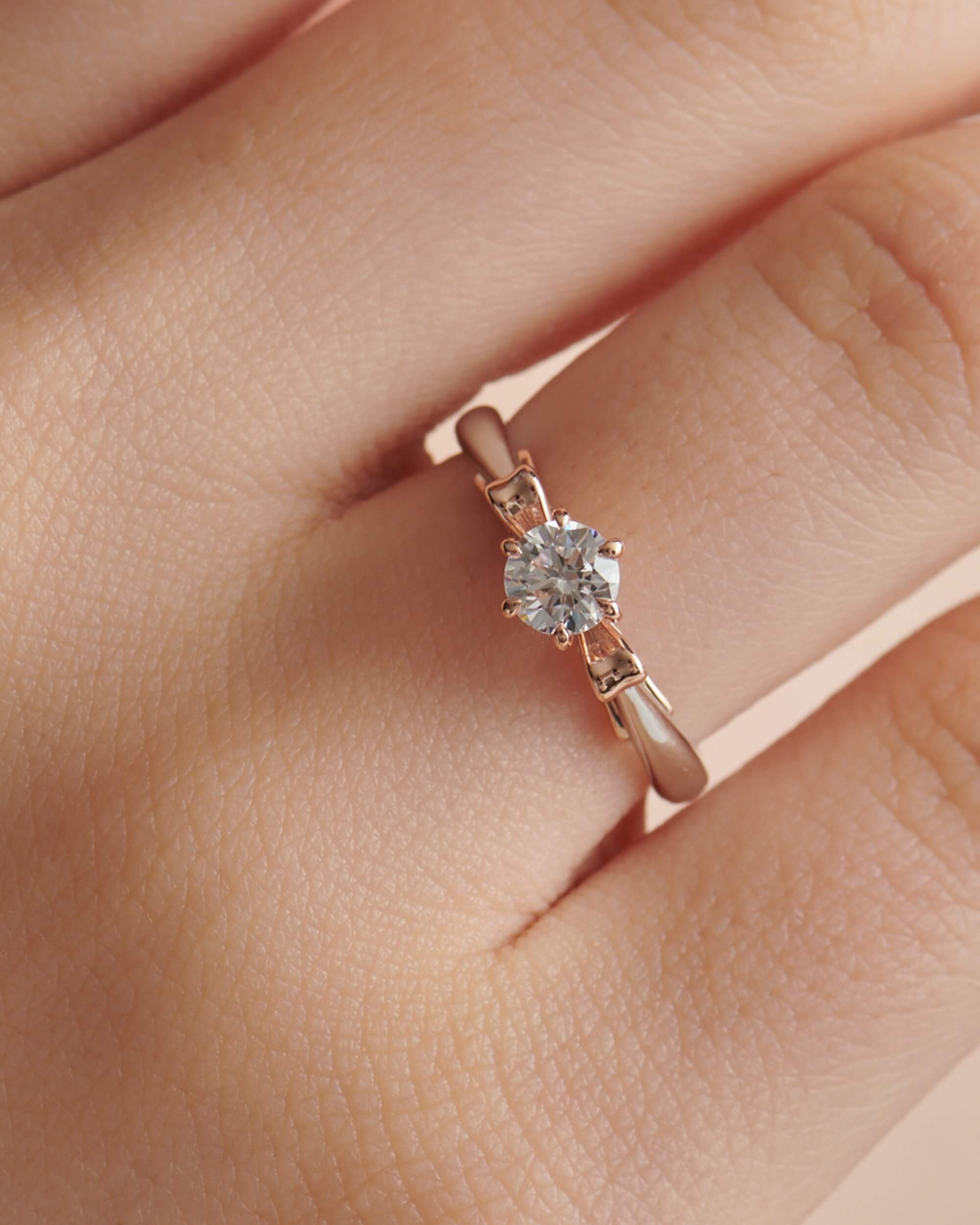 Two-Tone Bow, Round Solitaire Ring