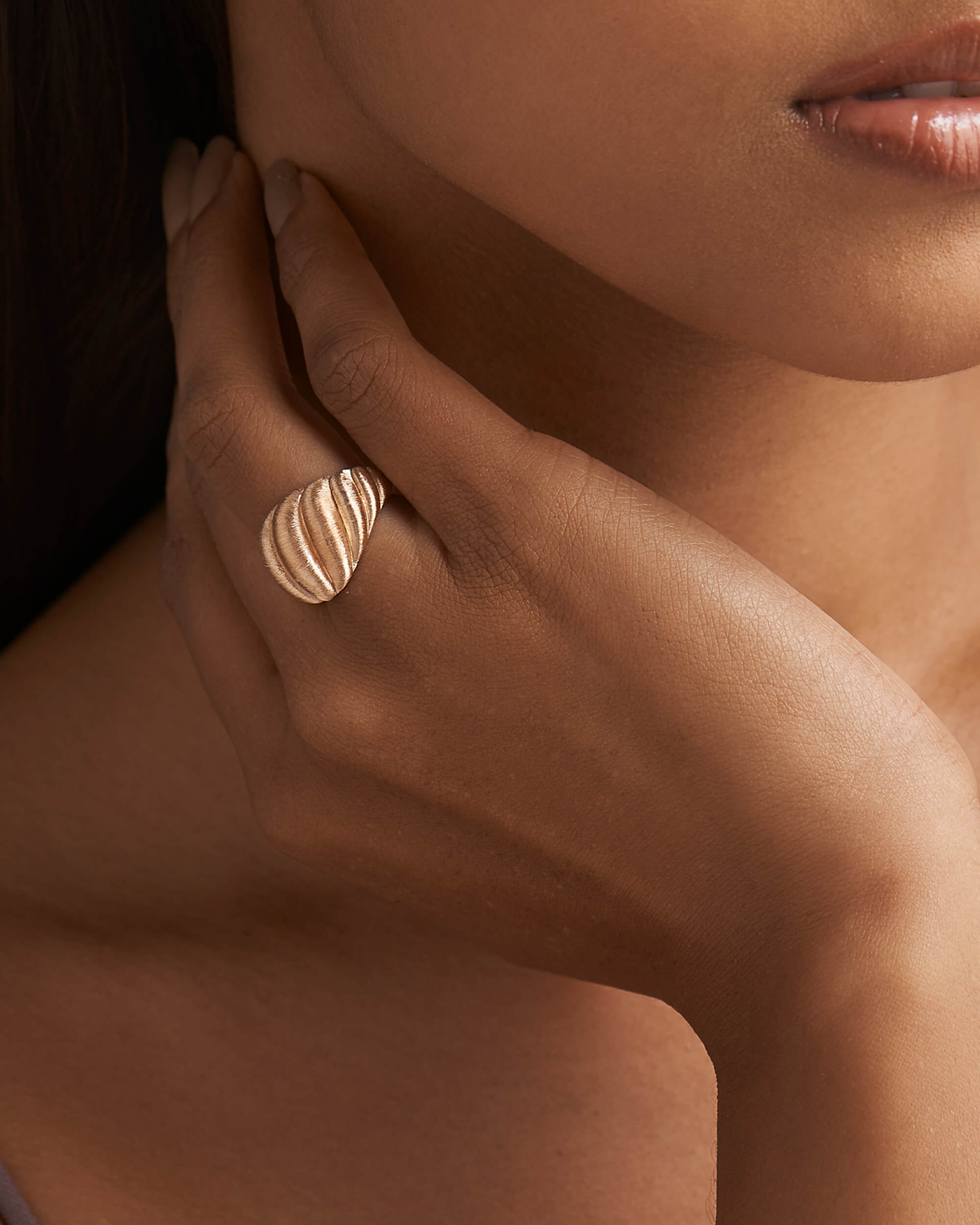 Wide Silk Gold Croissant Ring