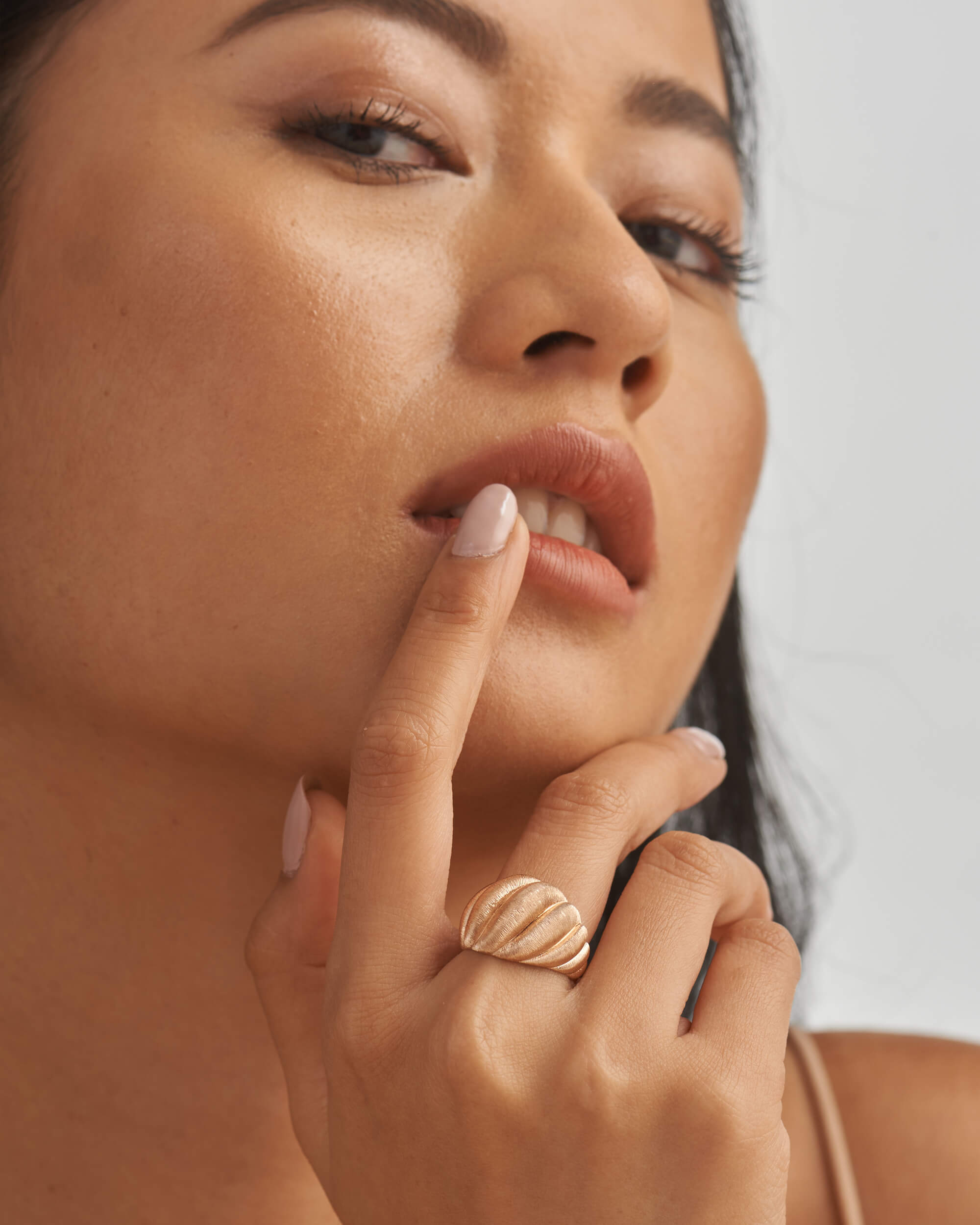 This Wide Silk Gold Croissant Ring will look beautifully worn alone as a statement piece. Handcrafted in solid gold and features twisted swirls with brushed silk finish. Lightweight and comfortable for everyday.