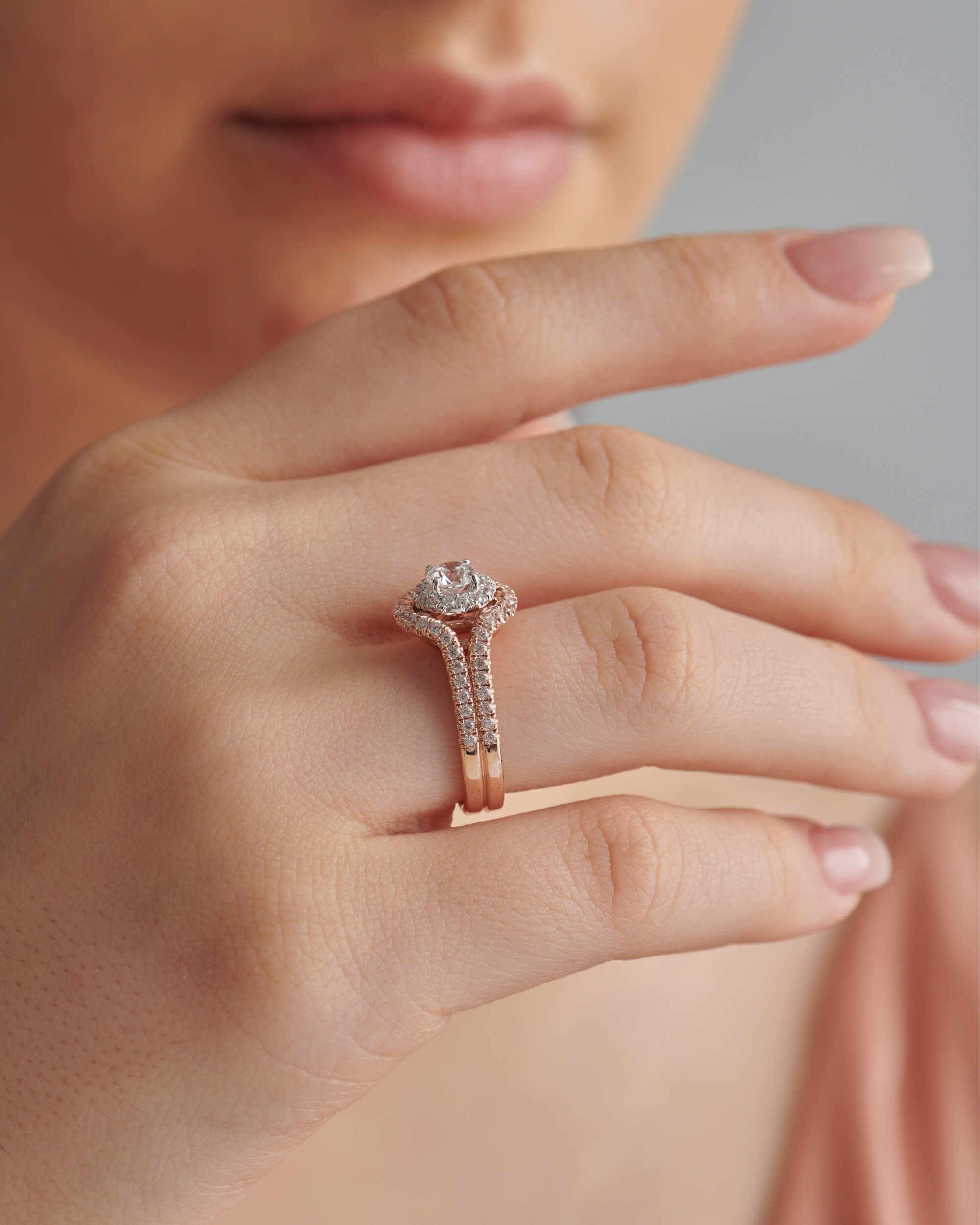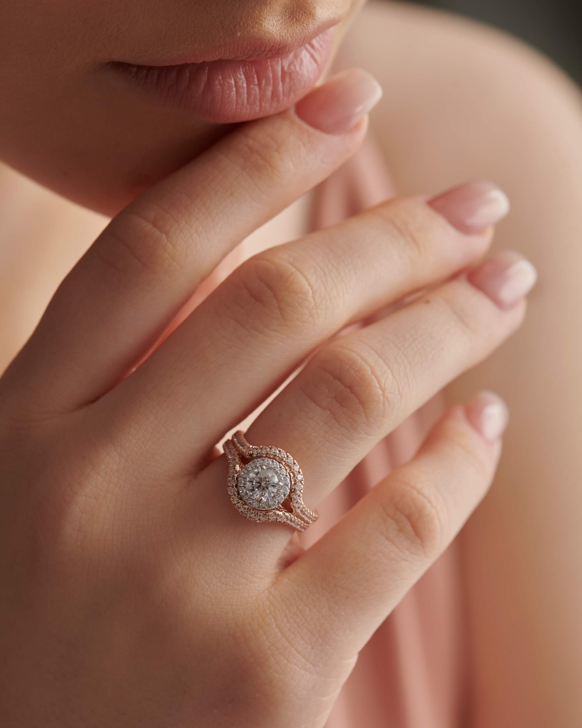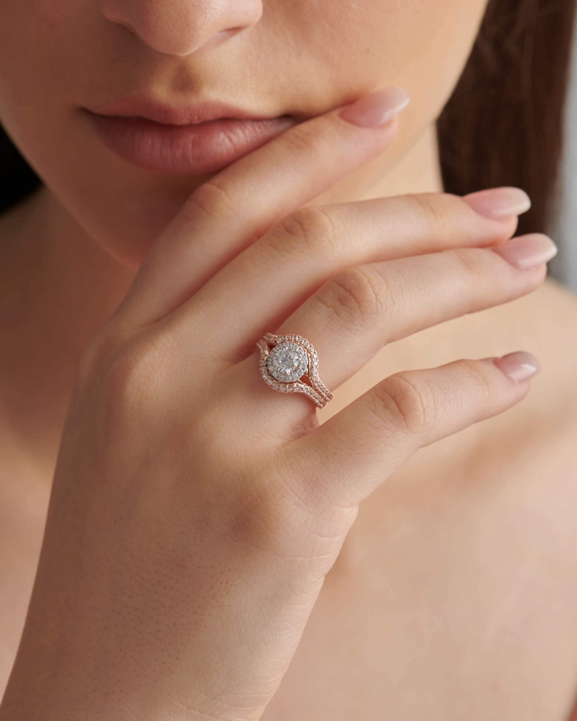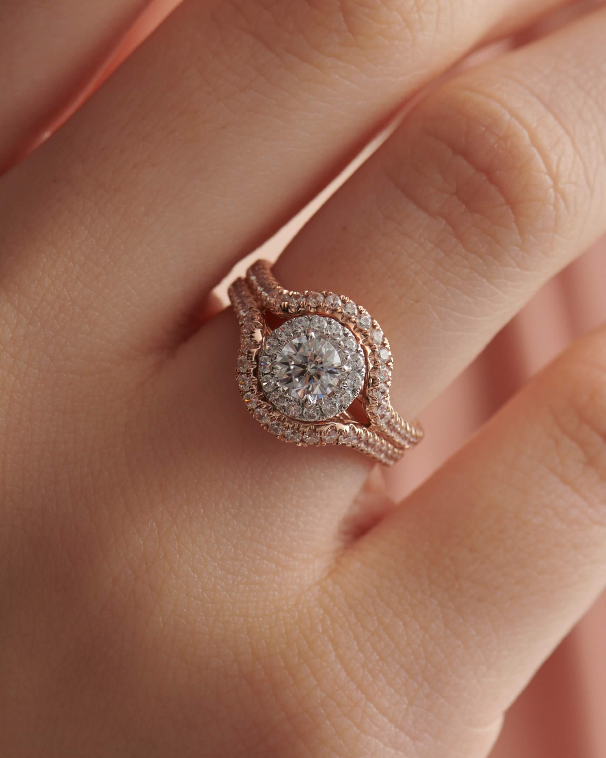 Wrapped Double Halo & Filigree Basket, Round Solitaire Ring