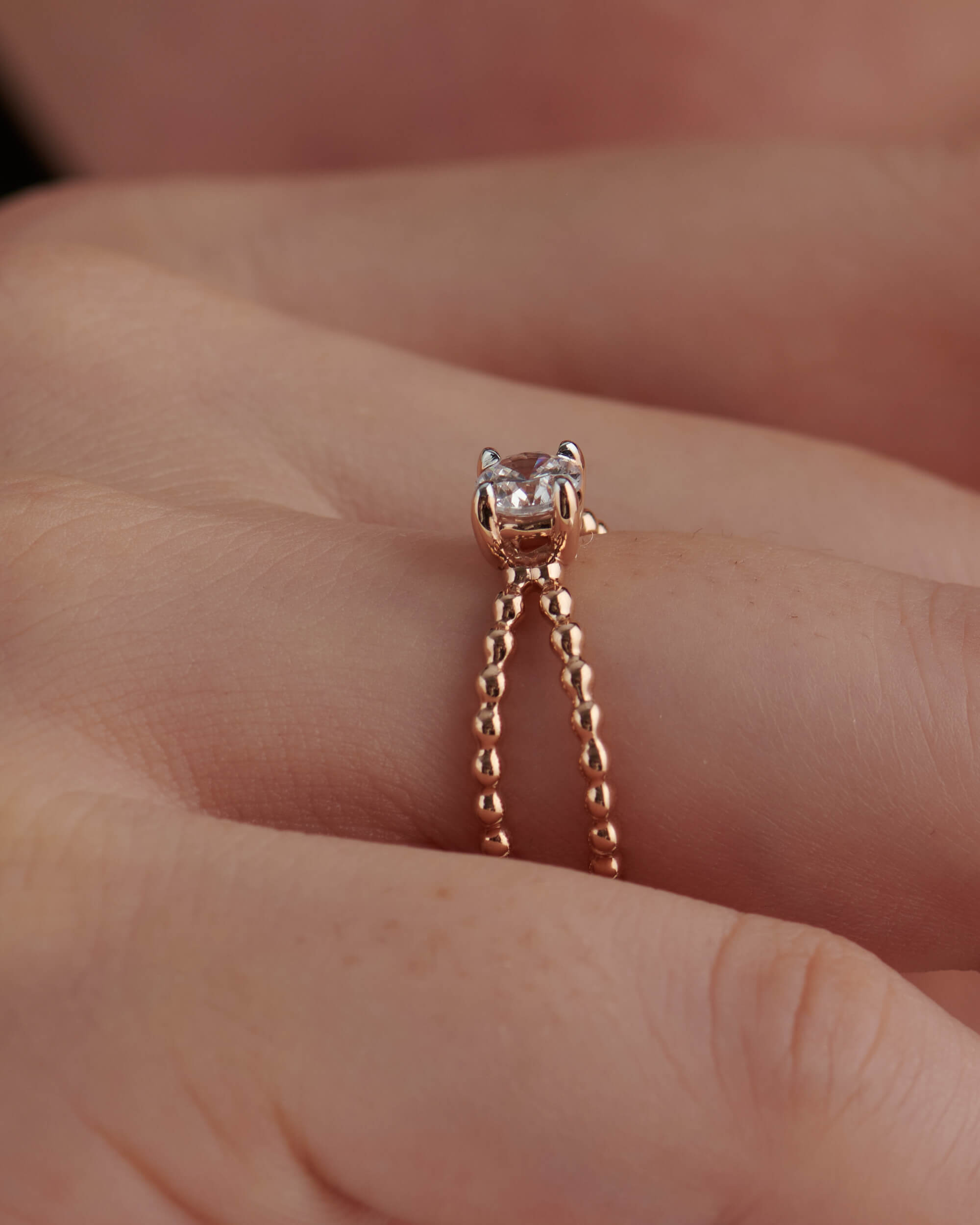 A bespoke ring which is sure to catch others attention. This X Split Shank Solitaire Ring is crafted in solid gold and the solitaire diamond (0.5ct) is set in the centre on split beaded gold shank.
